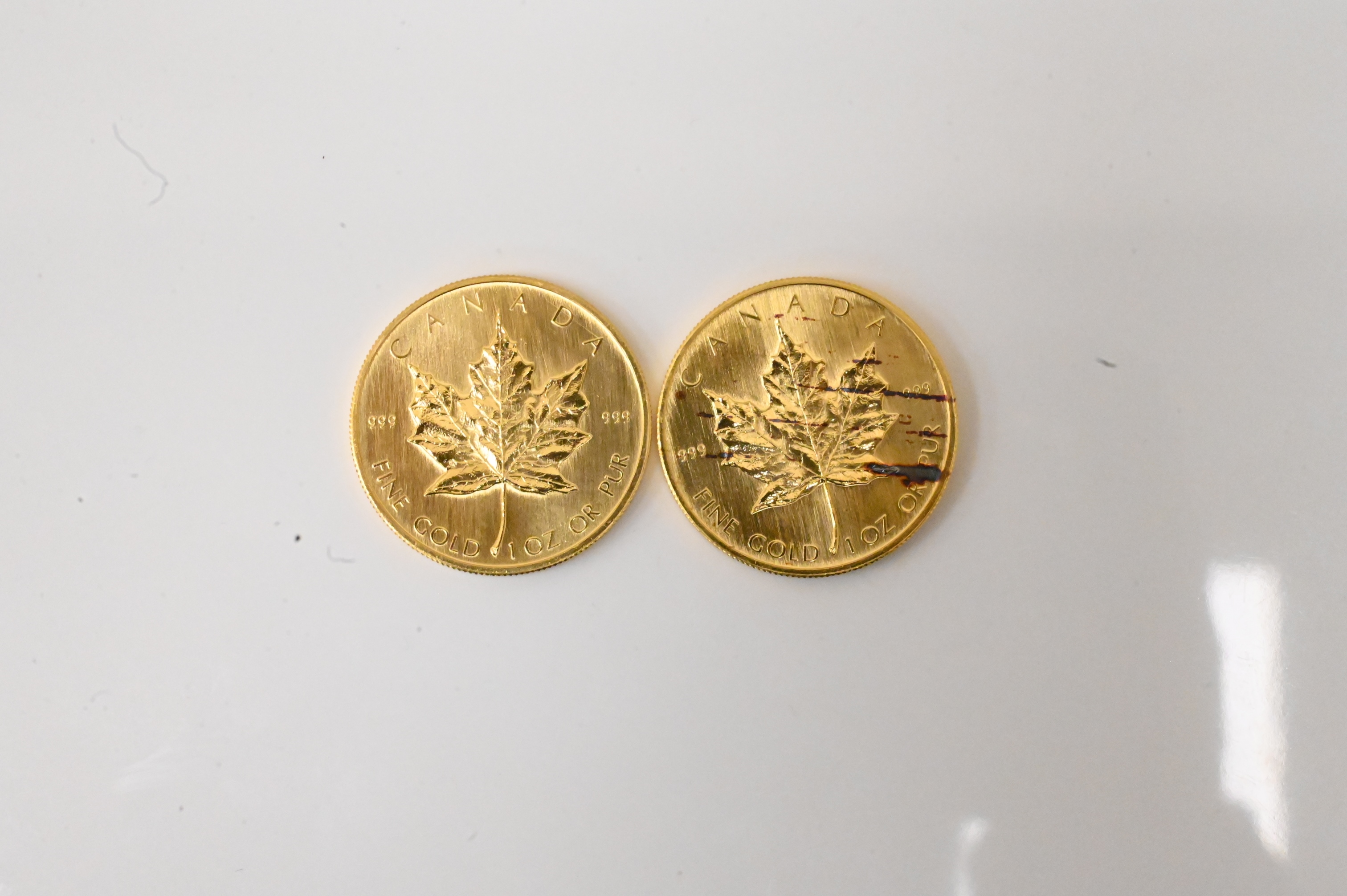 Two 1980 Canadian One Ounce Fine Gold $50 Maple Leafs, 2 oz total