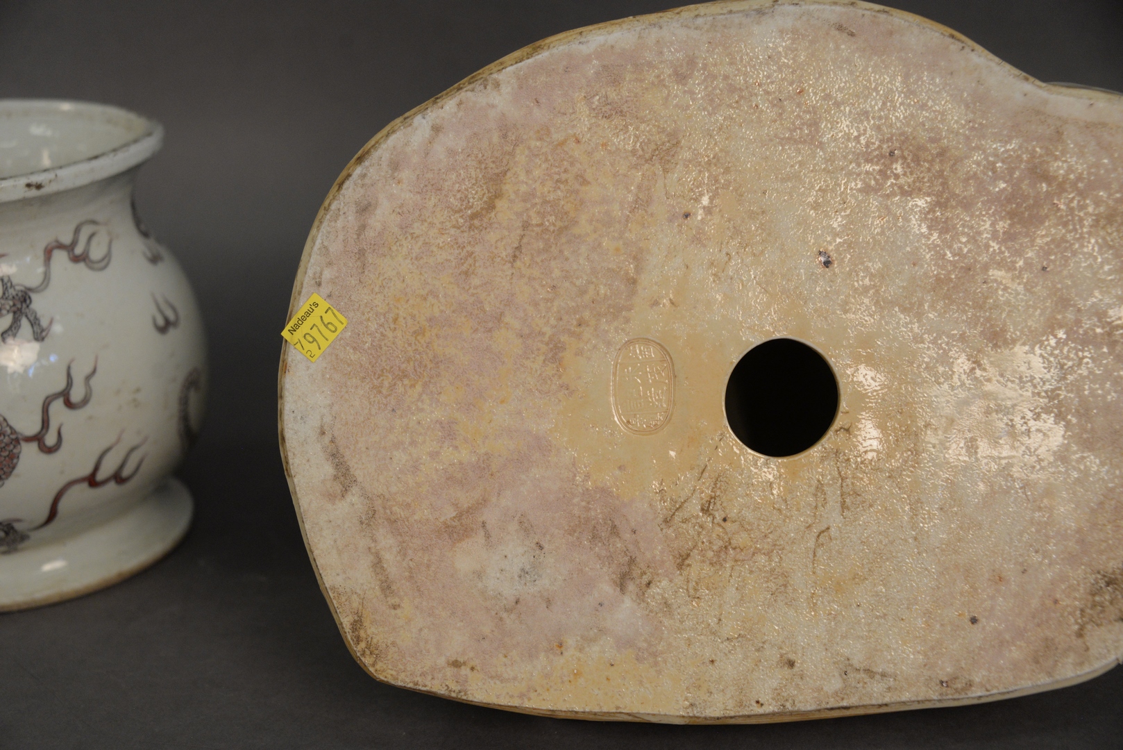 Lot 269: Two piece lot to include a gilt bronze Buddha figure, height 19 inches, along with a white glazed ceramic Buddha figure, height 15 inches.