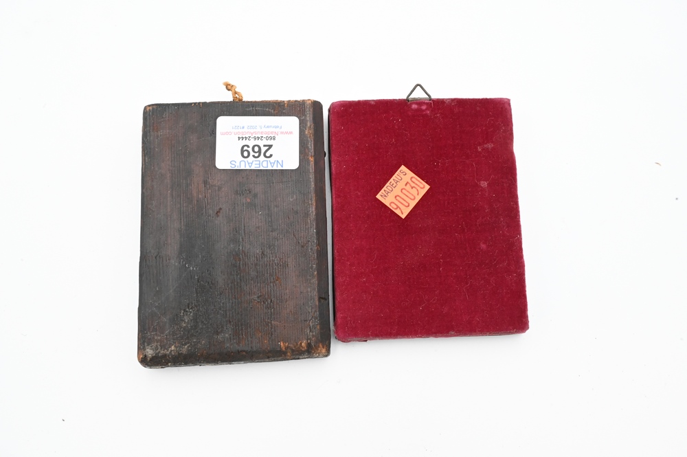 Lot 269: Two Small Icons, one on tin, one on wood, 4 3/4″ x 3 3/4″ and 4 1/2″ x 3 1/2″.