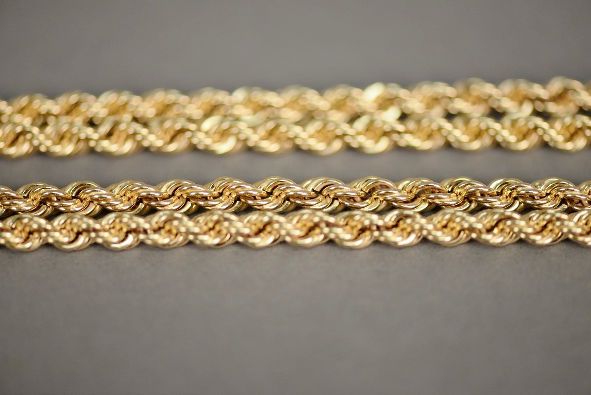 14K gold rope chain. lg. 31 in. 25.7 grams