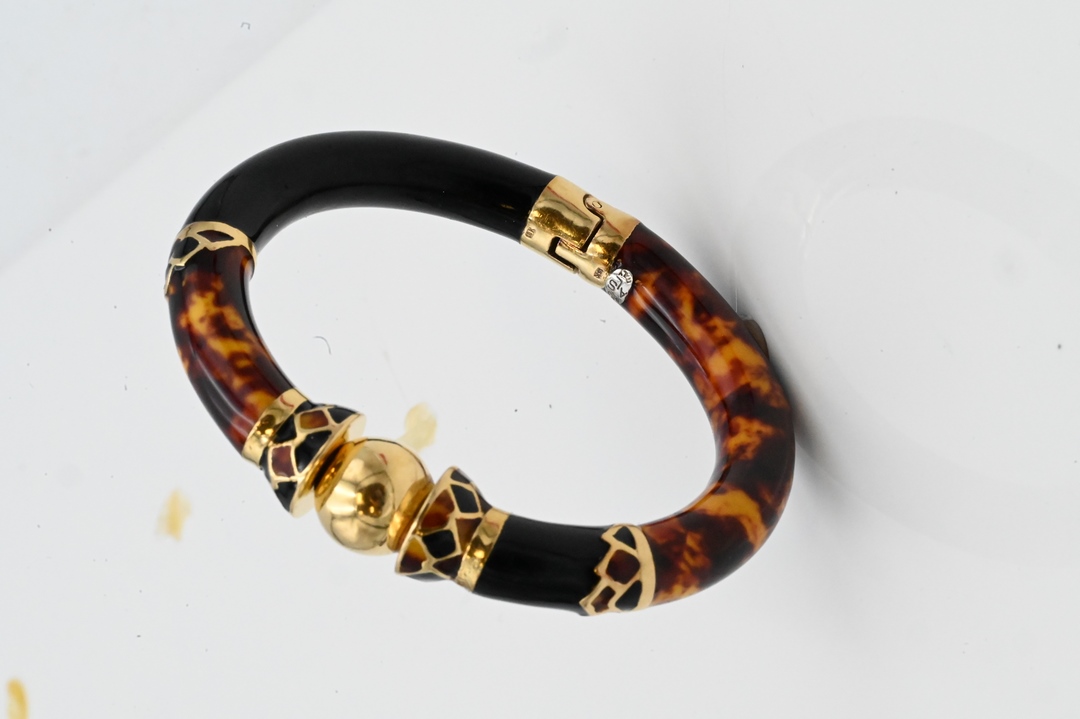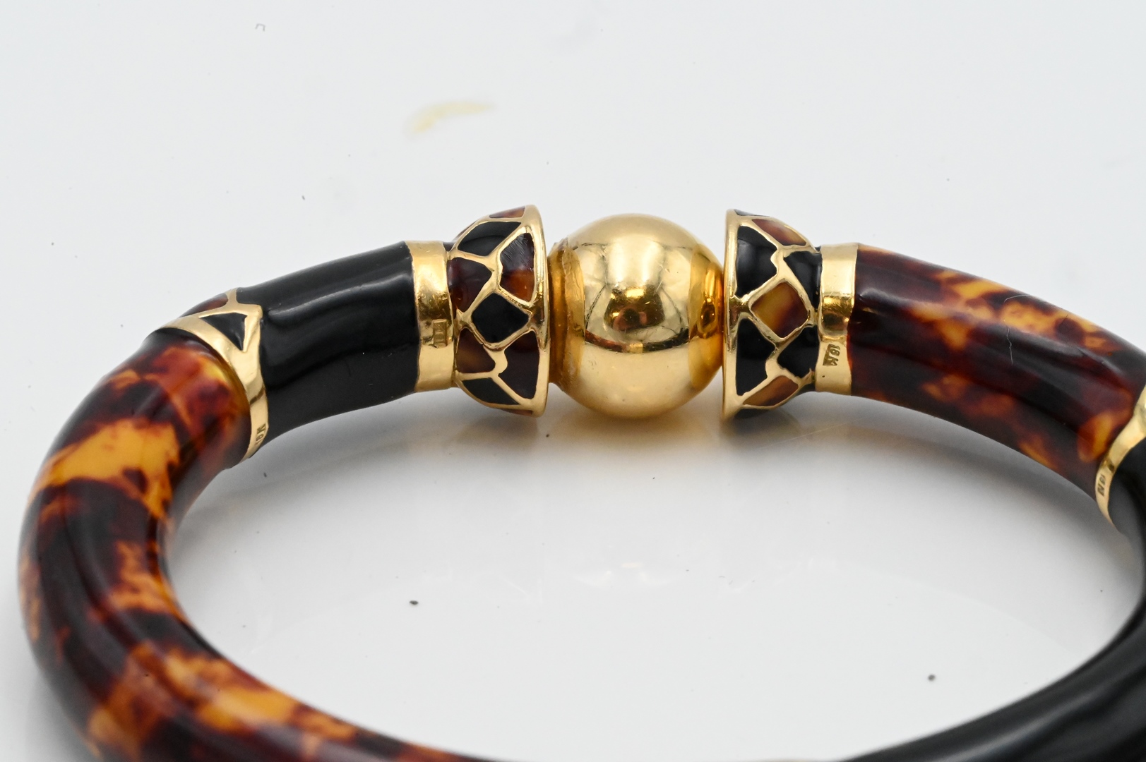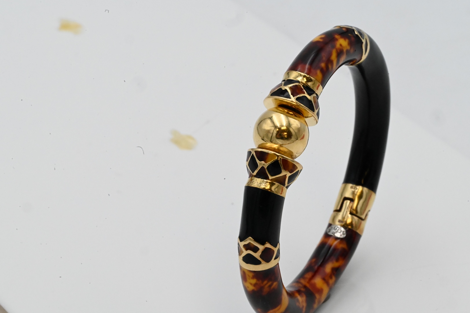 18 Karat Gold and Silver Enameled Bangle Bracelet marked 18K 925 (under enamel) ALS Italy 8 inches Condition: good condition