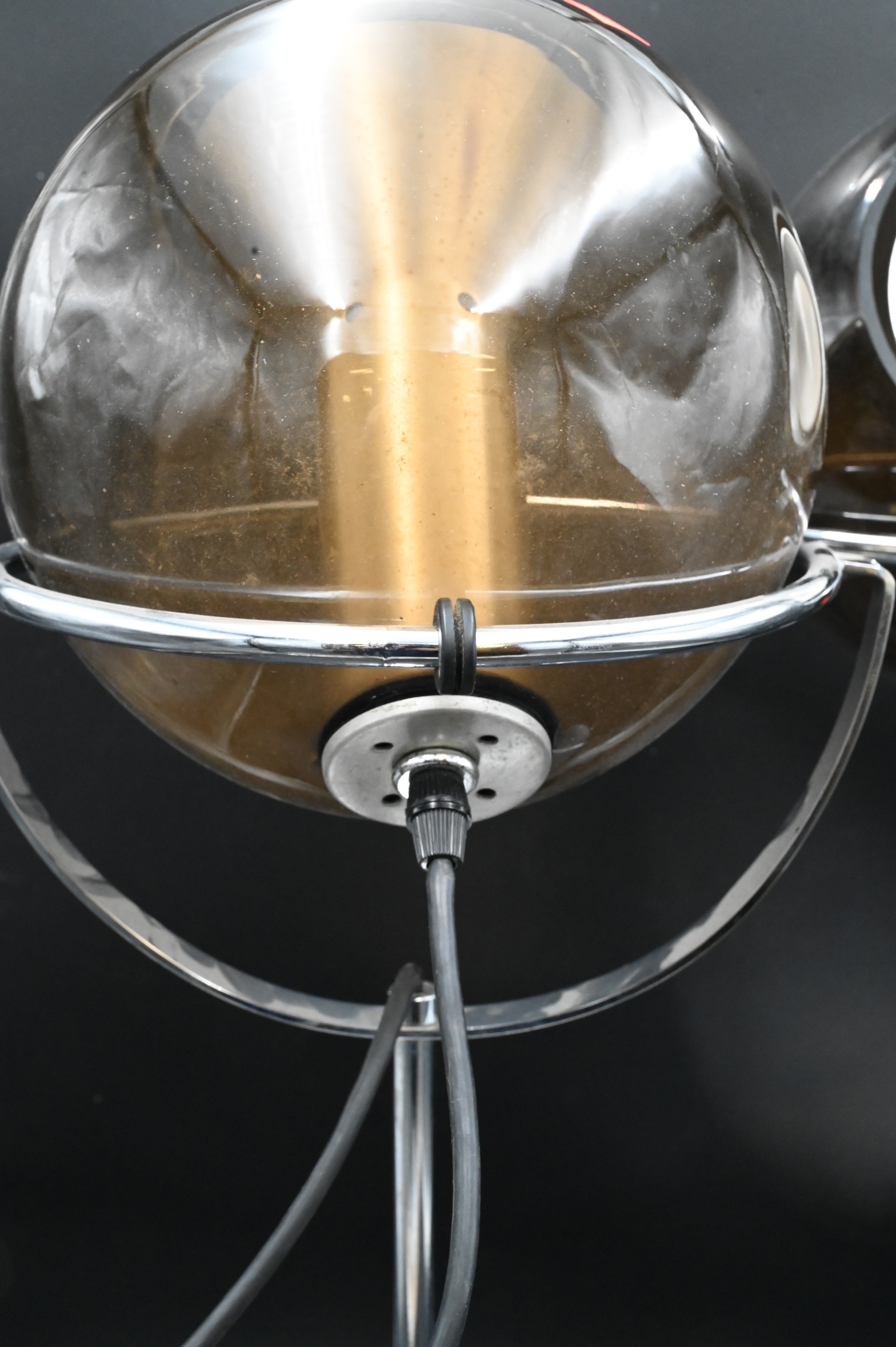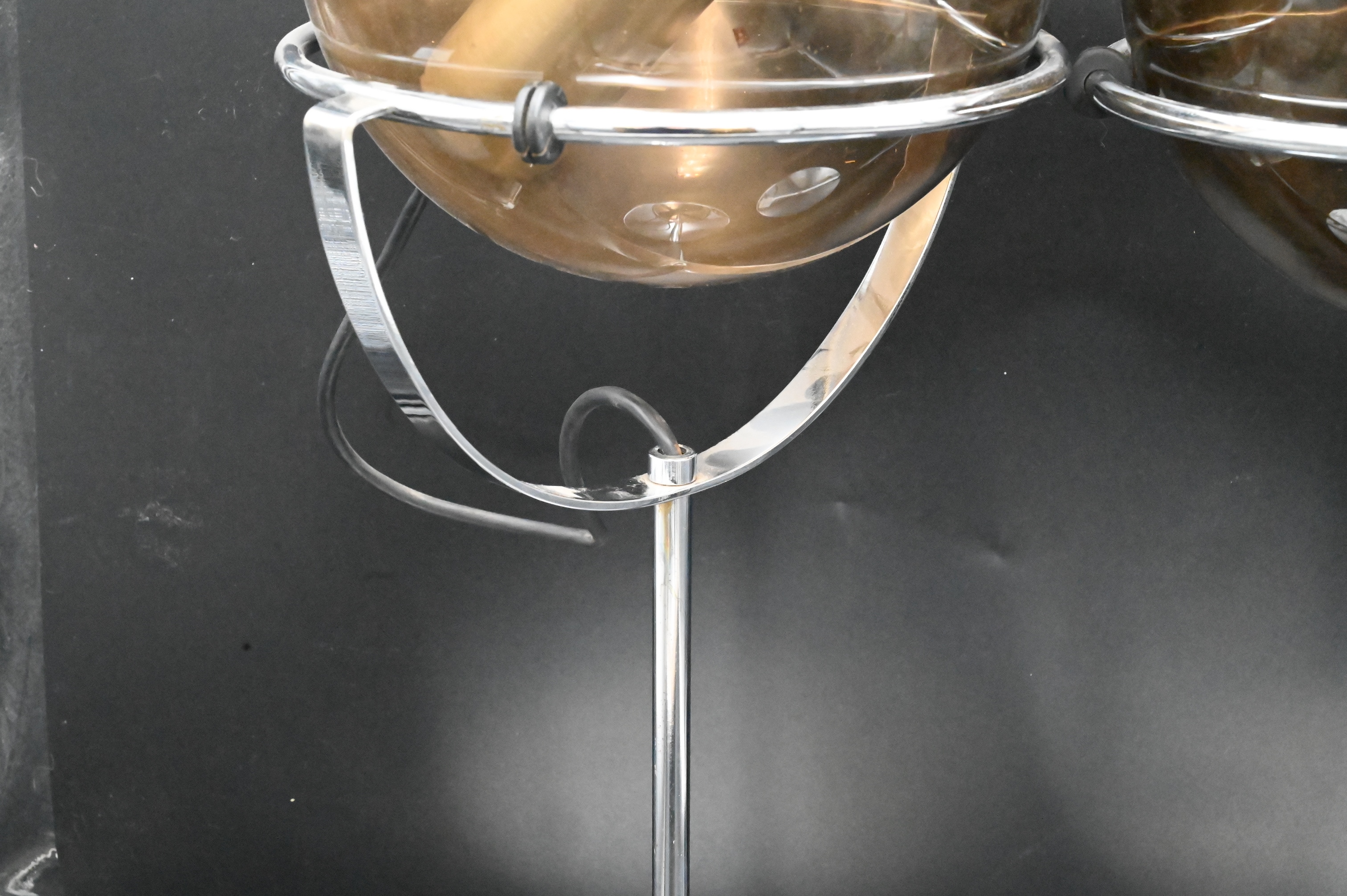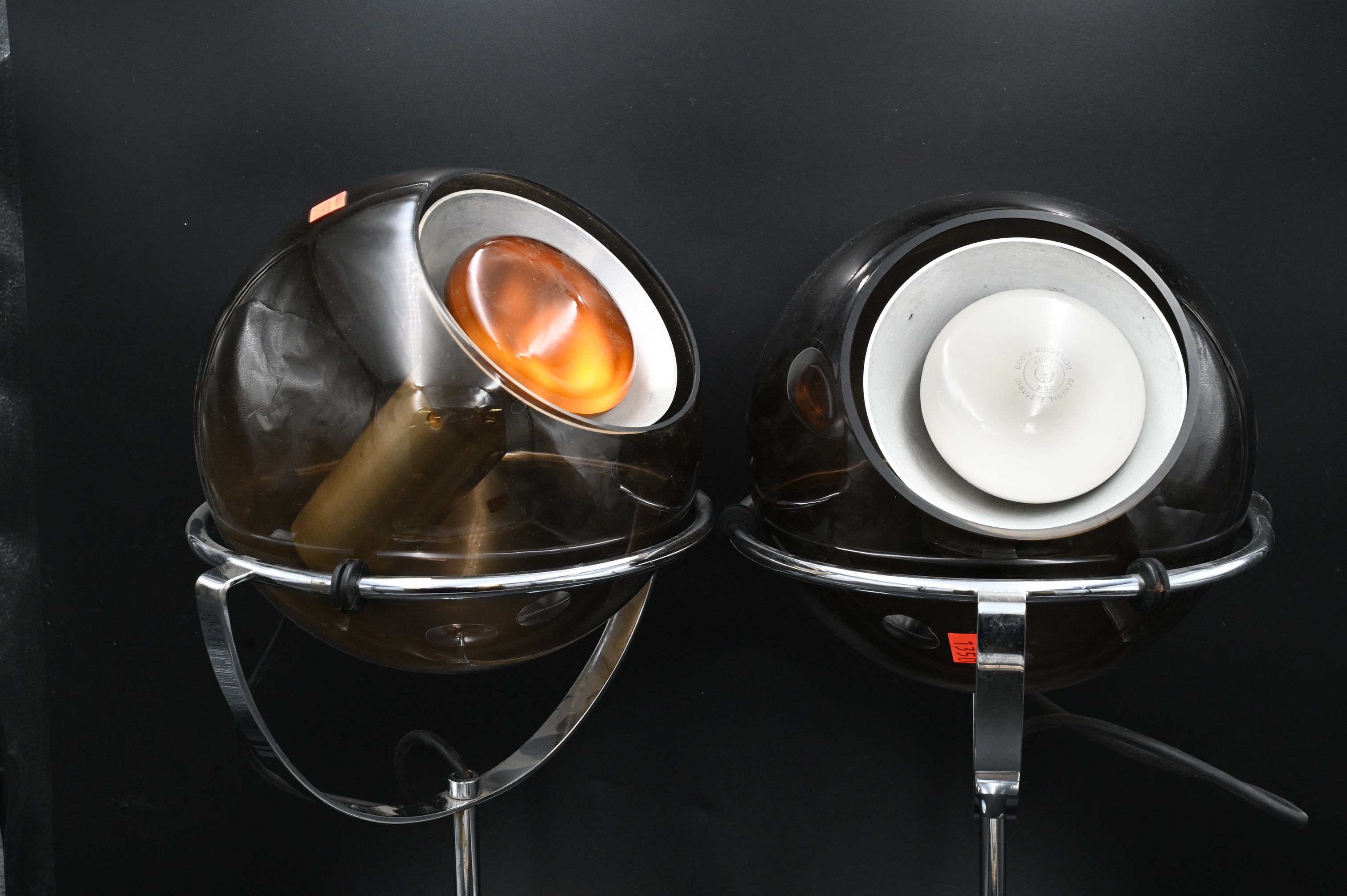 A Pair of Frank Ligtelijn (Dutch, b. 1933) Table Lamps, for Raak, mid century modern, round chrome base with chrome shaft, eyeball smoky glass and adjustable shade, height 29 inches. Provenance: Property from a private New York collection sold to benefit charitable foundations.