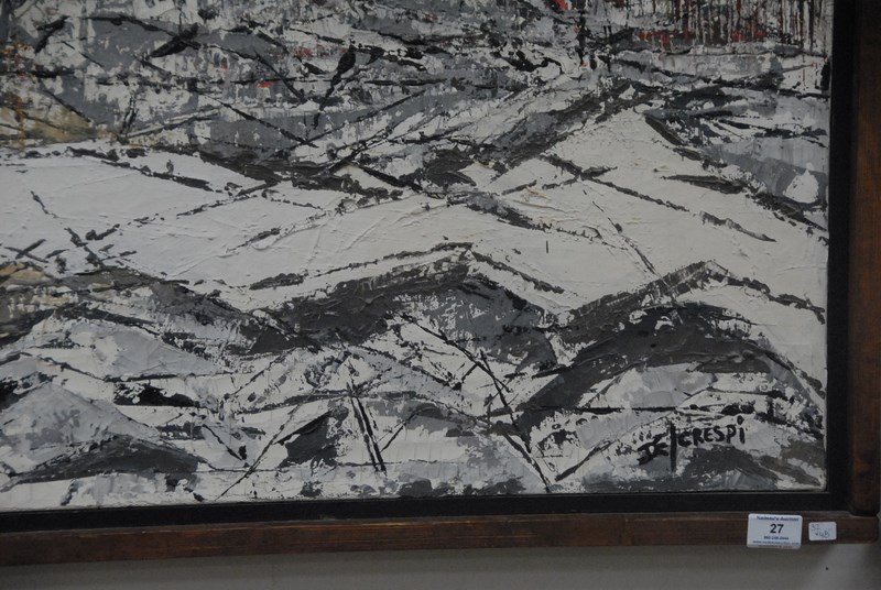 Lot 27: David E. Crespi 20th century New England Rockscape oil on canvas signed lower right D. E. Crespi 32 x 48