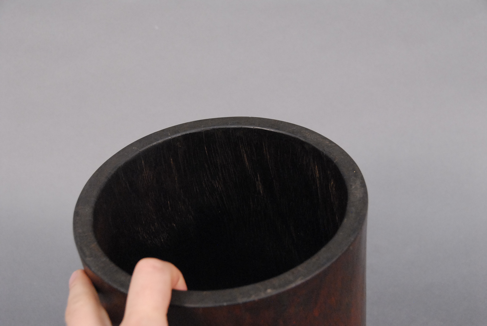 Hardwood brush pot missing bottom stopper ht. 7 1/2in. dia. 8in.