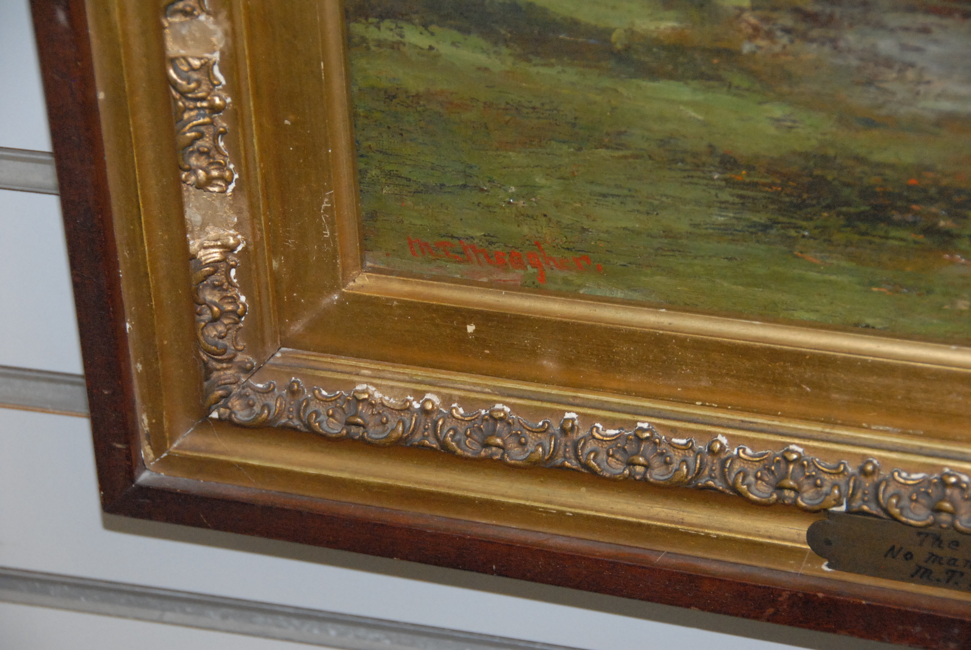 Lot 27: Marion T. Meagher The Pool No Man’s Land oil on canvas landscape framed under glass signed lower left M.T. Meagher, 11 1/2 x 15 1…