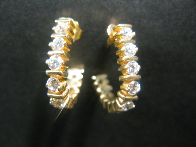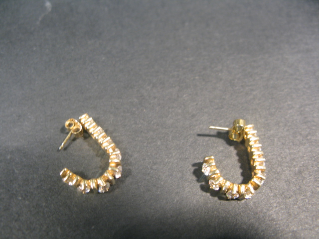 Pair of 14K gold and diamond earrings set with sixteen diamonds.