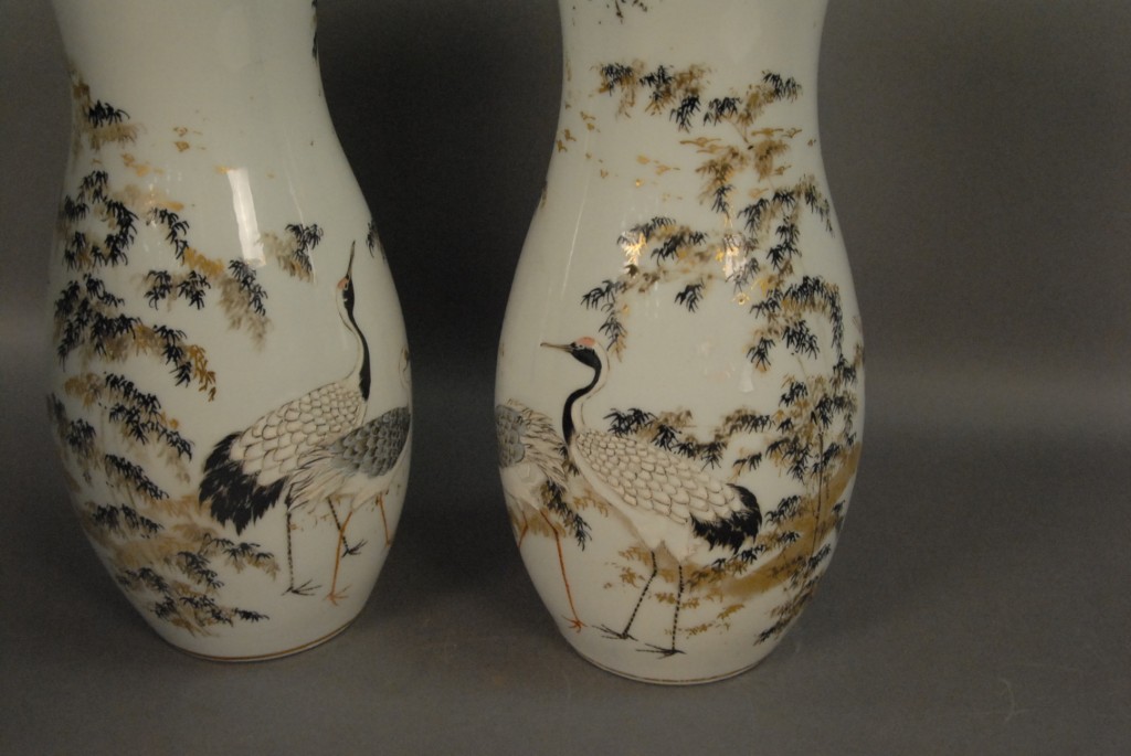 Pair of porcelain crane vases, both having four cranes, ht. 12.