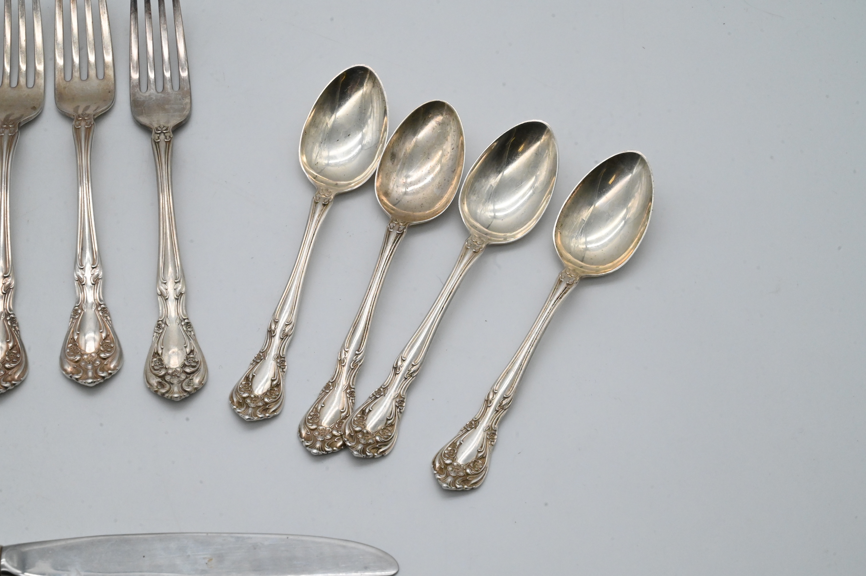 Lot 27: Partial Set of International Silver Sterling Silver Flatware Set in Chateau Rose Pattern