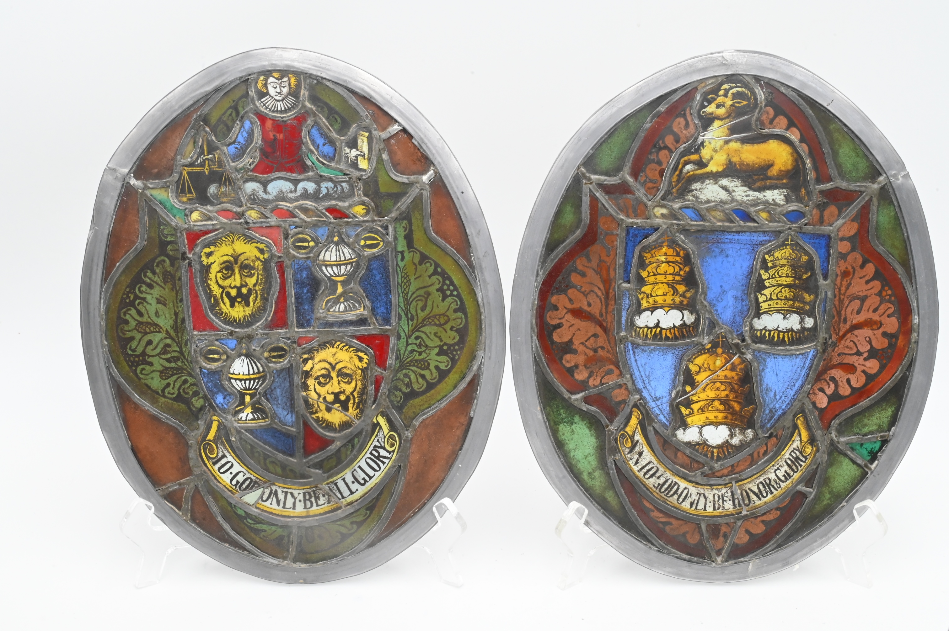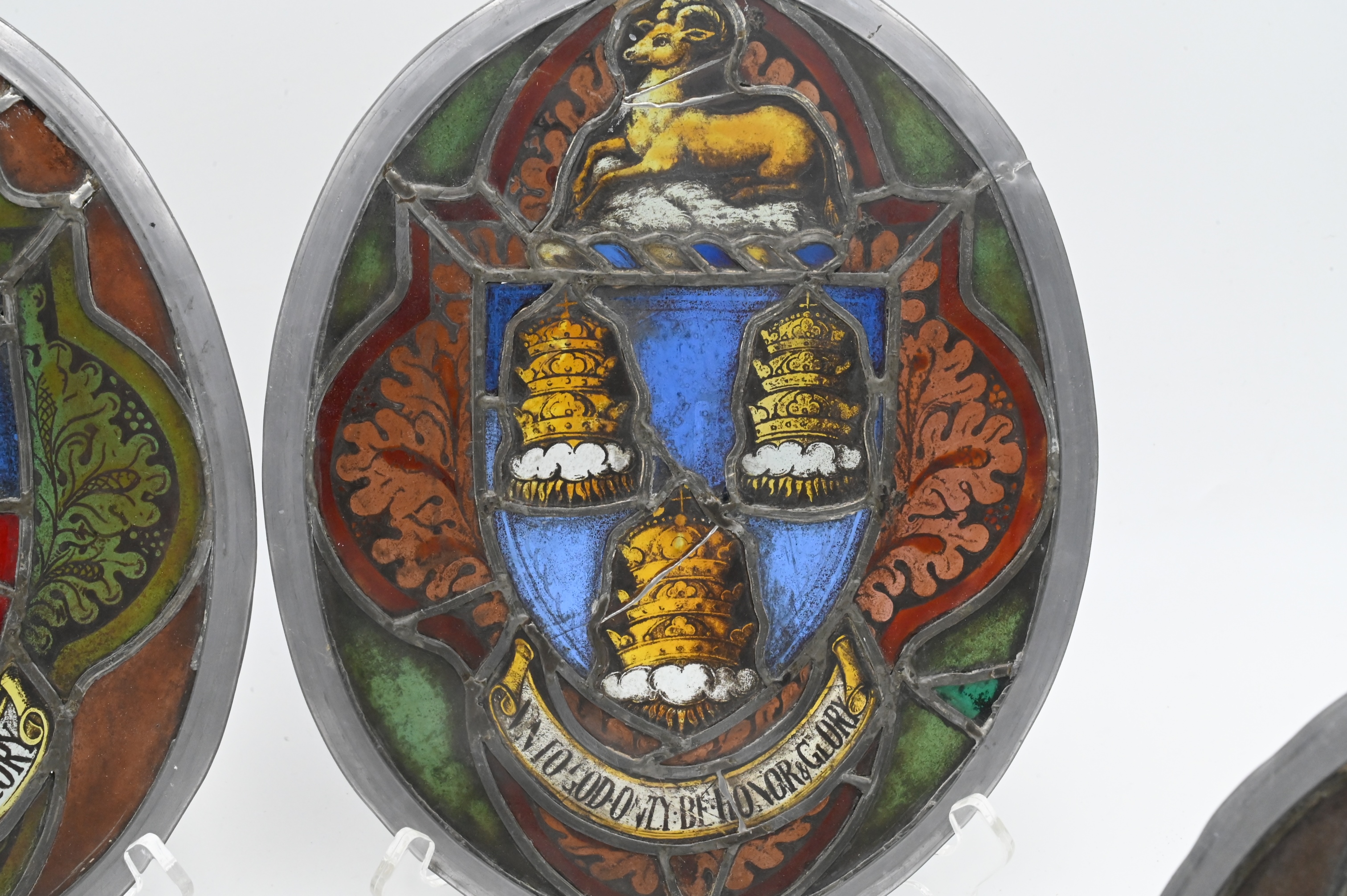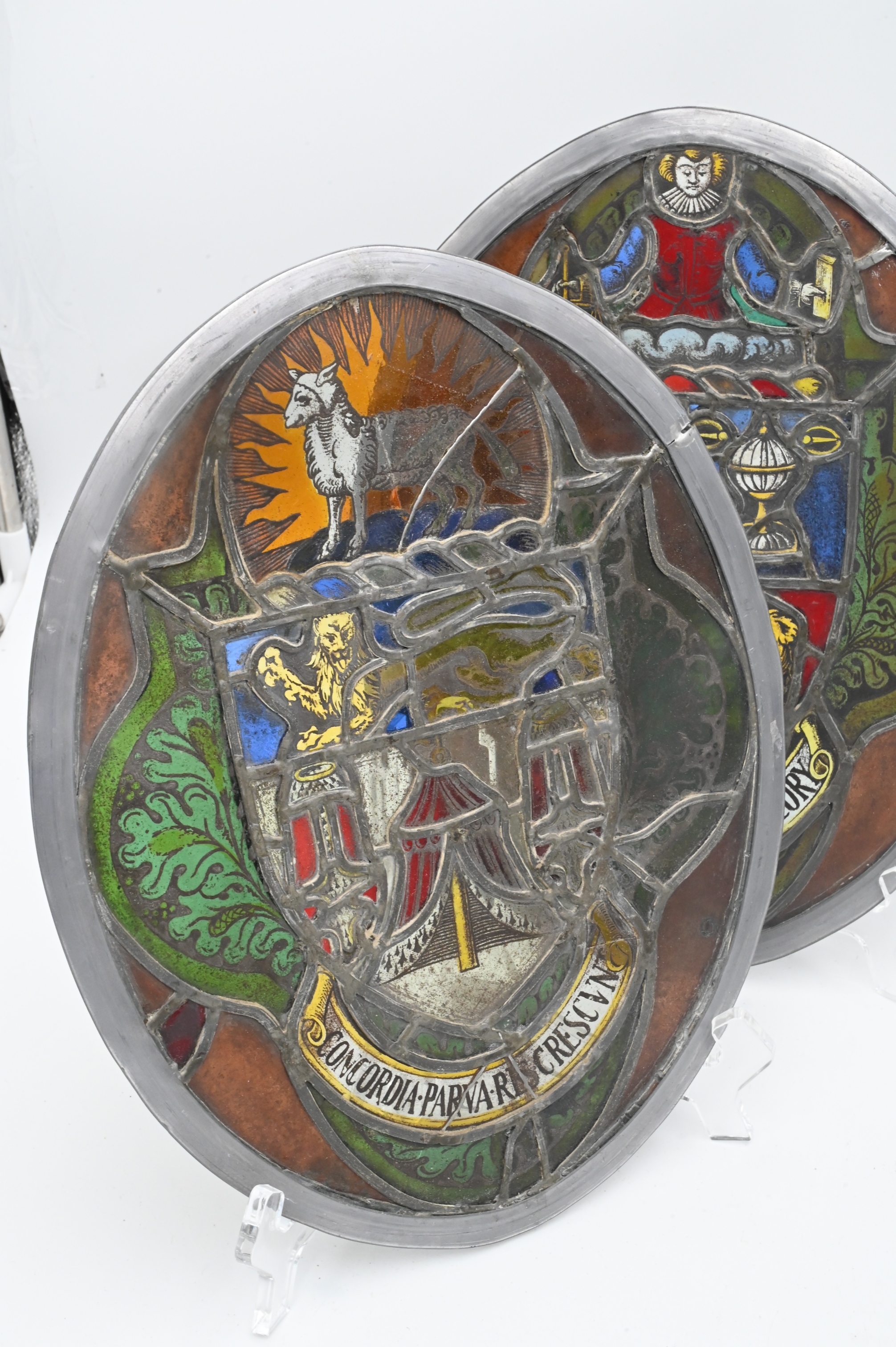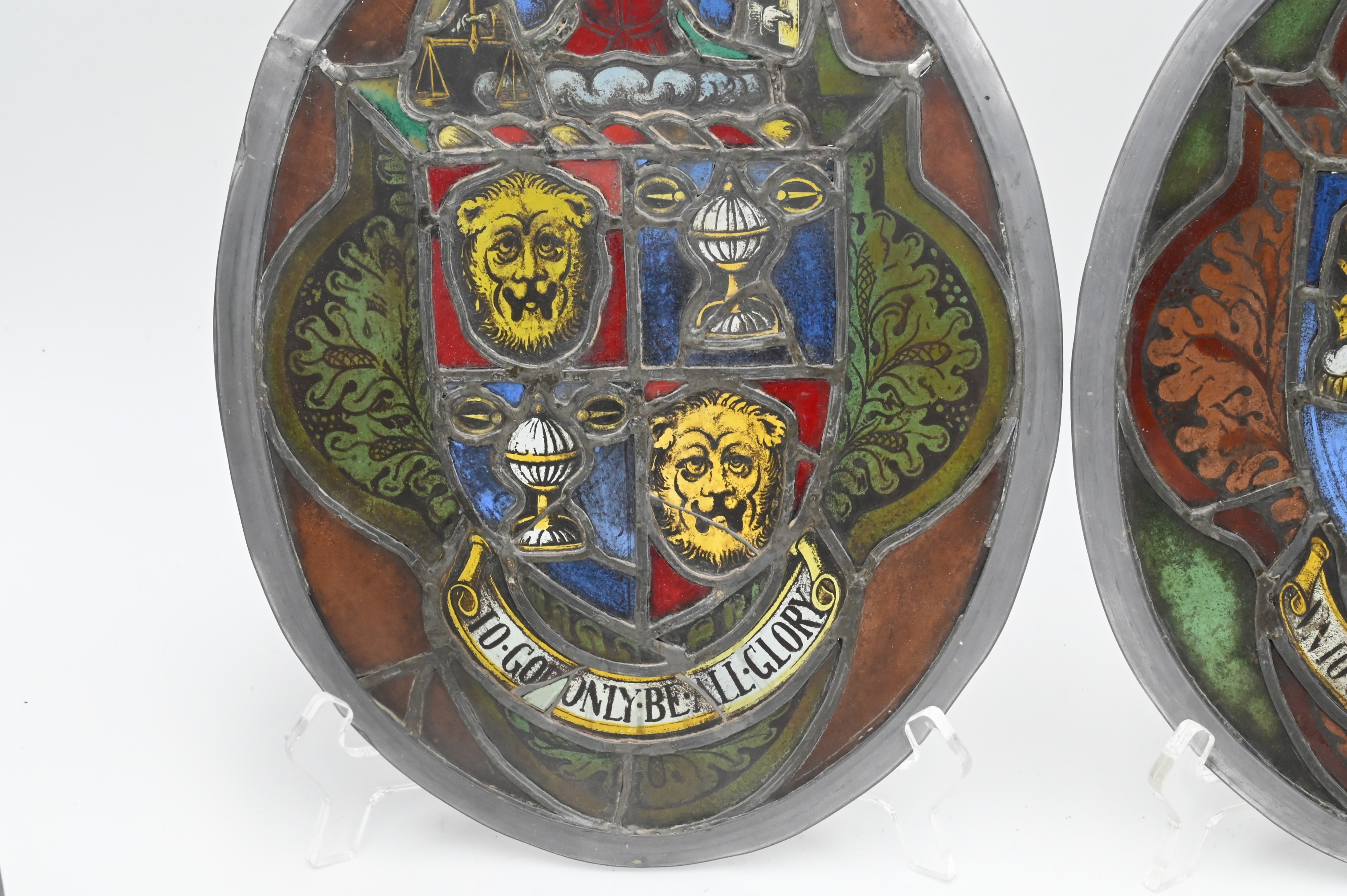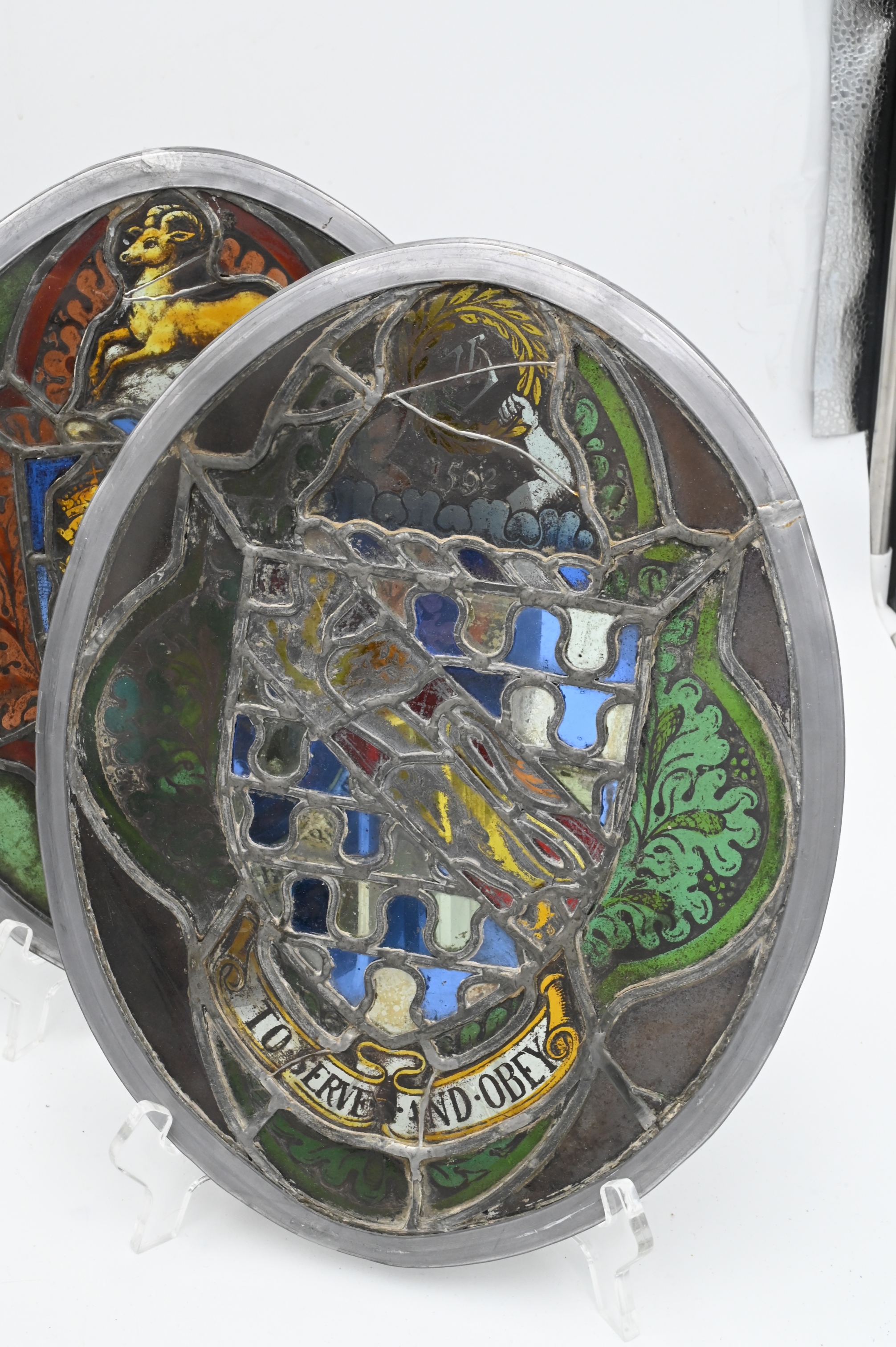 Lot 27: Set of Four Oval Stained-Glass Heraldic Roundel Panels