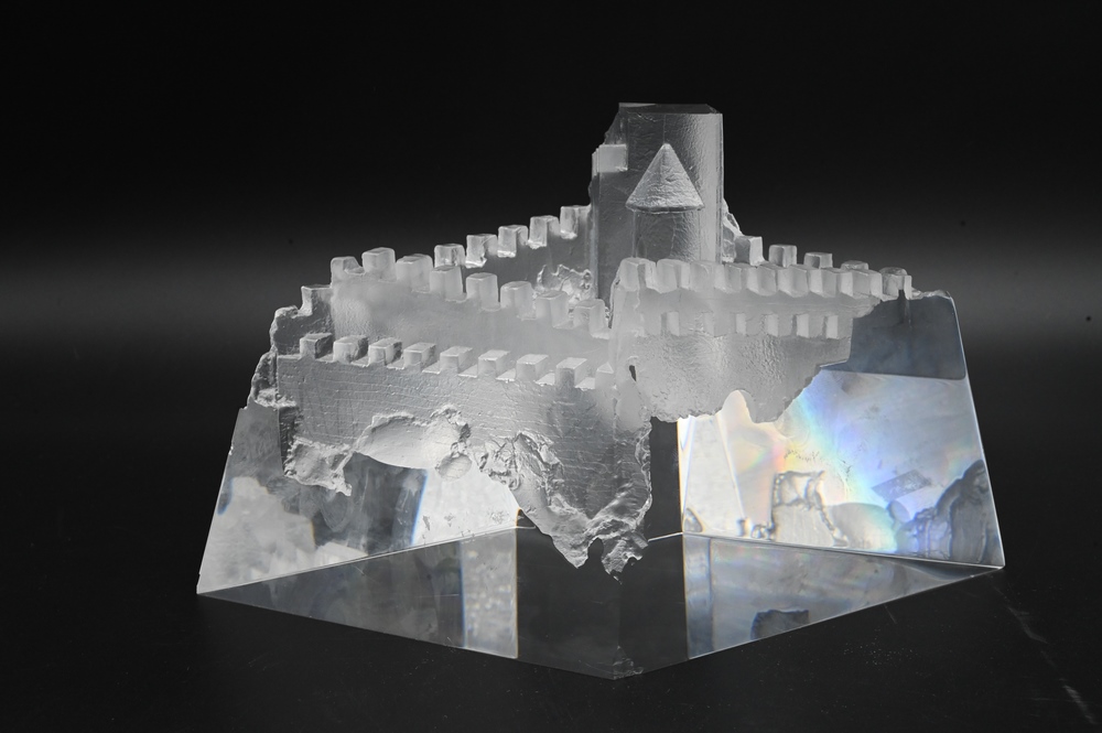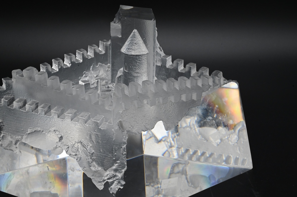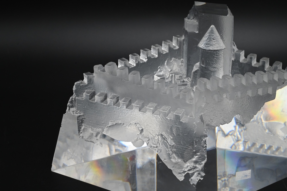 Lot 27: Steuben Glass Castle, signed on bottom, (several small chips), height 6 inches, length 10 inches.