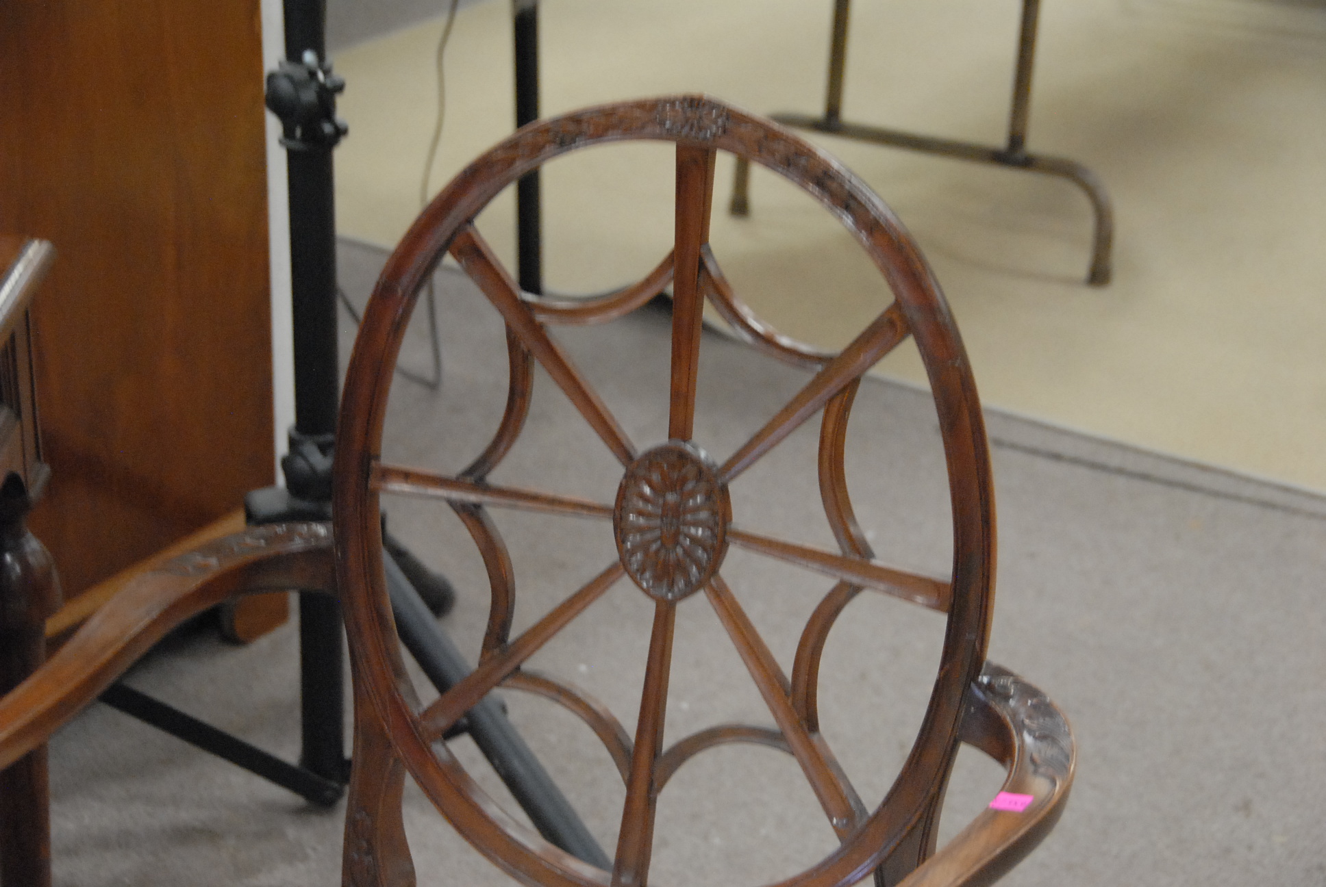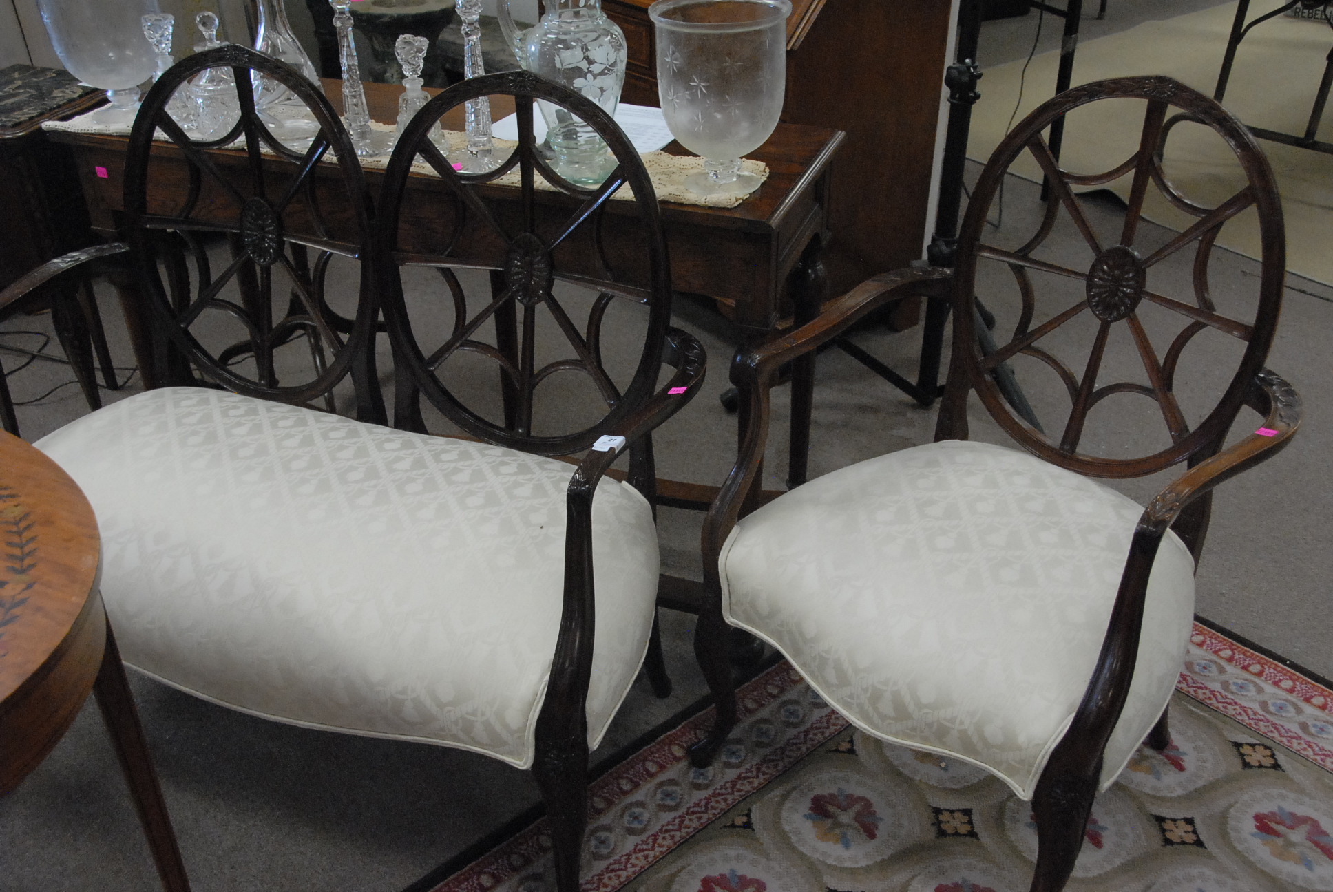 Three piece set including settee lg. 41 and two armchairs all with wheel backs.