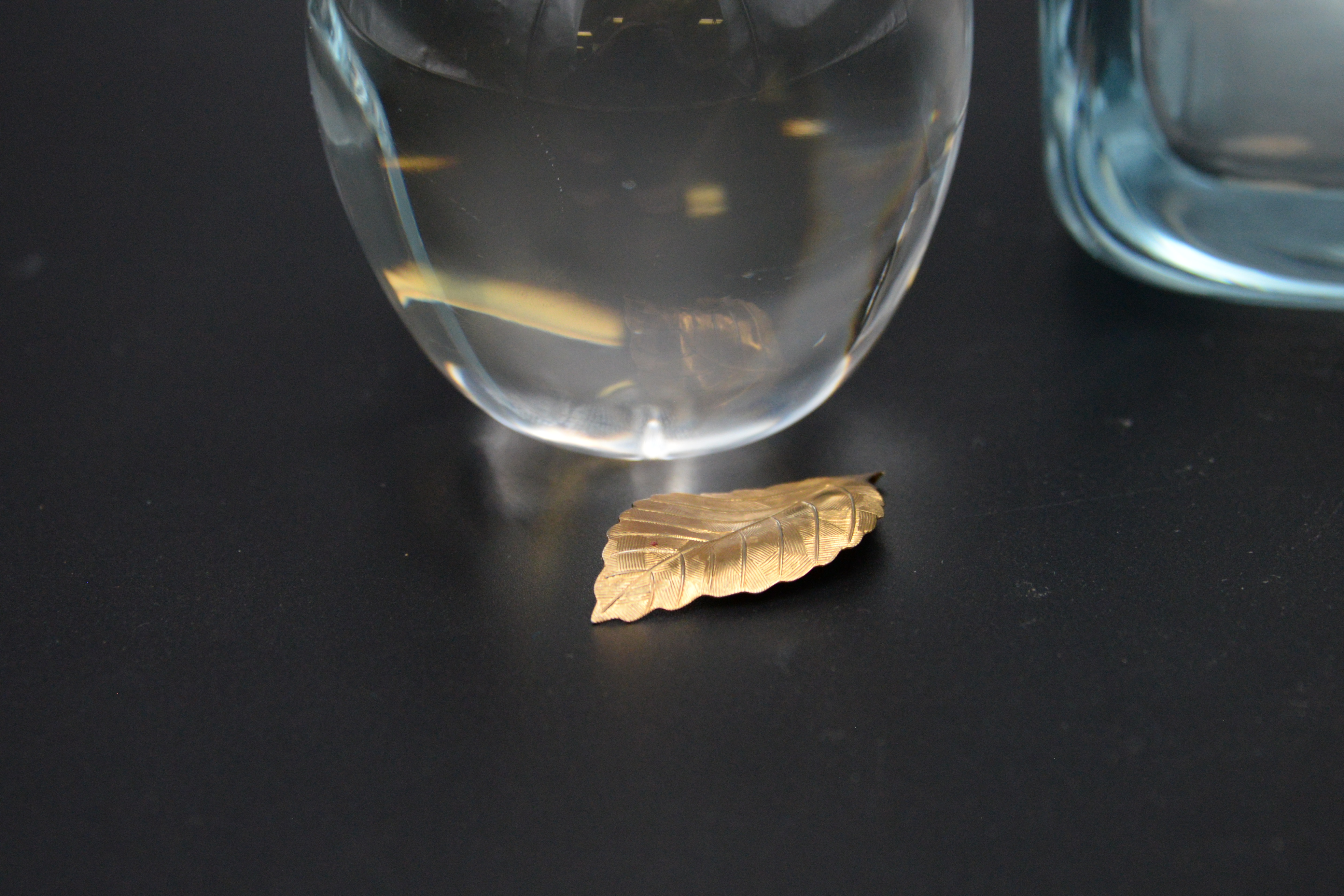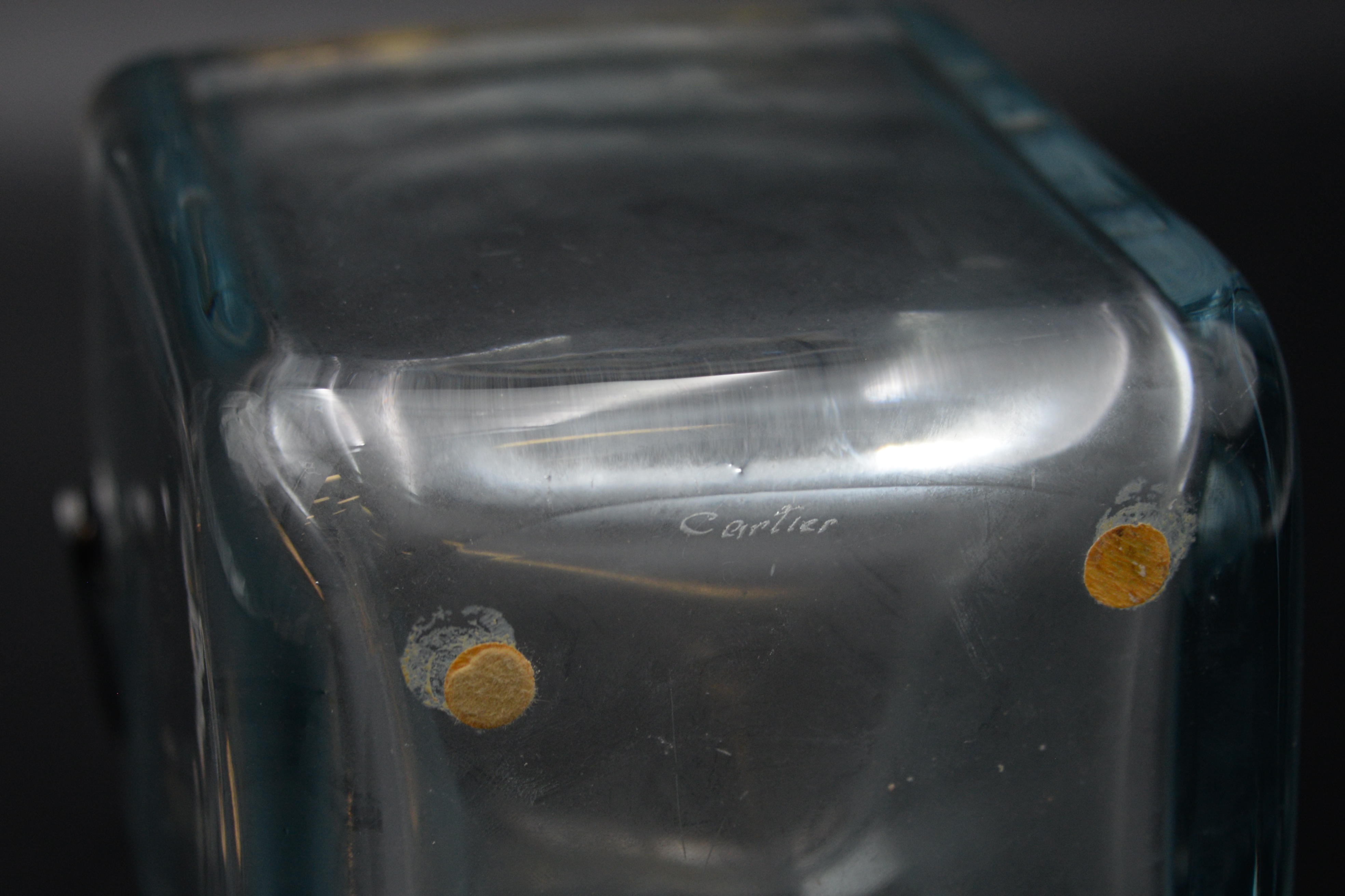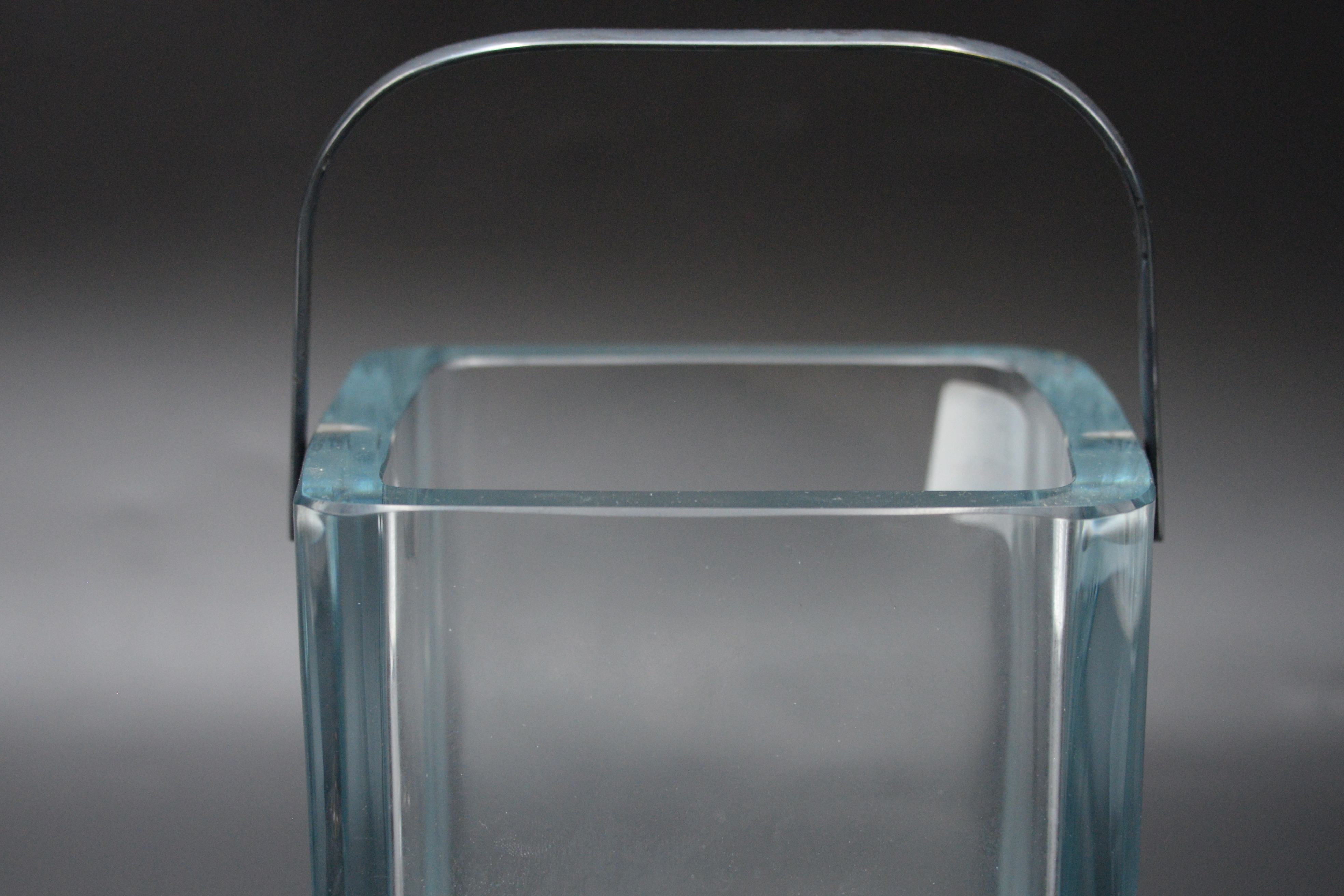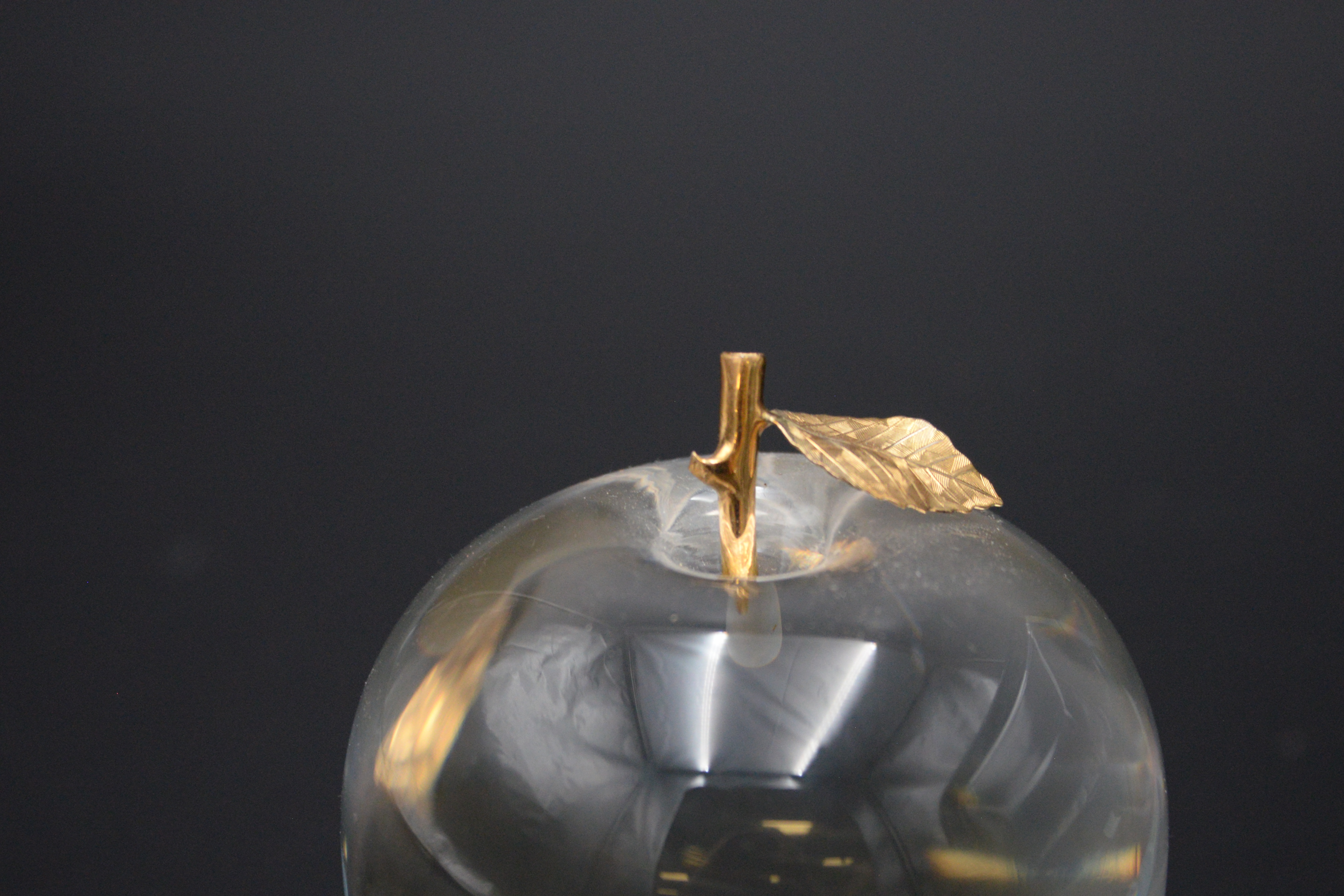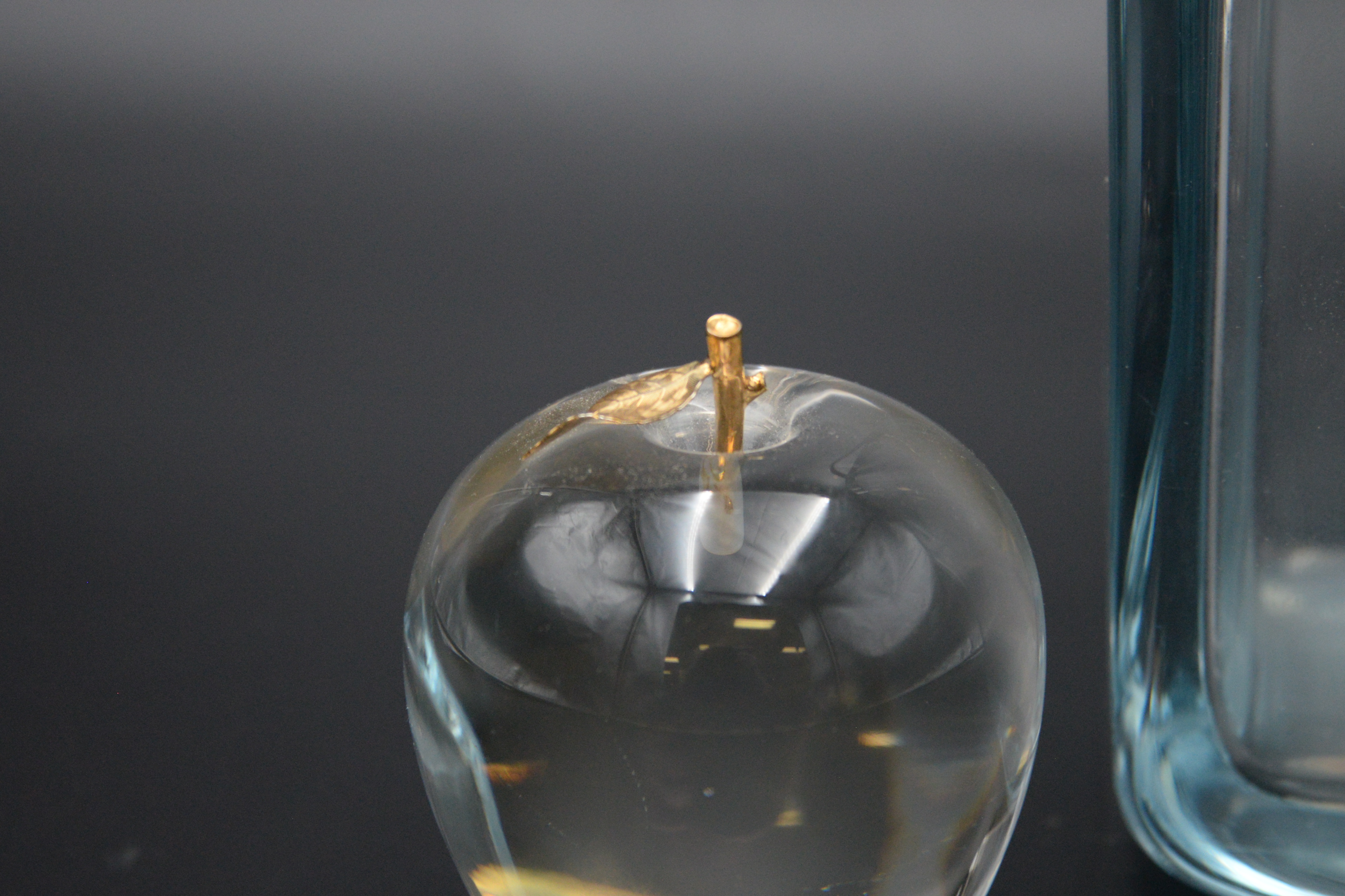 Two Piece Cartier Group, to include Cartier glass ice bucket, height 6 1/2 inches, with handle, along with an apple paper weight, one leaf missing, height 4 inches
