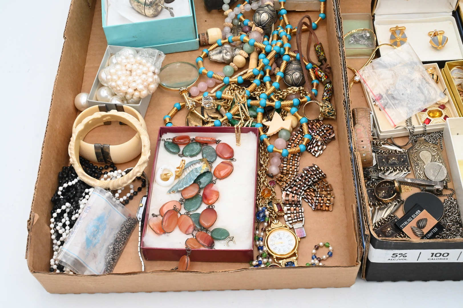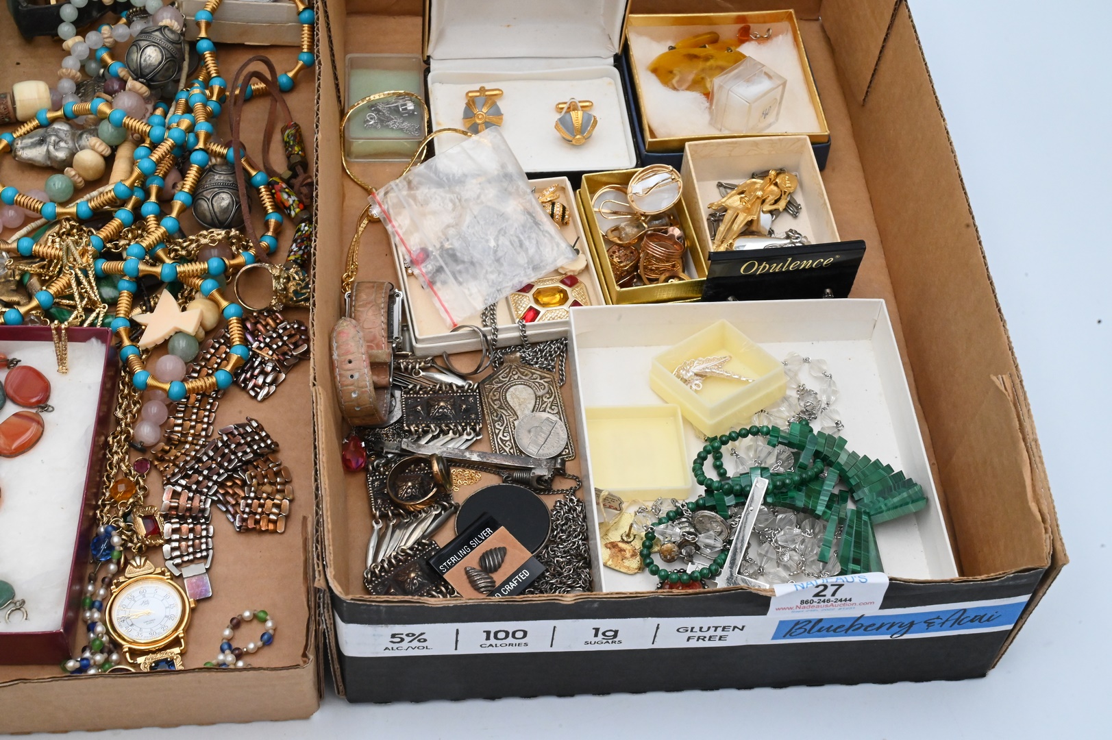 Two Tray Lots of Costume Jewelry, to include sterling, precious stones, etc.