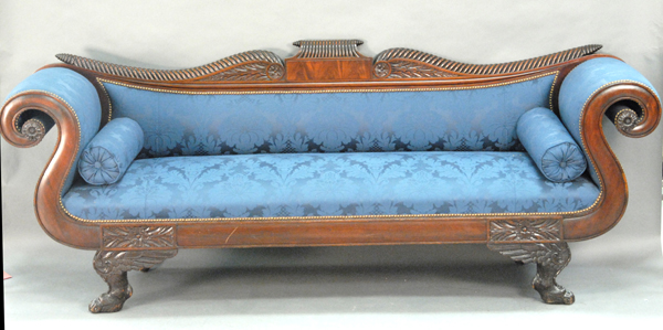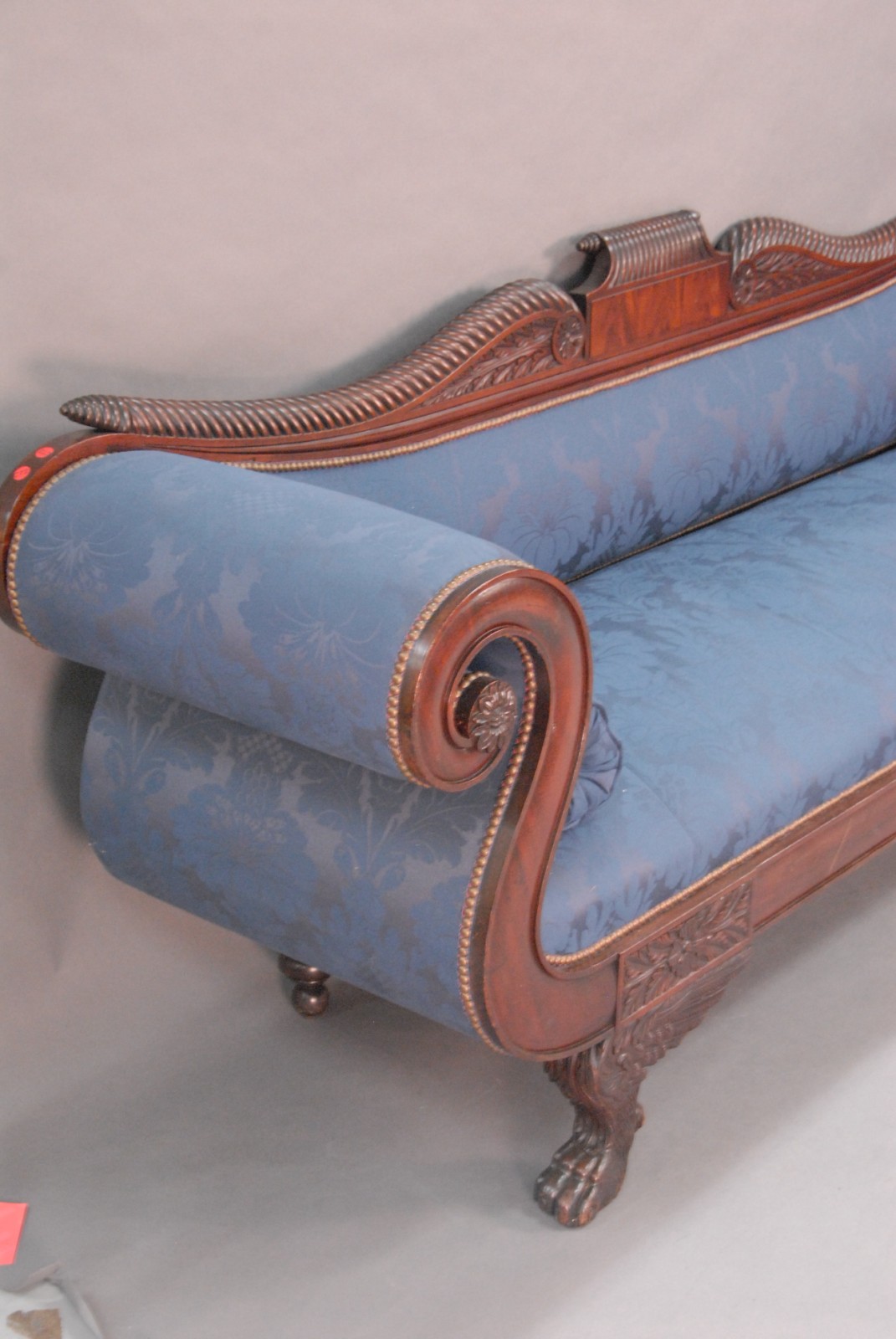 Lot 270: Bouvier Federal mahogany carved sofa with carved