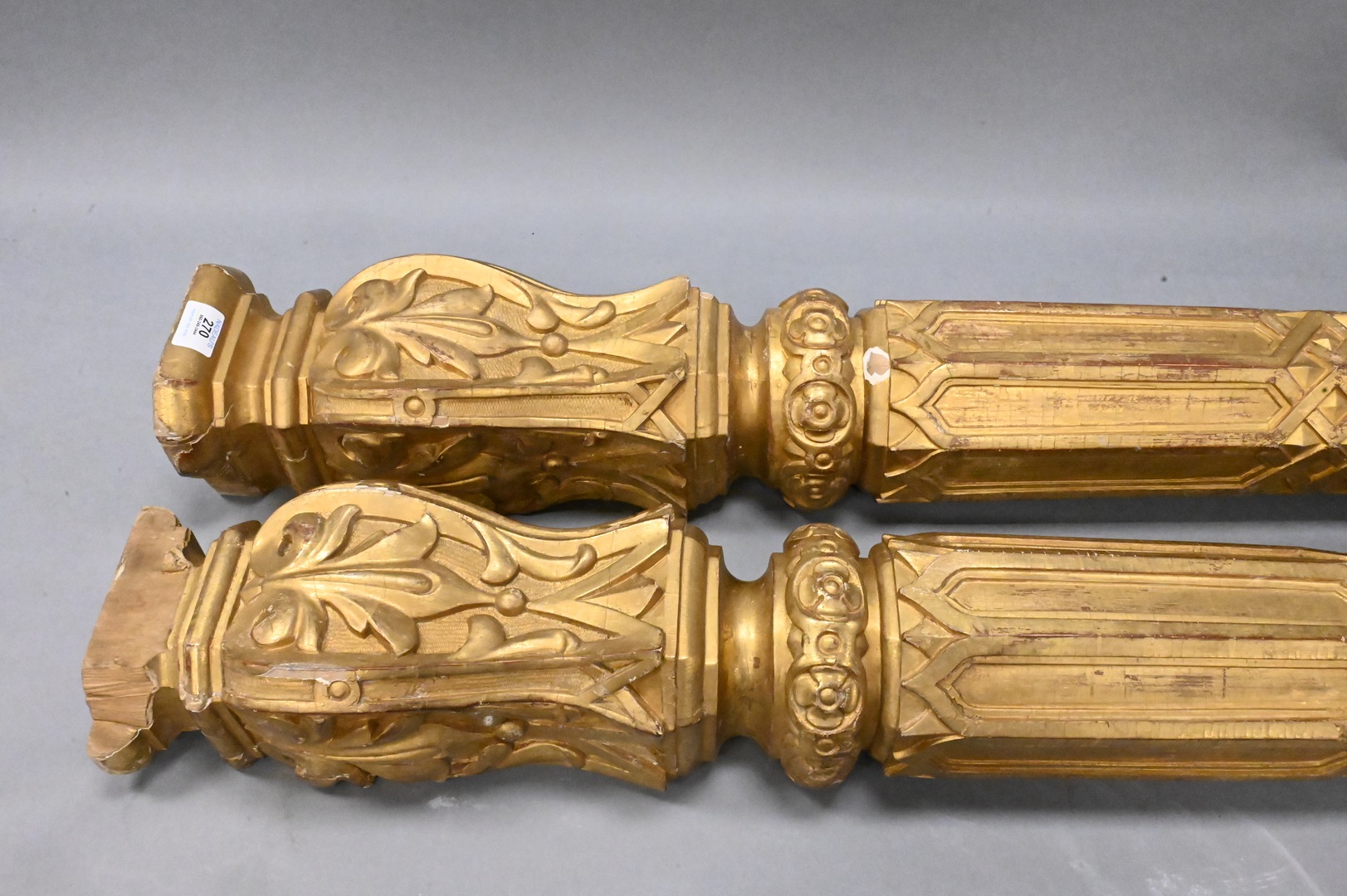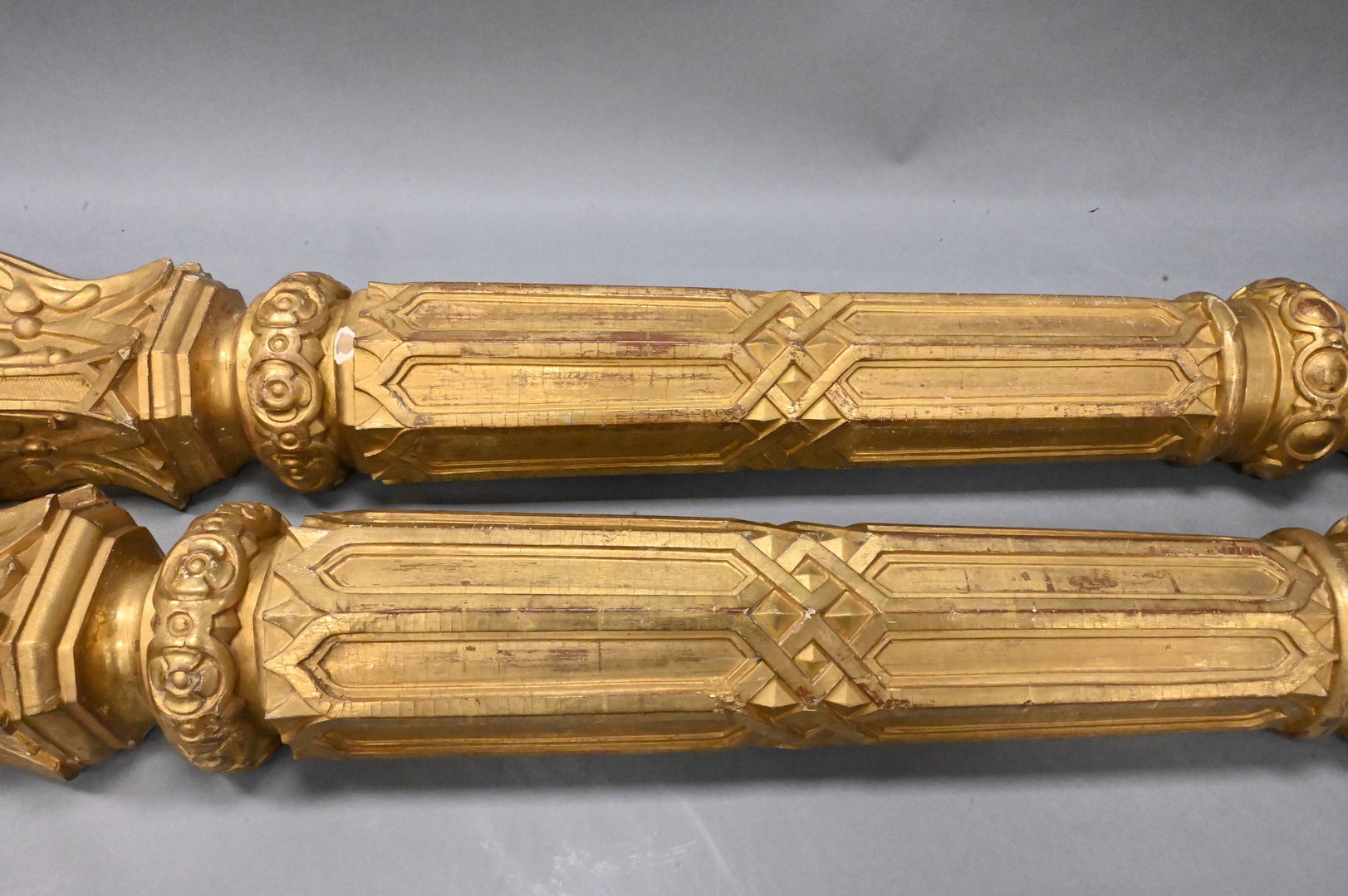 Pair of Gilt Archival Carved Columns, height 52 inches. Provenance: Estate of Peter Tillou, Litchfield, Connecticut.