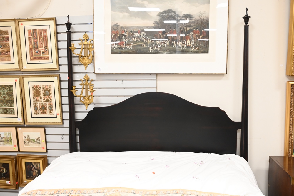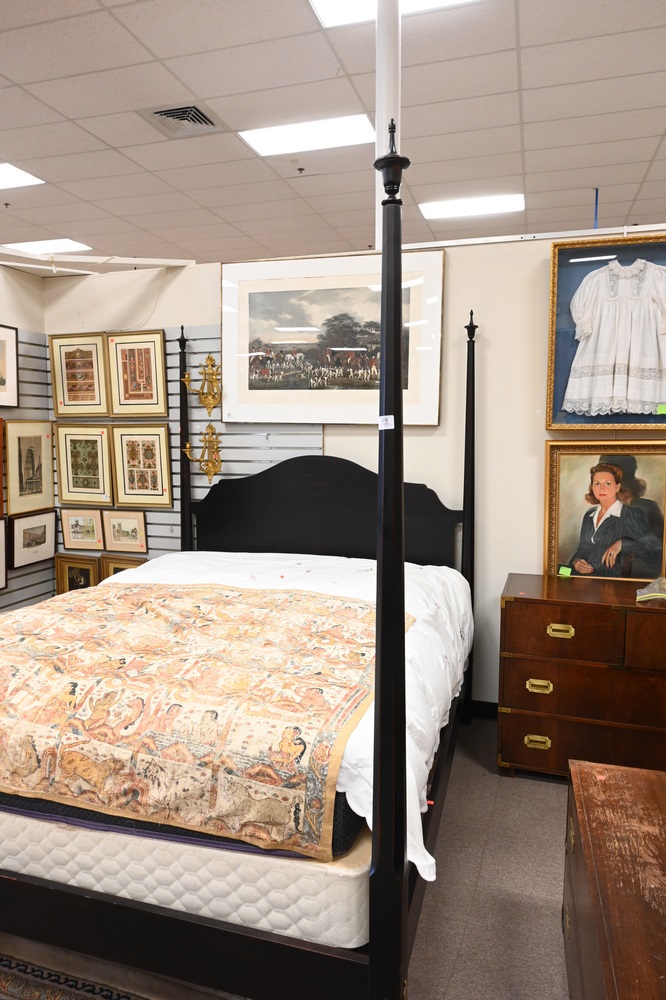 Lot 270: Robert Bergelin Company Custom Queen Size Bed, having tall pencil posts, height 83 inches.