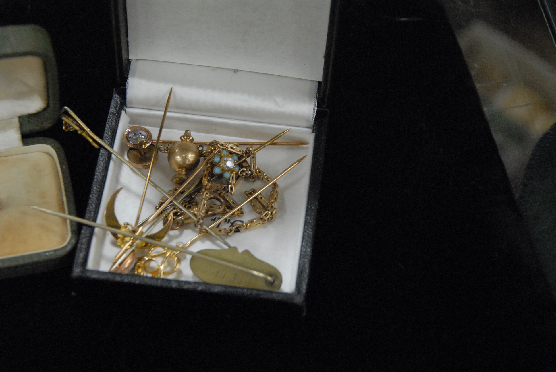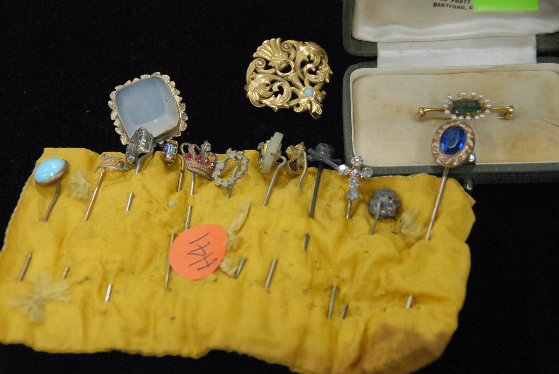 Small jewelry lot to include several stick pins and three Victorian pins.