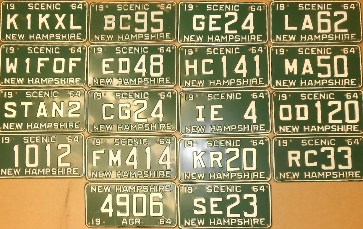Thirty six 1964 NH plates – various types offered by NH in 1964