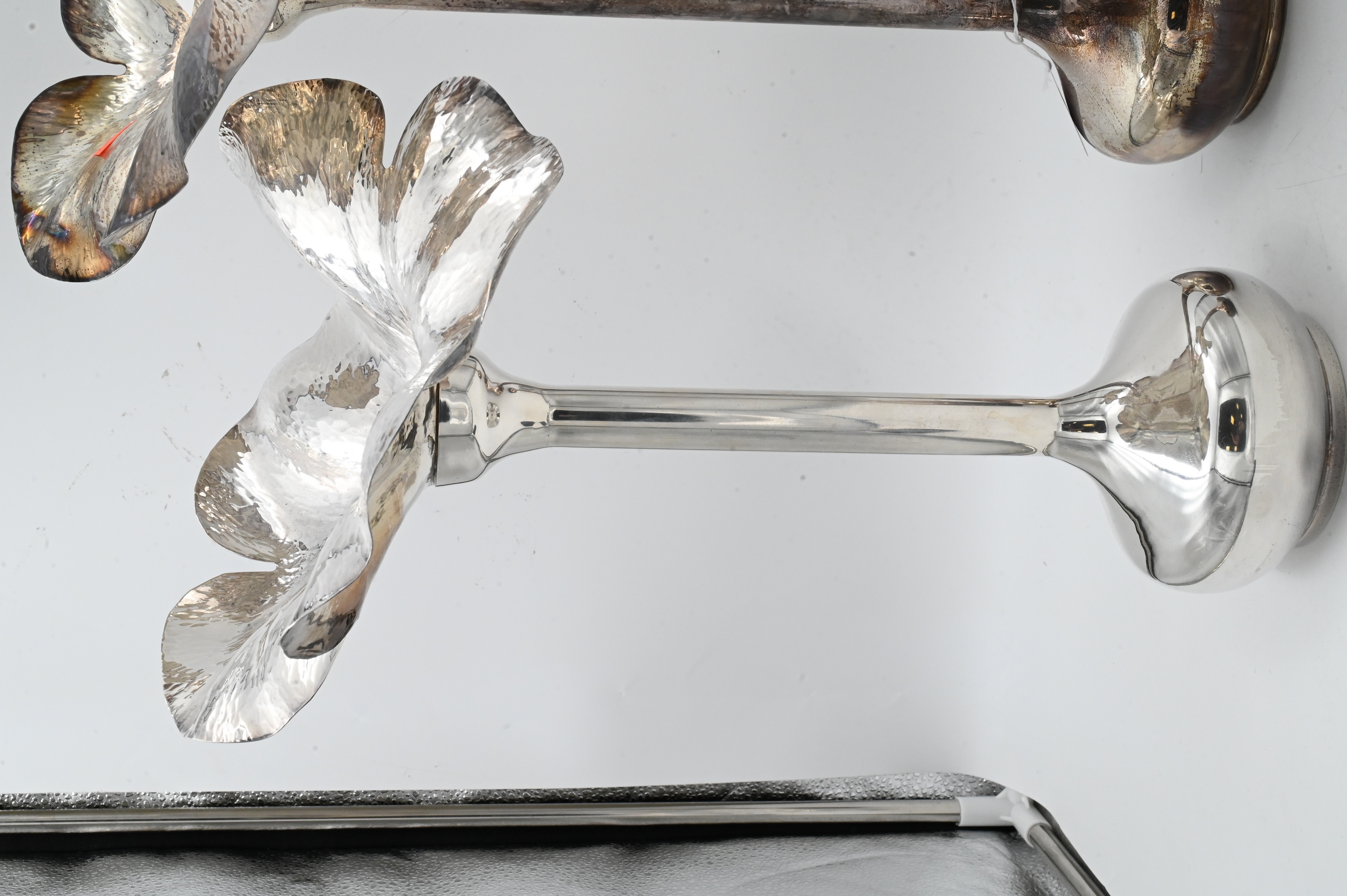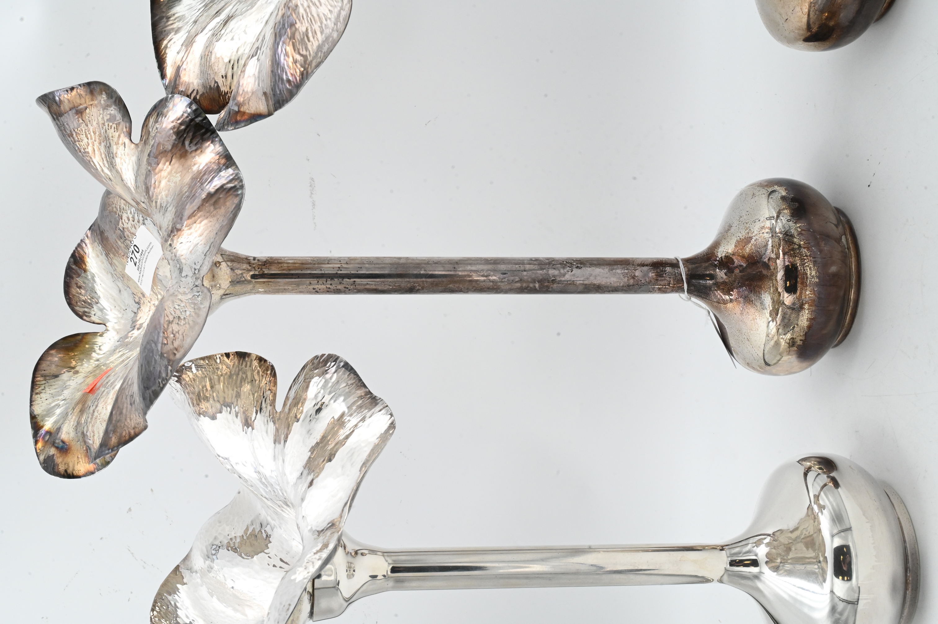 Lot 270: Three Graduated Silver Plate Flower Form Vases