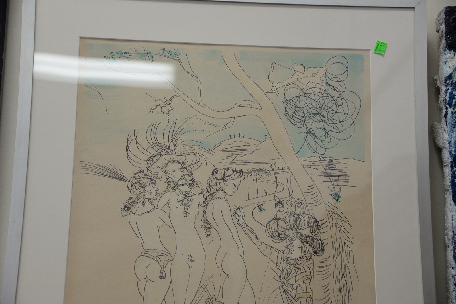 Two framed lithographs including a Marc Chagall violin with goat head sight size 14 x 10 and a Salvador Dali Three Graces signed in plate sight size 23 1/4 x 18.