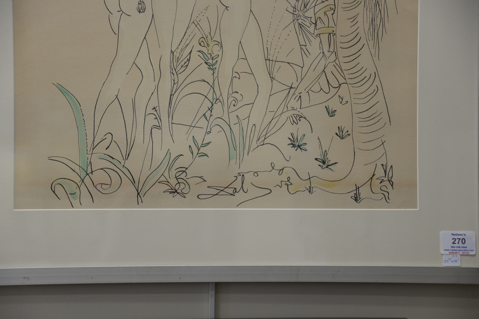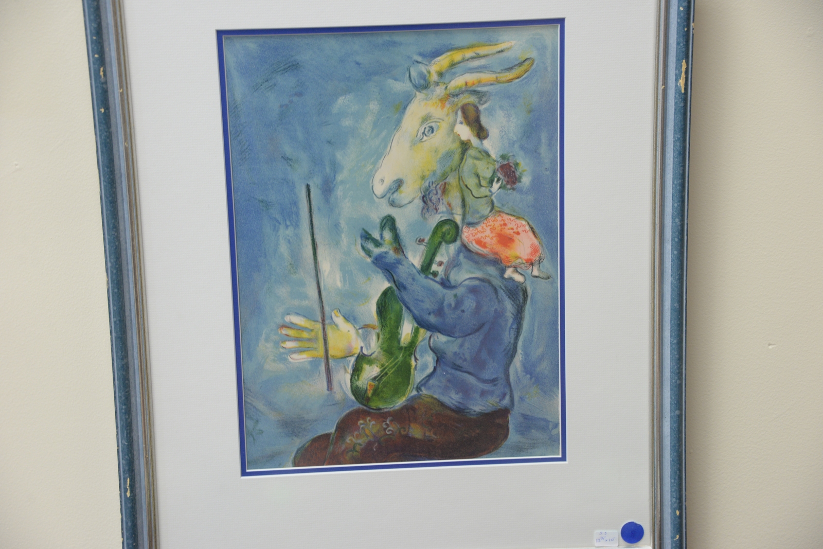 Lot 270: Two framed lithographs including a Marc Chagall violin with goat head sight size 14 x 10 and a Salvador Dali Three Graces sign…