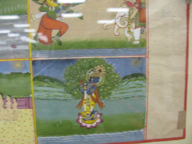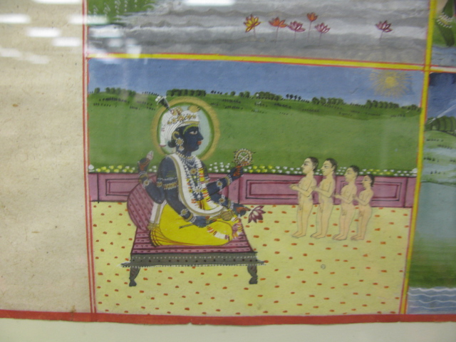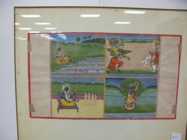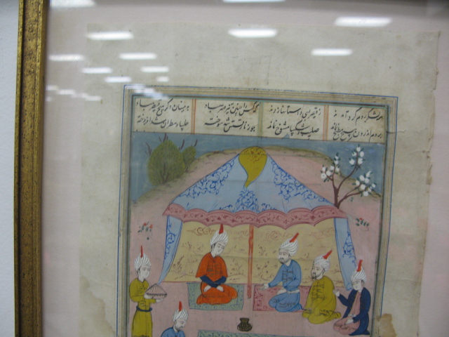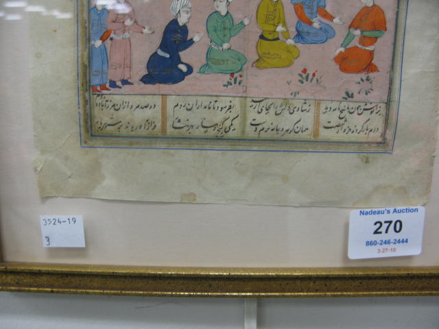 Two illuminated manuscripts, tent scene with gilt decoration Indian manuscript page, polychrome on woven paper.