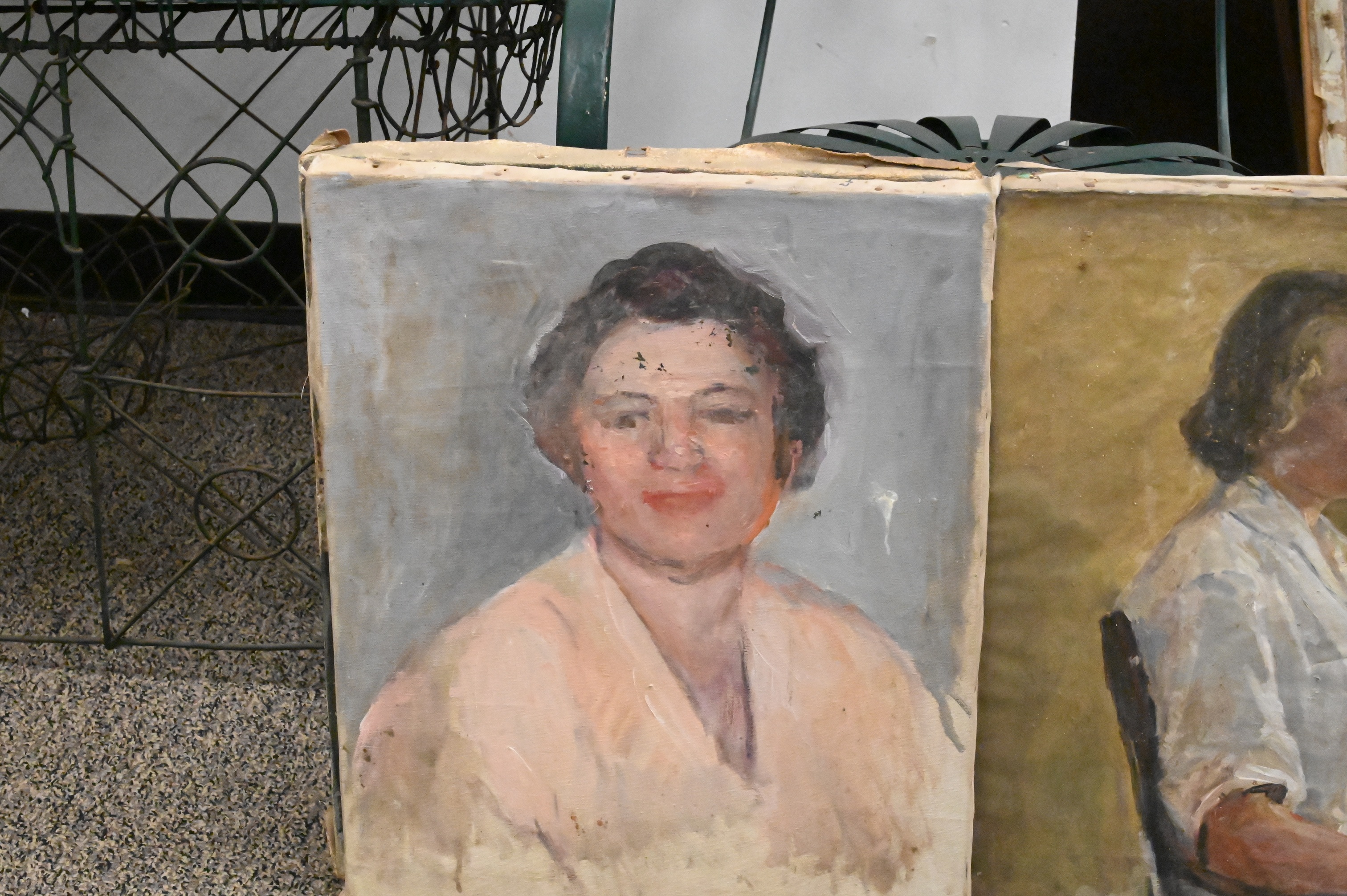 to include portrait of an older man with a pipe, larger portrait of a gentleman, three studies of children, one woman in pink, on woman in blue along with a study of a seated lady