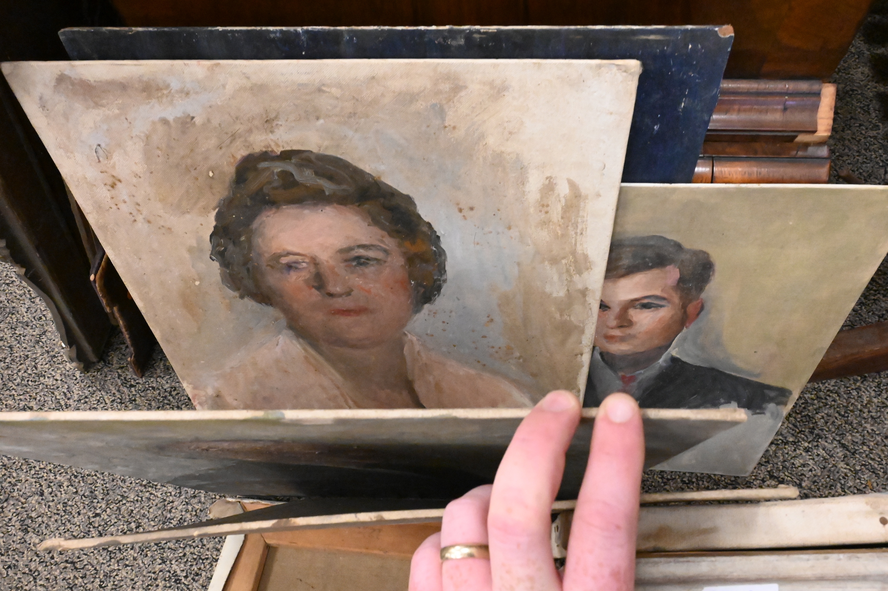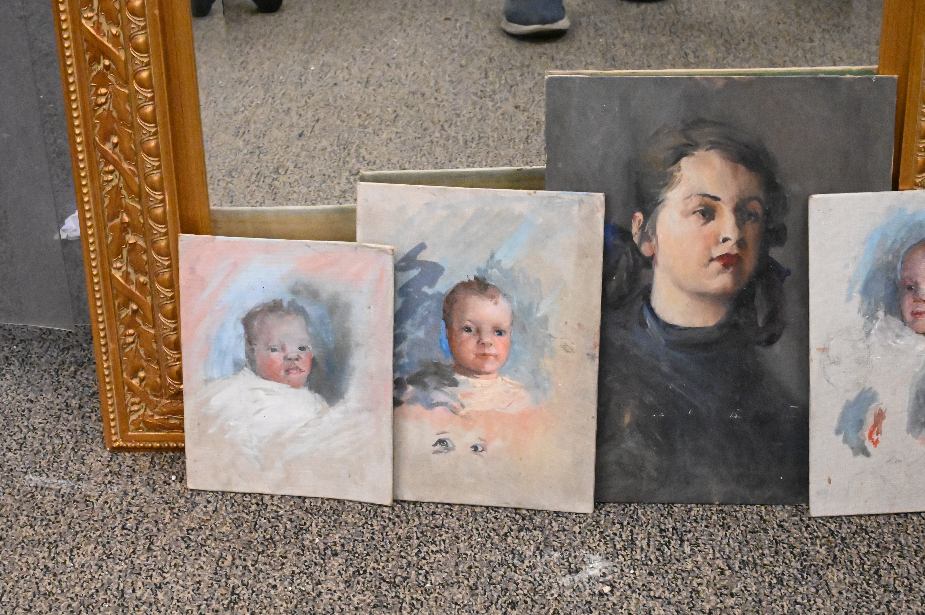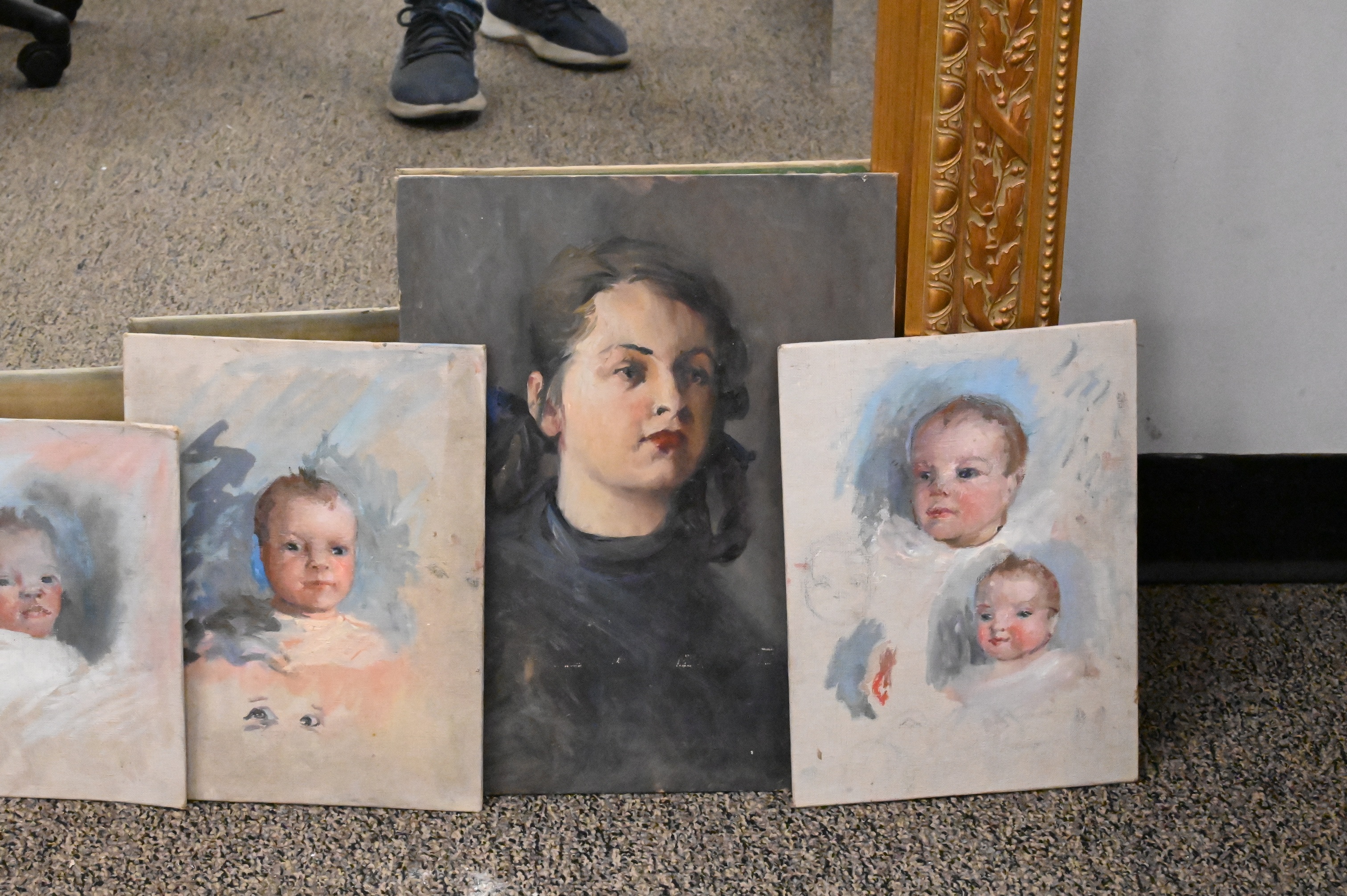 to include portraits of older women, a young boy in a suit, gentlemen in hats and suits, study of a woman reading in a rocking chair along with several studies of the artist’s daughter as a baby and young child
