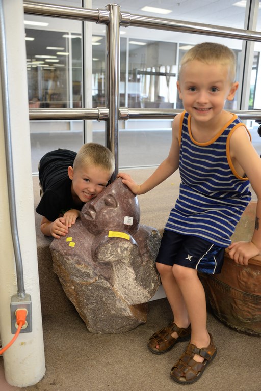 Carved granite sculpture, partial bust of a boy. ht. 23 in.