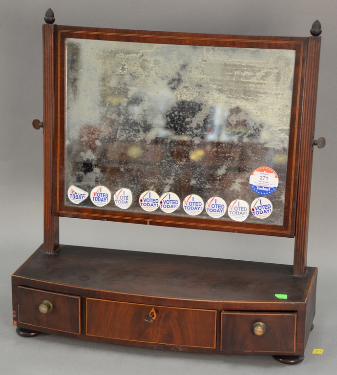 Federal mahogany inlaid vanity mirror with three drawers. ht. 22in., wd. 20 1/2in.