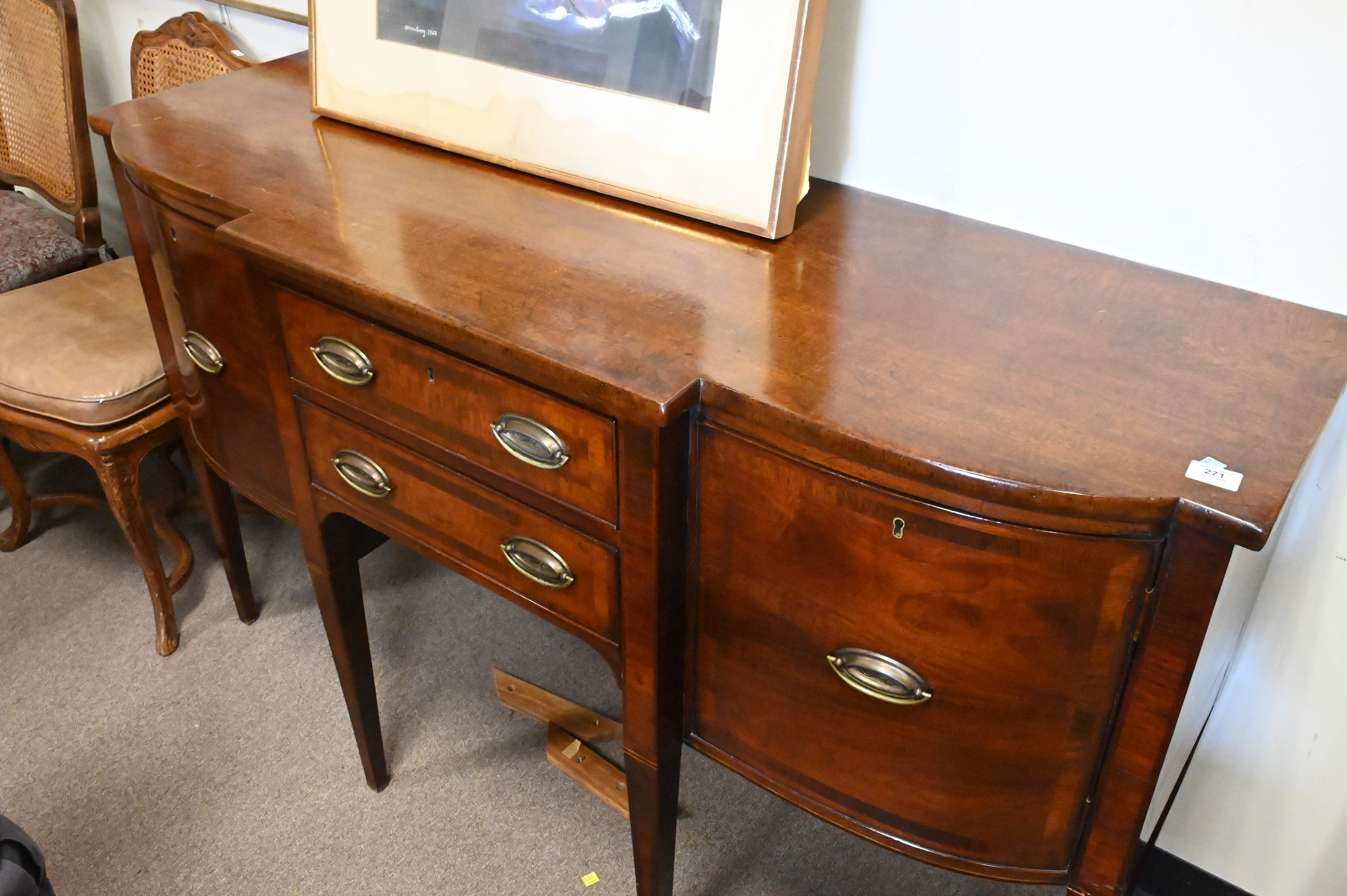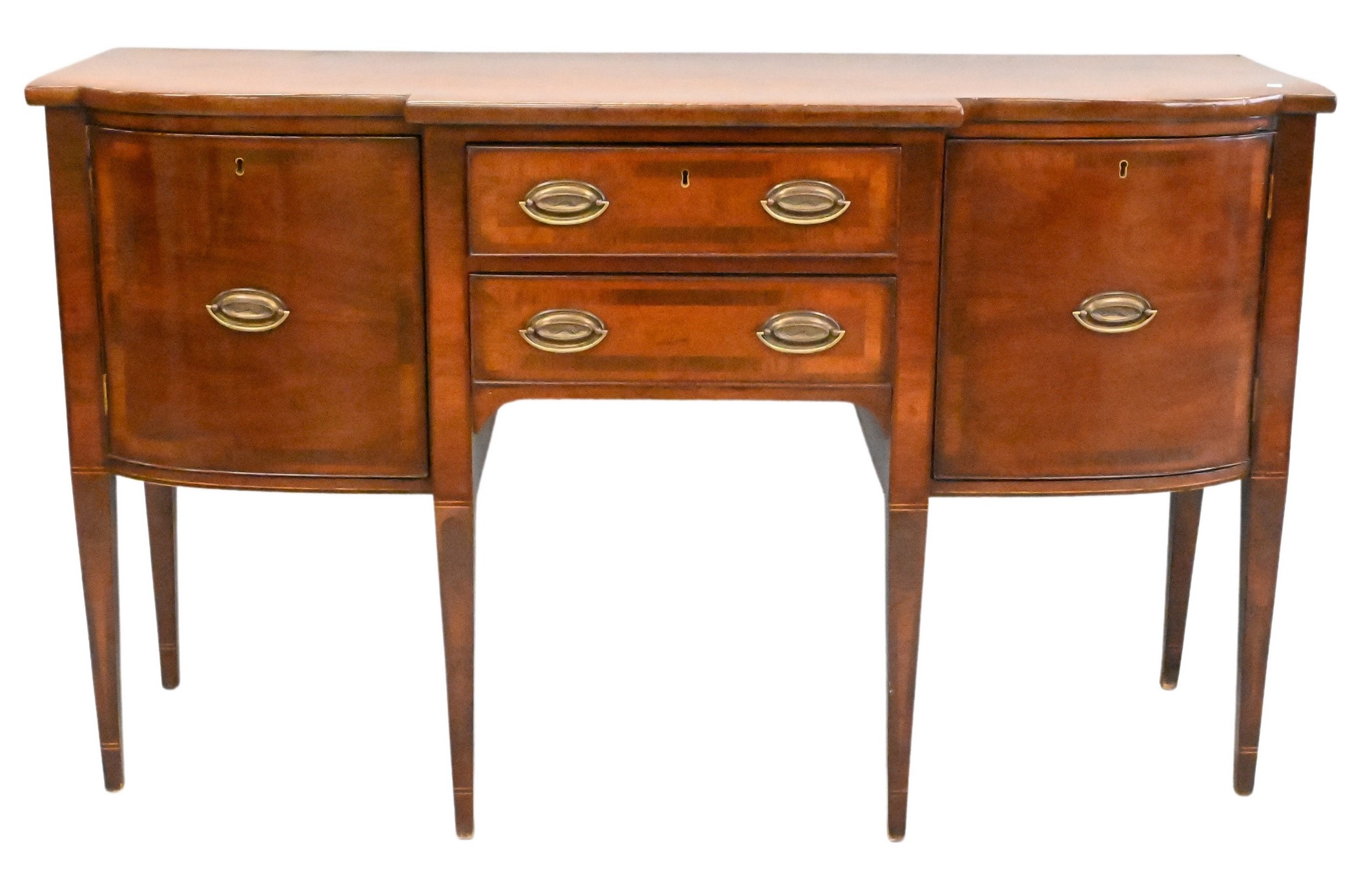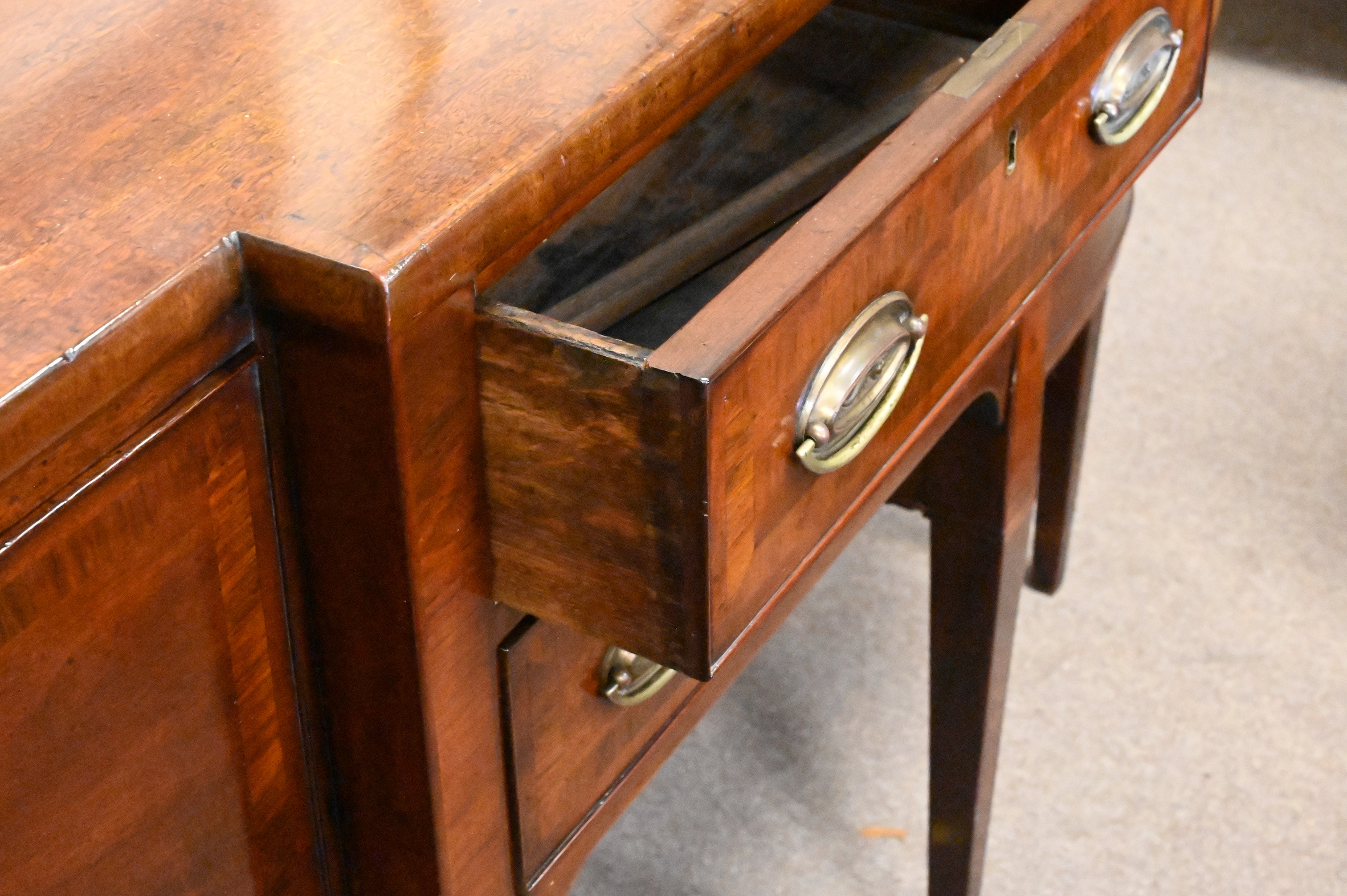 George IV Mahogany Diminutive Sideboard, circa 1800, having two doors and two drawers, height 36 inches, top 21″ x 60″