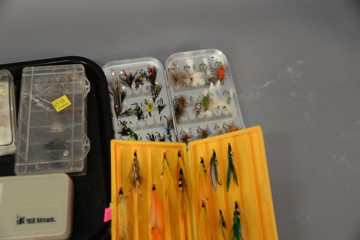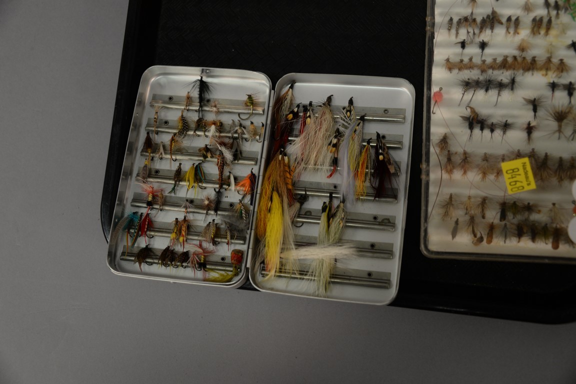 Lot 271: Group of flies and streamers in eleven boxes and trout, salmon, and saltwater flies. Provenance: Estate of Arthur C. Pinto, MD