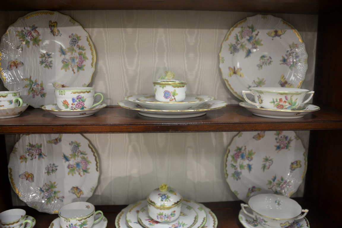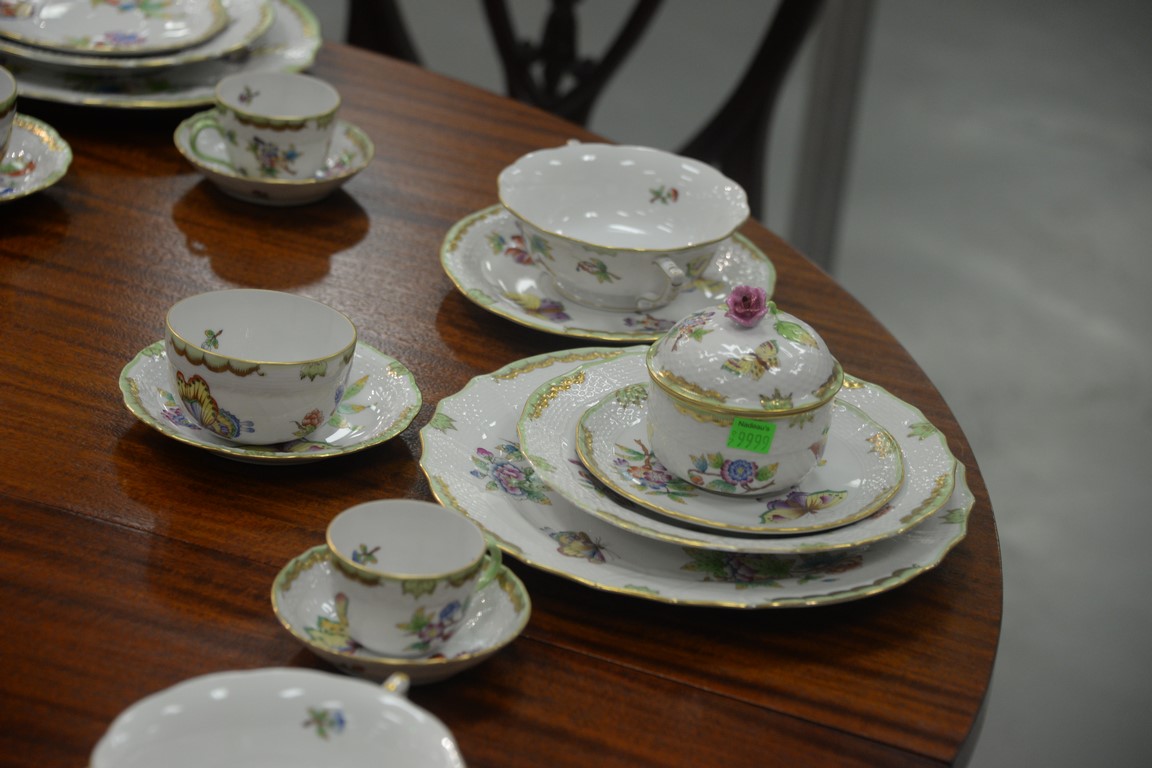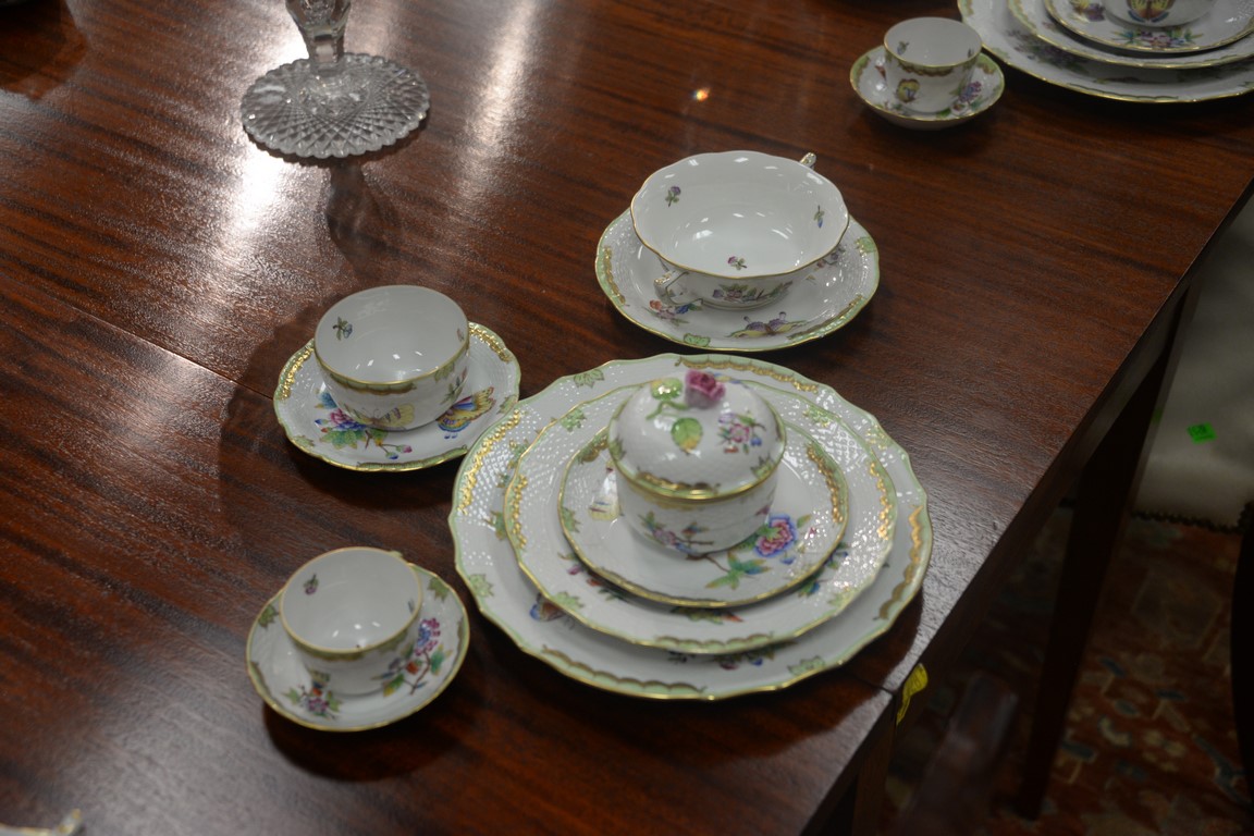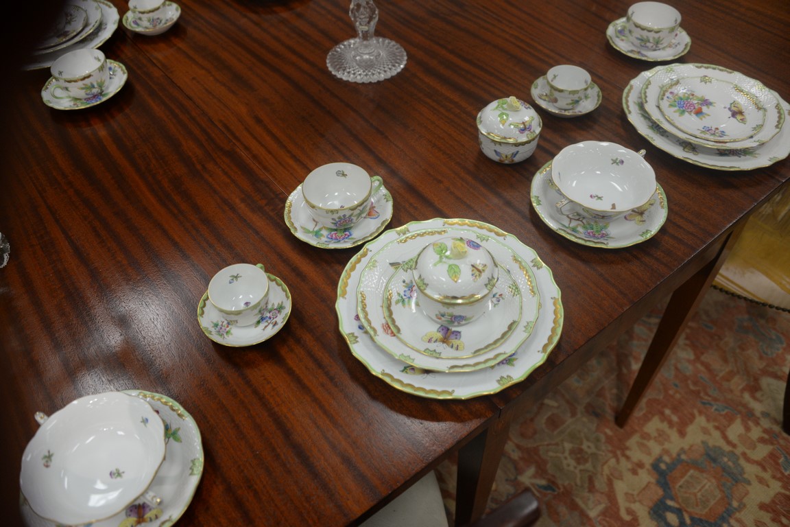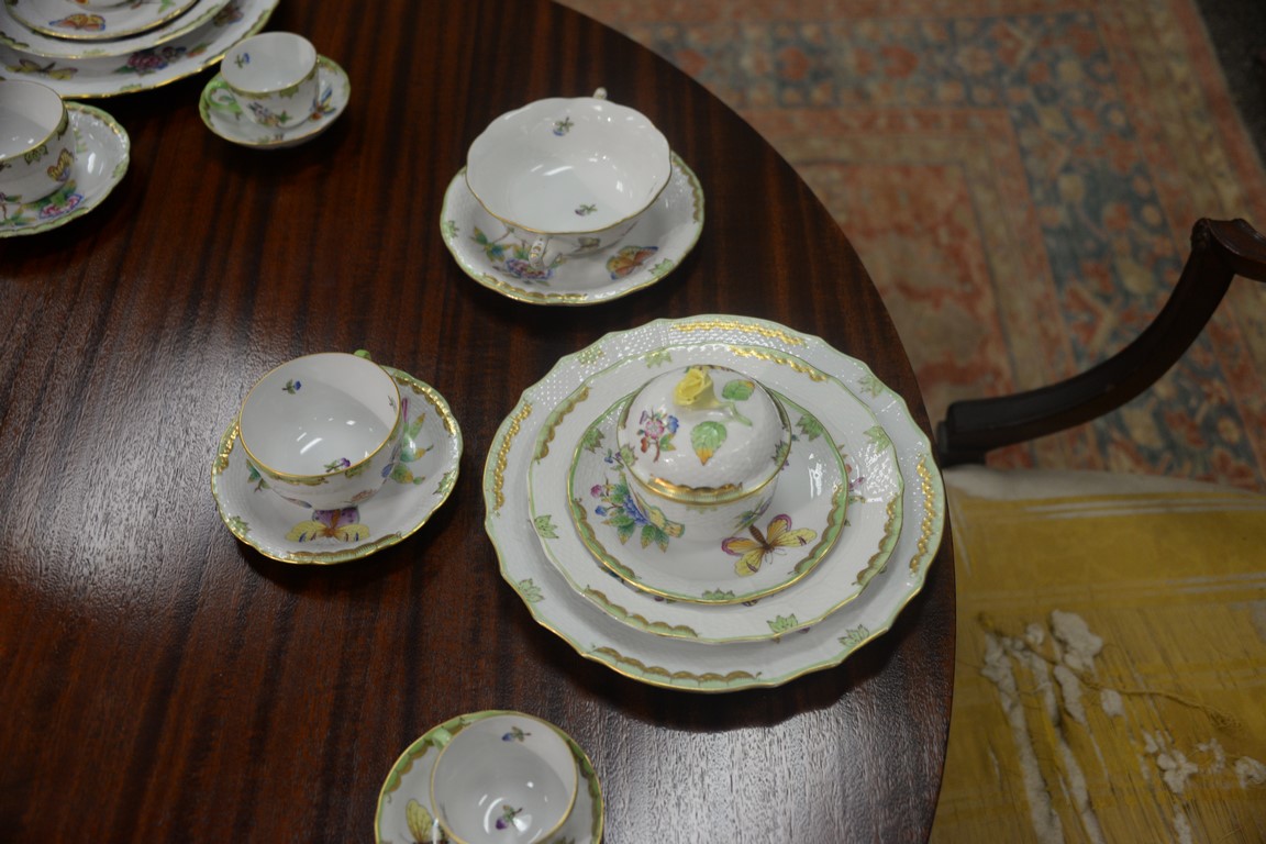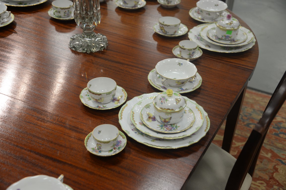 Lot 271: Herend Queen Victoria dinnerware set, 160 total pieces including 28 plates, 20 luncheon plates, 14 bouillon cups and saucers, 14 cof…