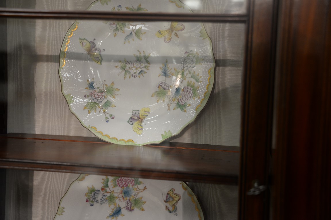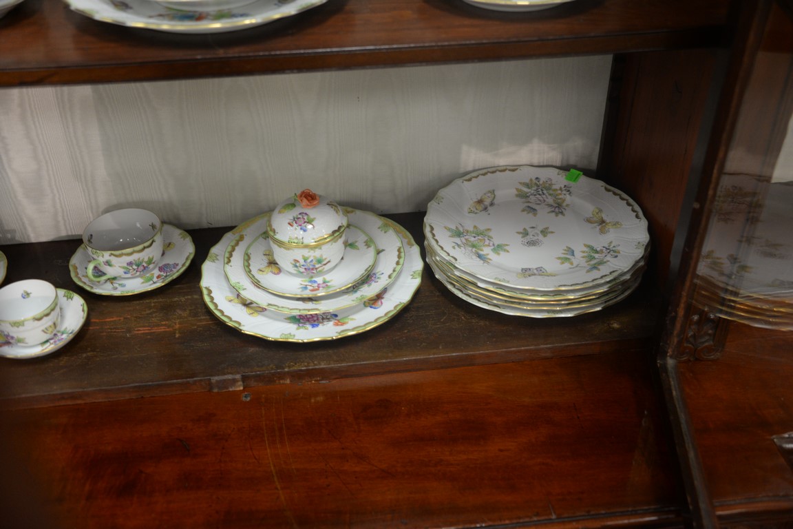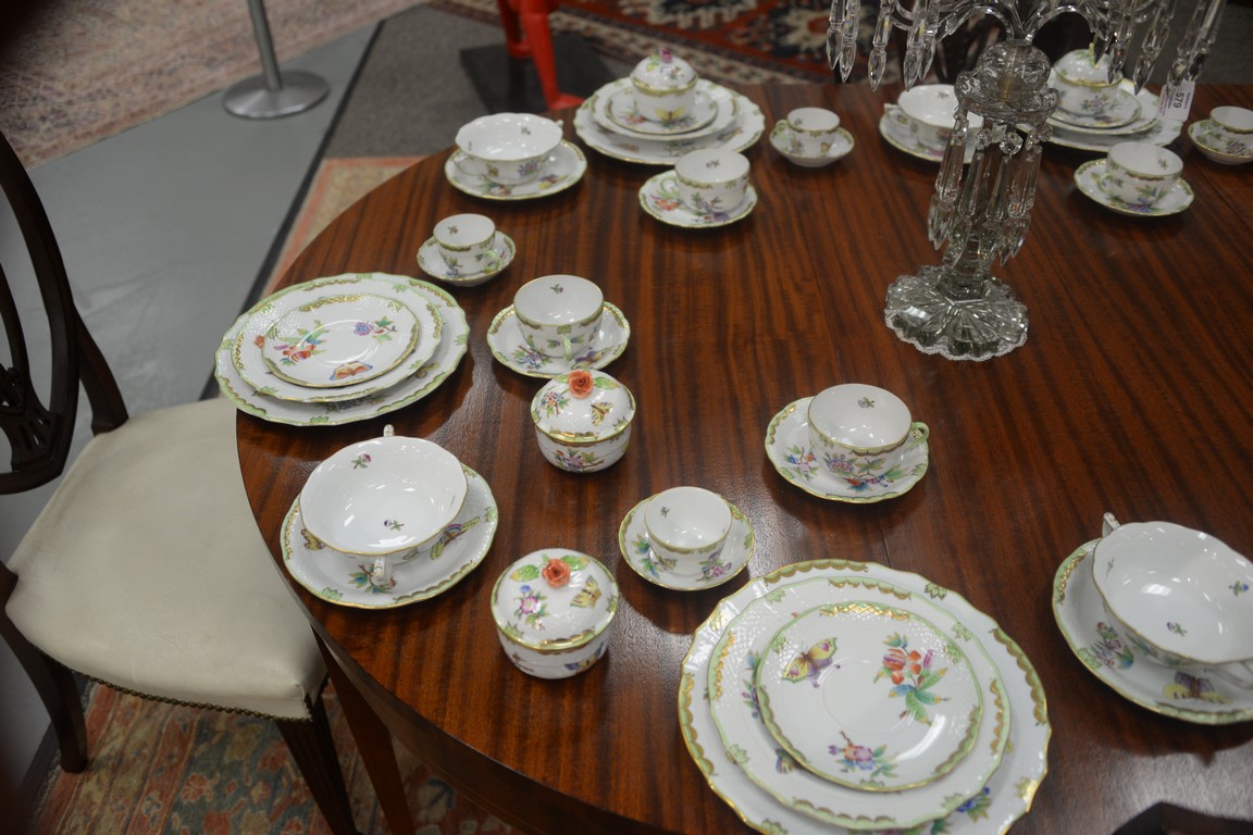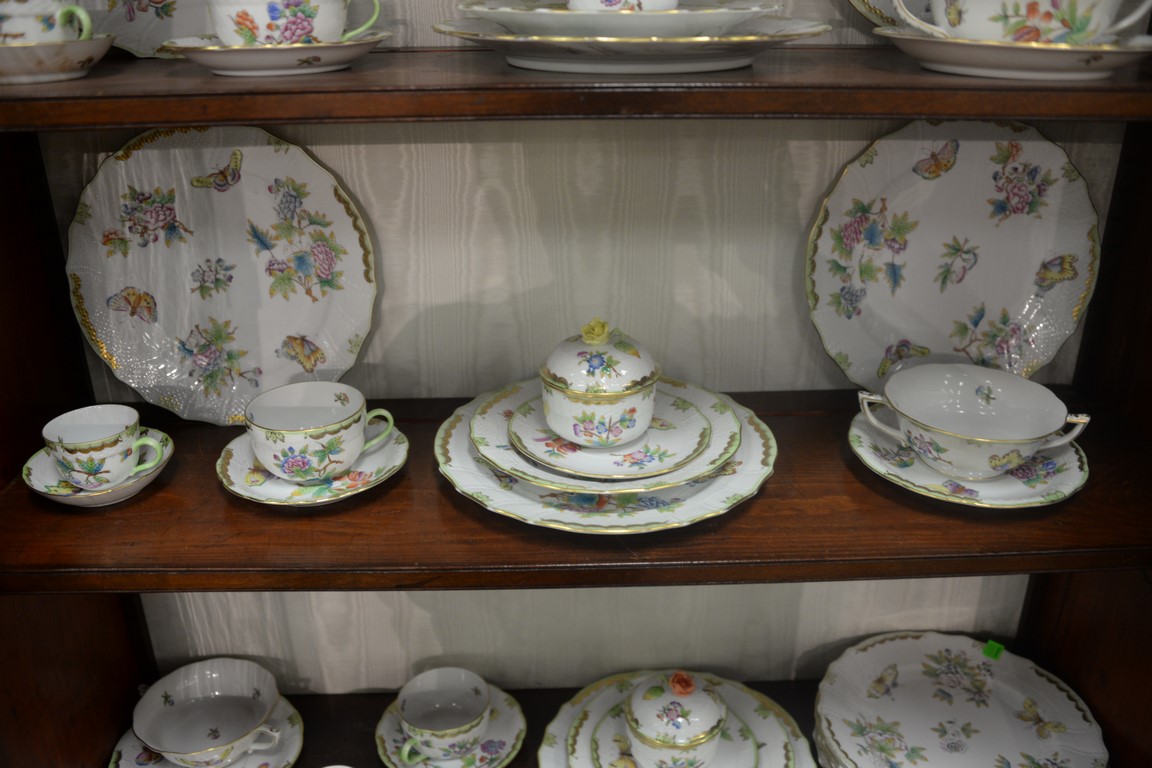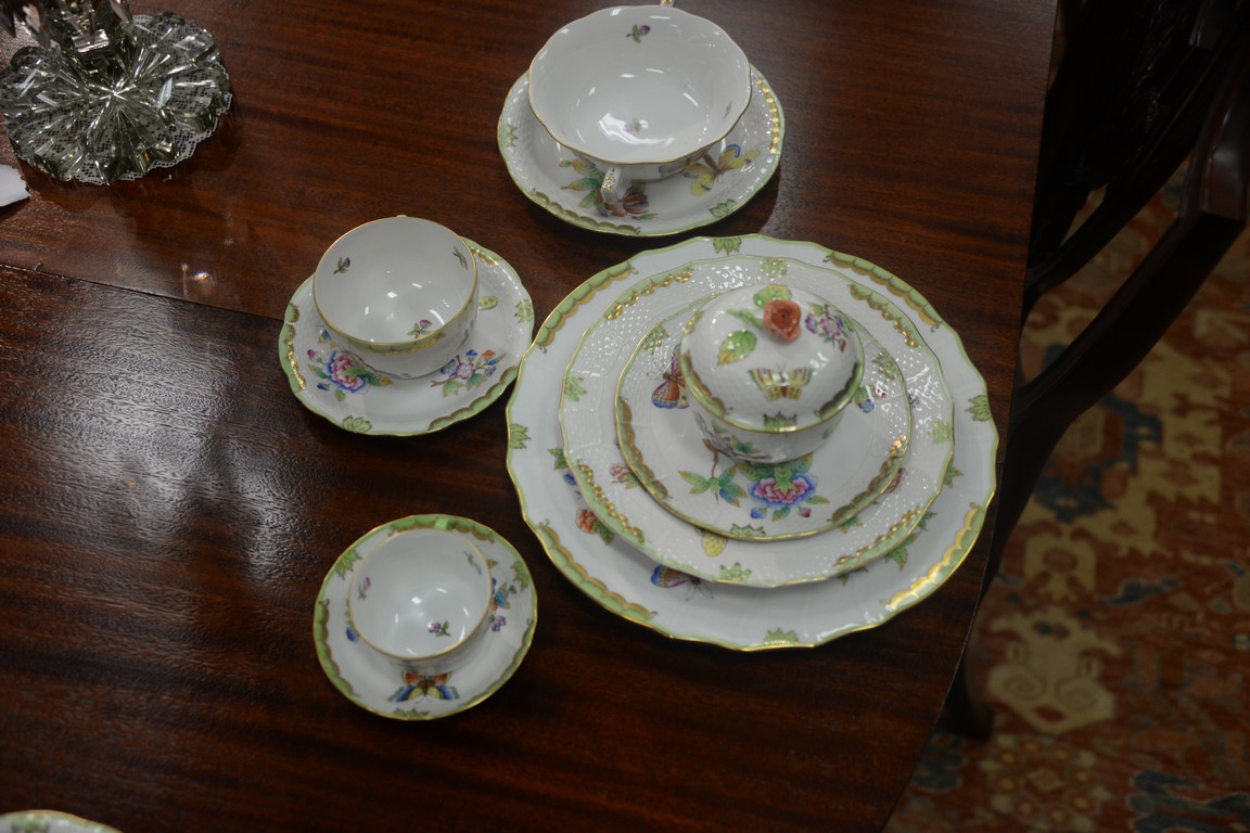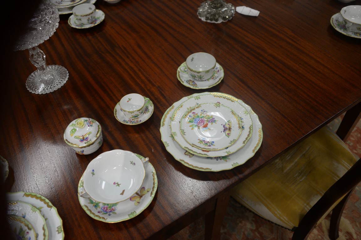 Lot 271: Herend Queen Victoria dinnerware set, 160 total pieces including 28 plates, 20 luncheon plates, 14 bouillon cups and saucers, 14 cof…