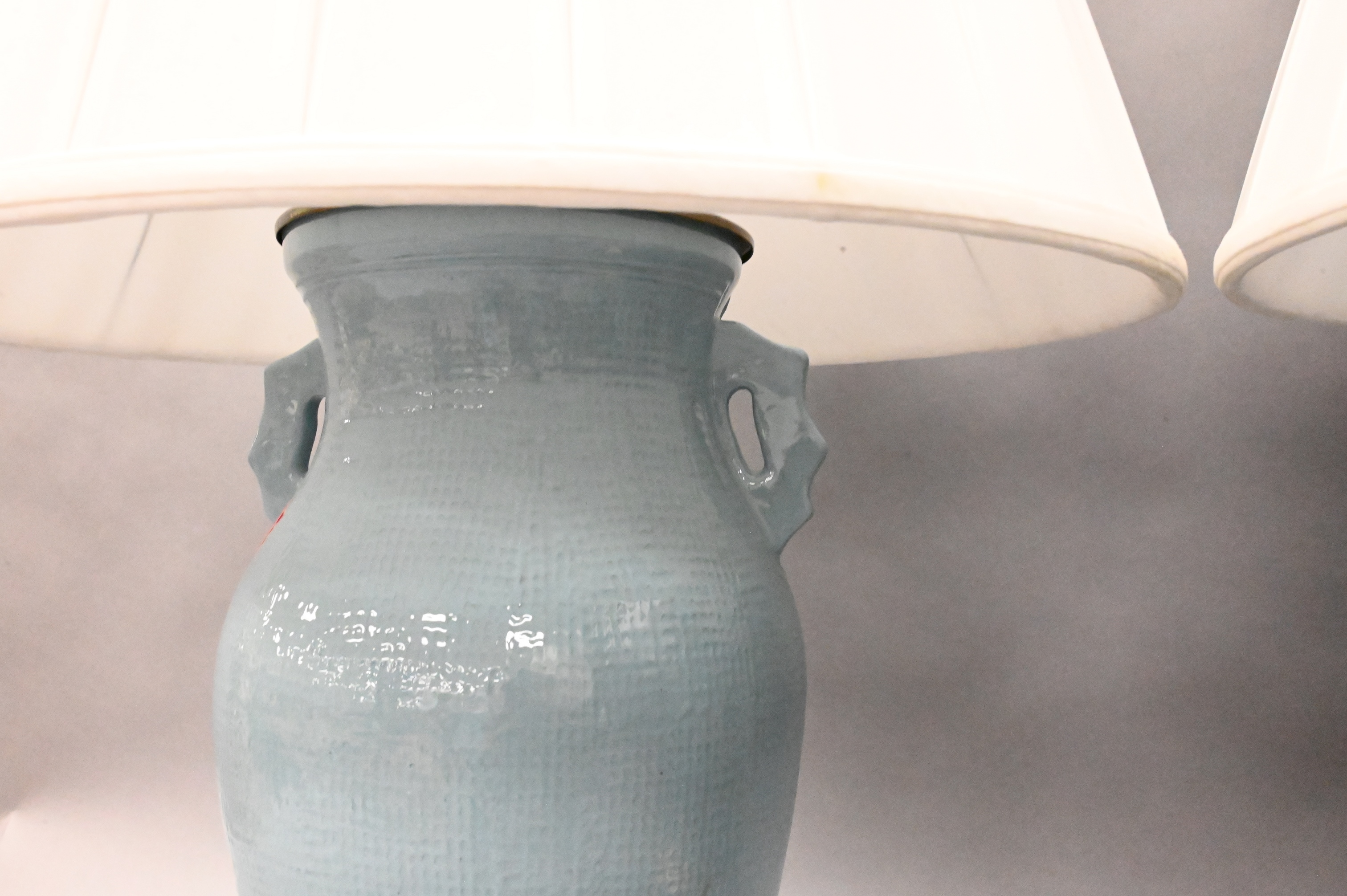 Lot 271: Pair of Contemporary Celadon Blue Glazed Table Lamps
