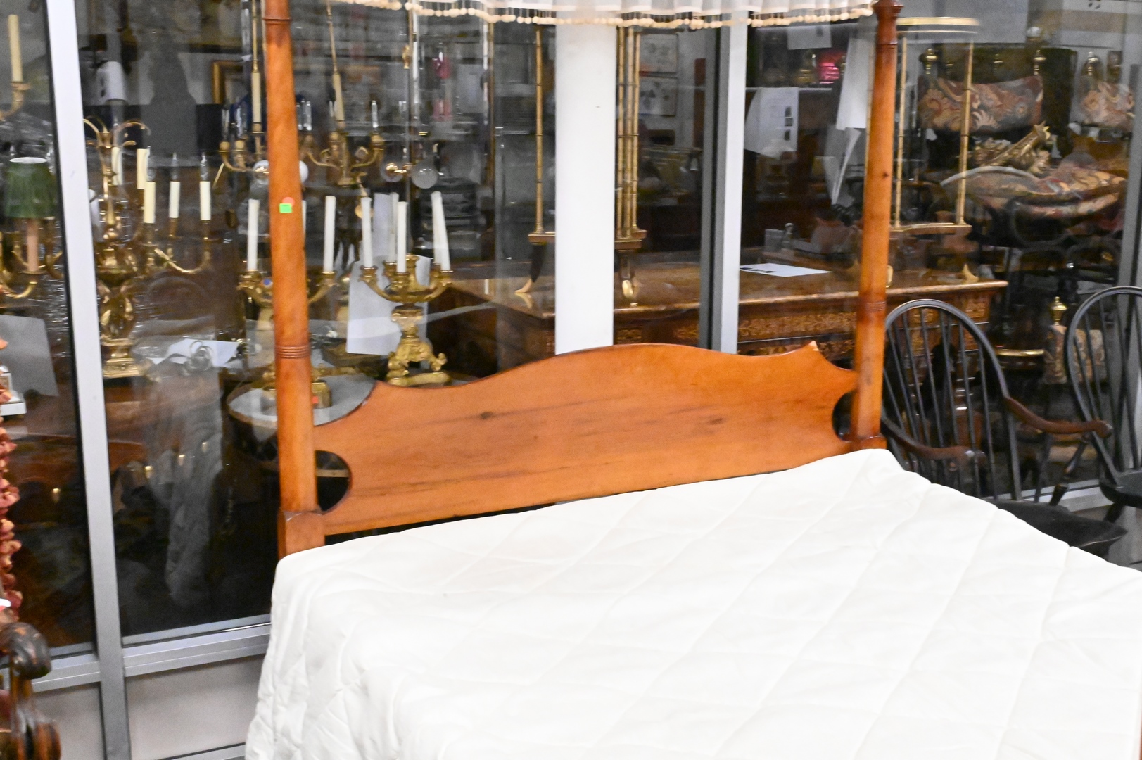 Sheraton Canopy Bed, double size, having fluted posts, along with arched canopy, American, circa 1830, height 94 inches. Provenance: Estate of Peter Tillou, Litchfield, Connecticut.