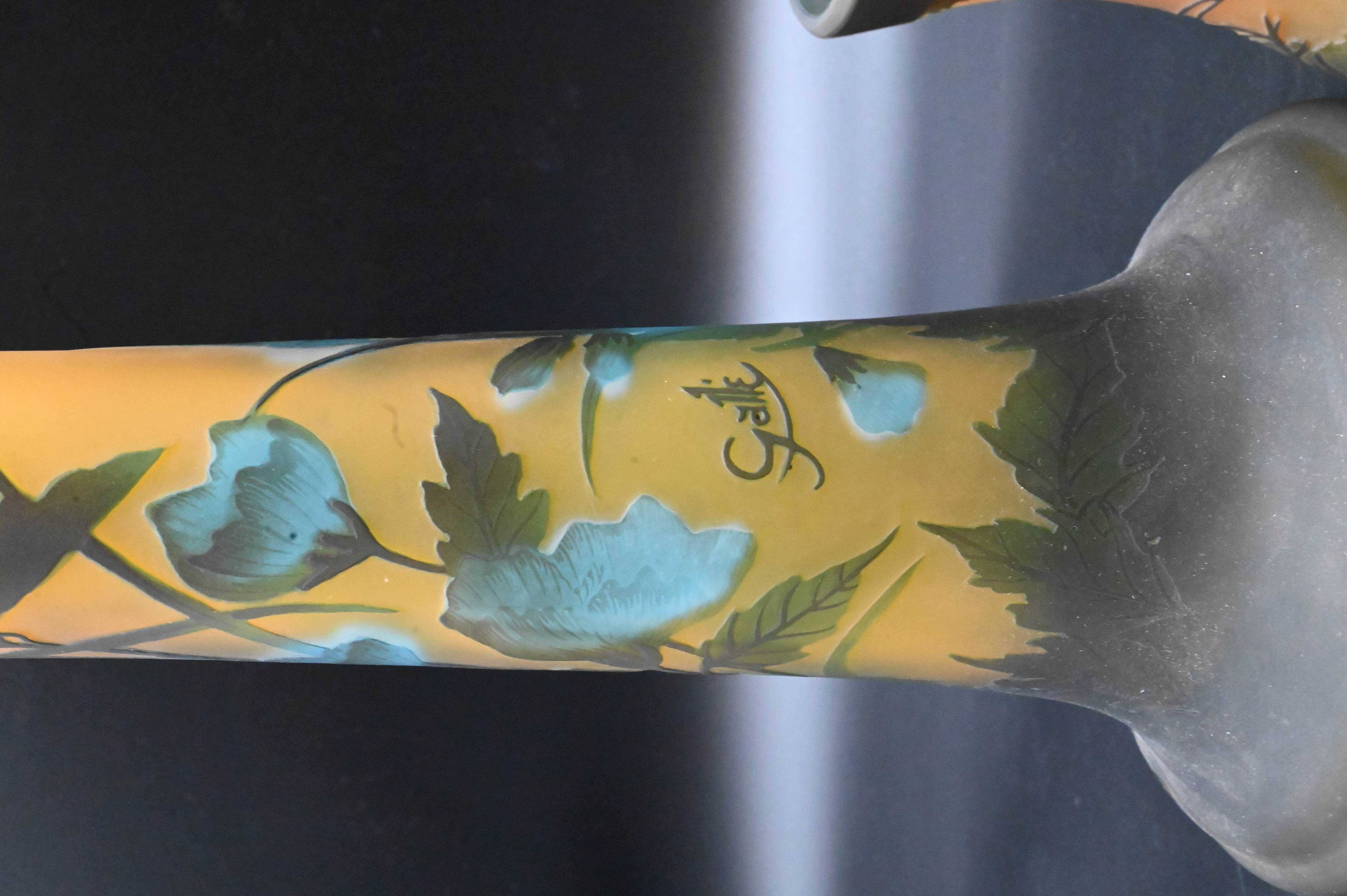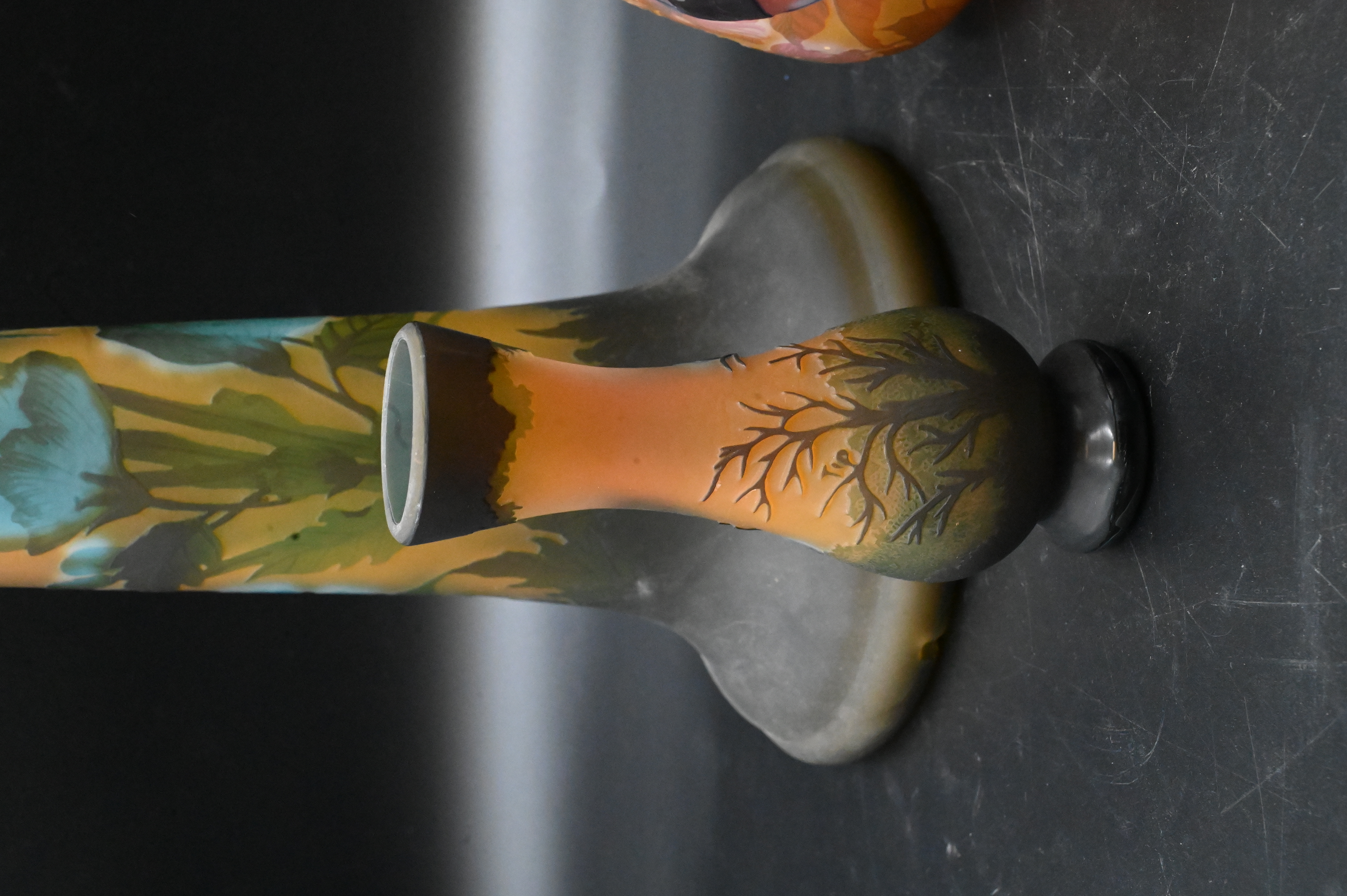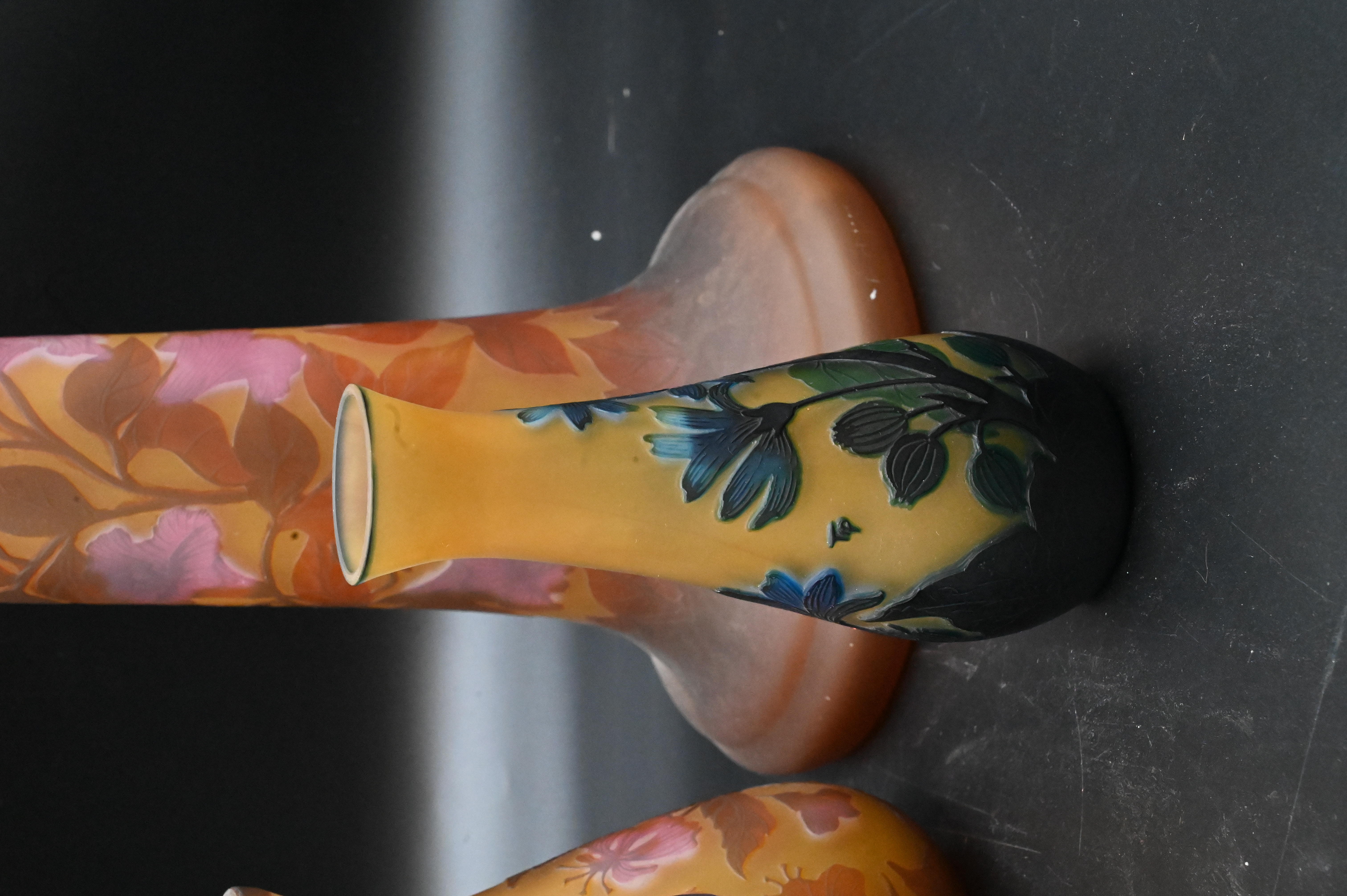 Six Galle Style Cameo Glass Vases, to include small vase, butterflies and flowers, tallest 7 1/8 inches. Provenance: Estate of Peter Tillou, Litchfield, Connecticut.
