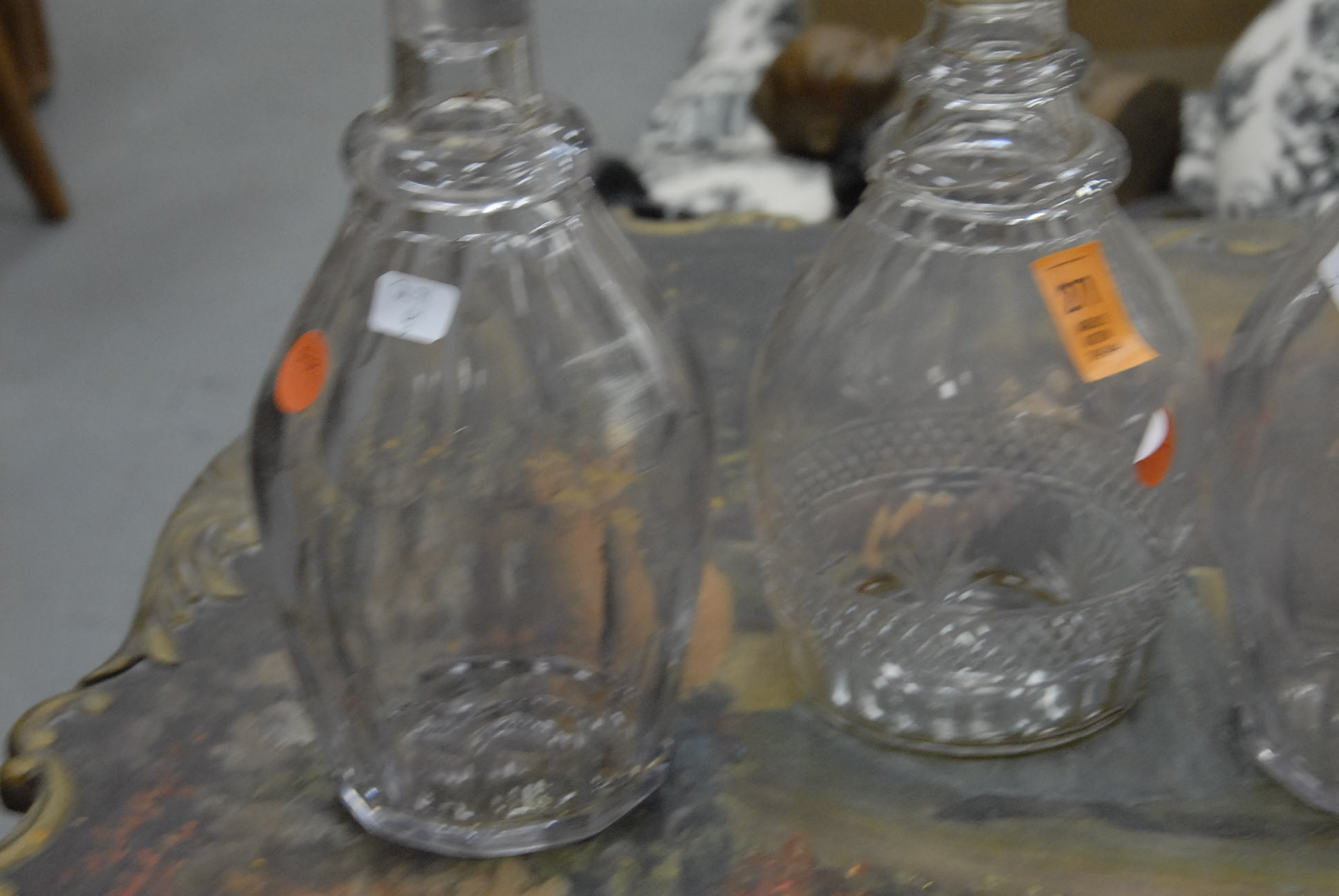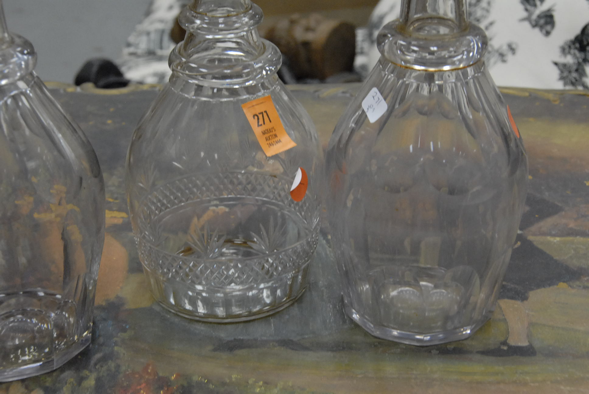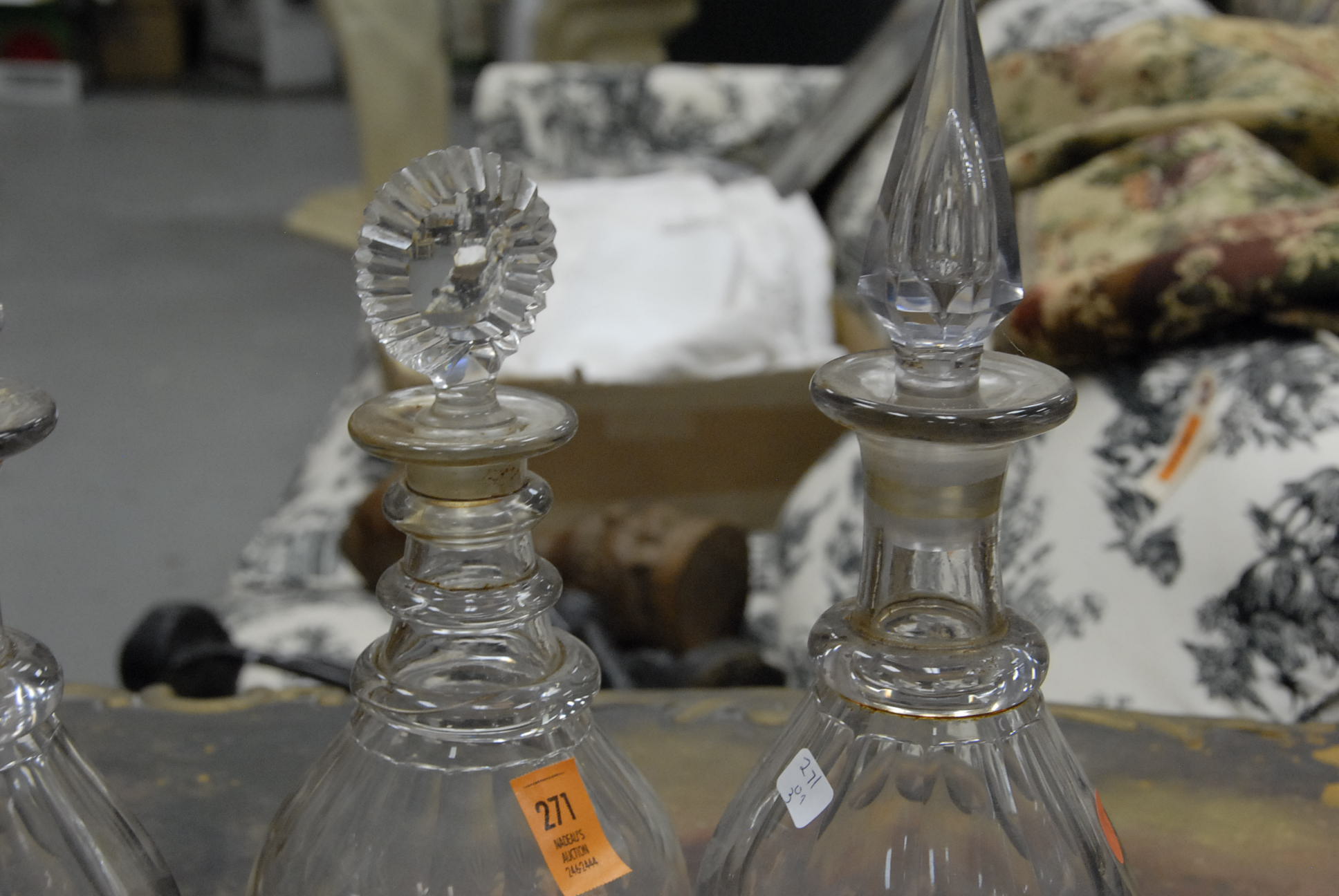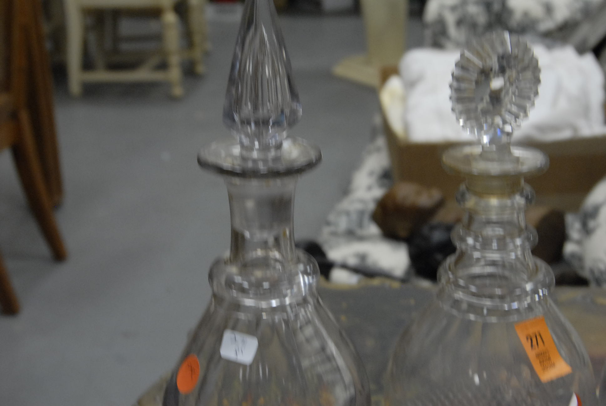 Three early crystal decanters with stoppers