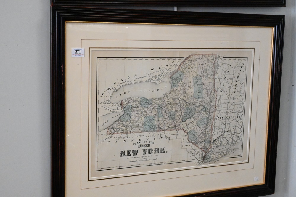 Lot 271: Three Hand Colored Engraved Double Page Maps of New York, one drawn by Lucas, engraved by Welch, to include “Plan of the State of New York”; “New York and Vicinity”; “Asher & Adam’s New York”; along with “Part of Ontario”. Provenance: Originally from Credit Suisse’s Americana Collection to present owner.