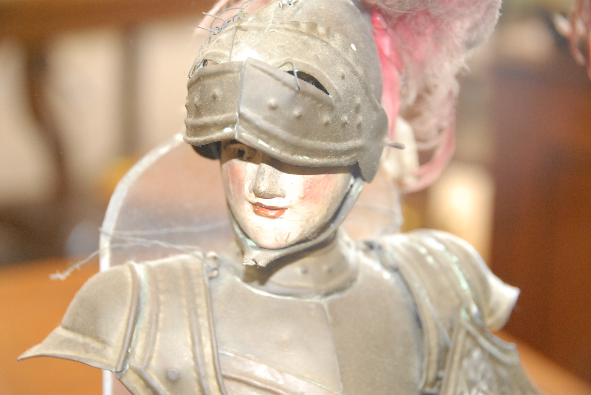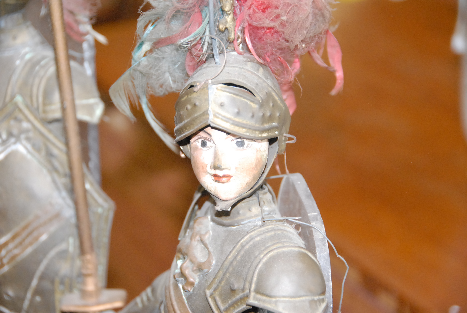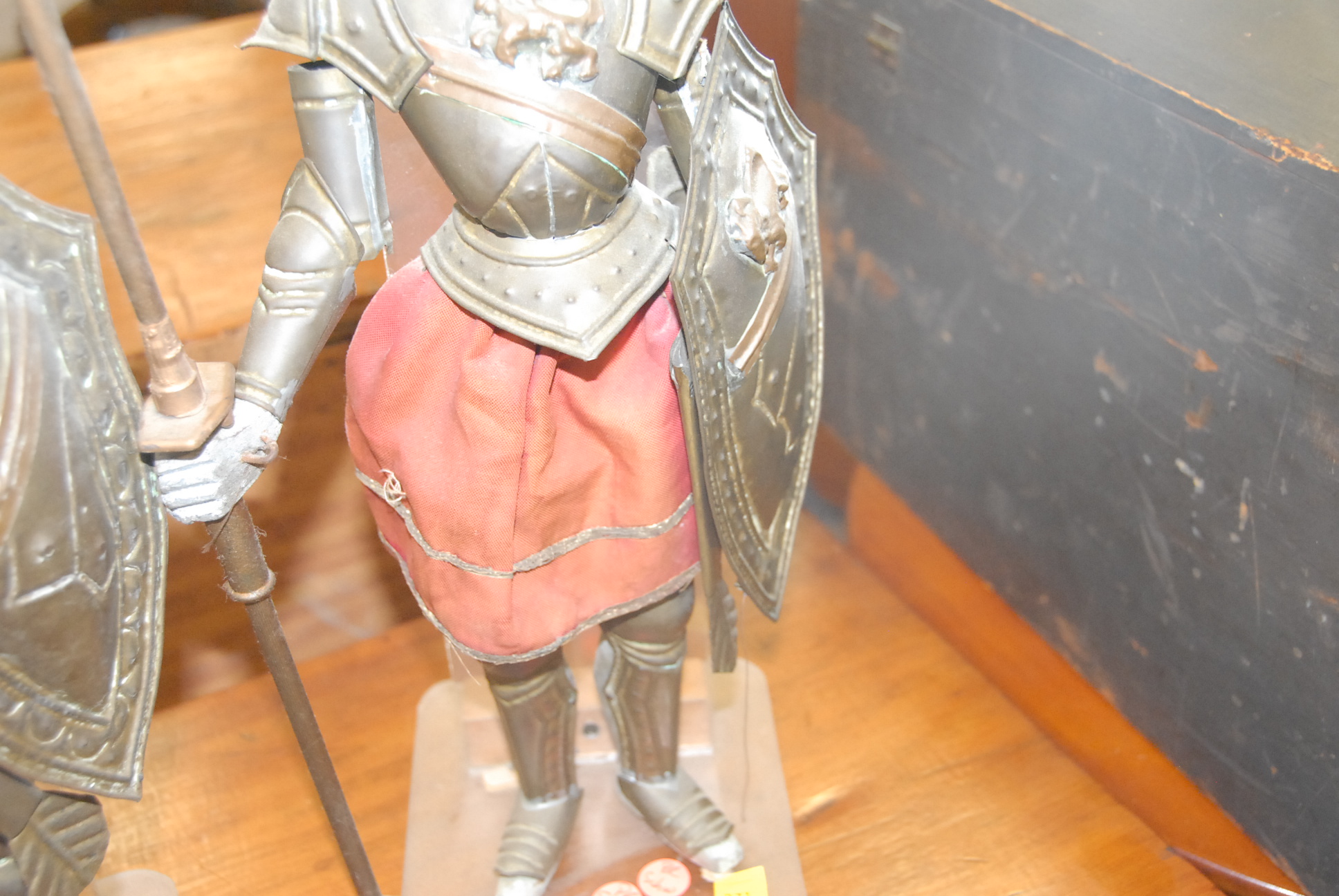 Two puppets of knights in armor.