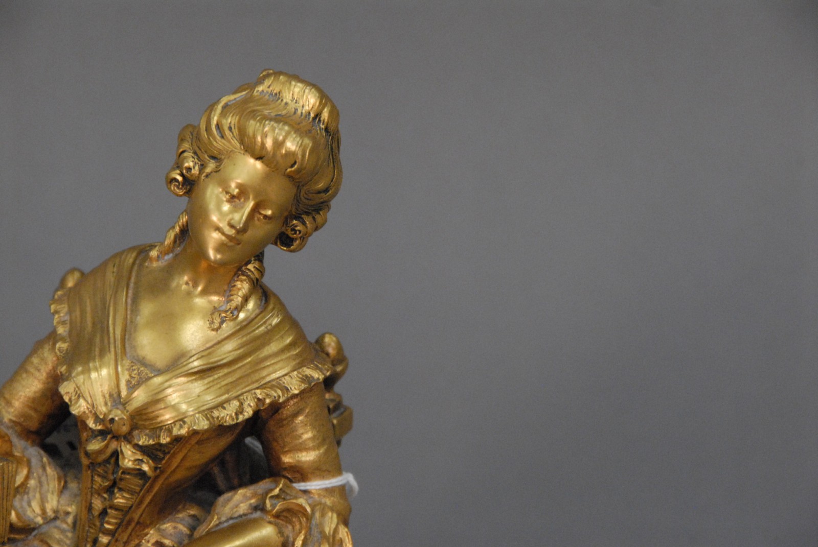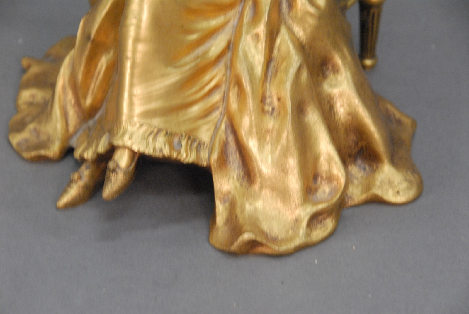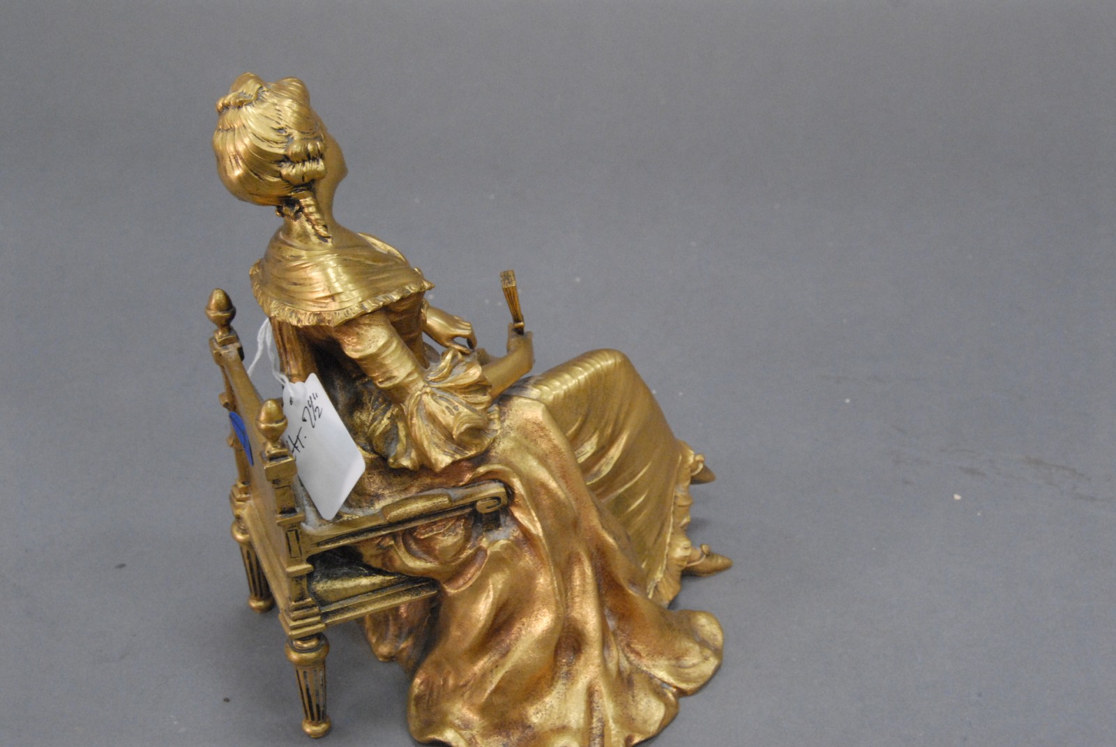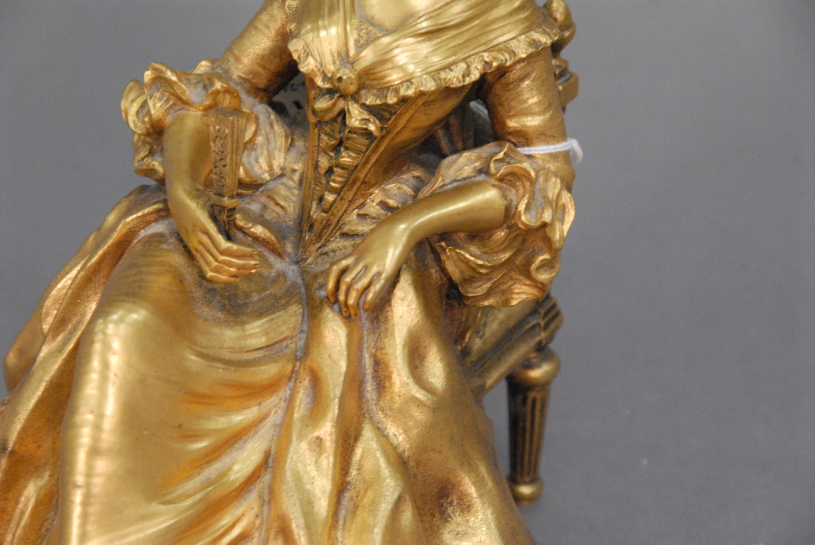 X. Raphanel SEATED WOMAN IN FLOWING DRESS AND FAN gilt bronze sculpture signed X Raphanel.