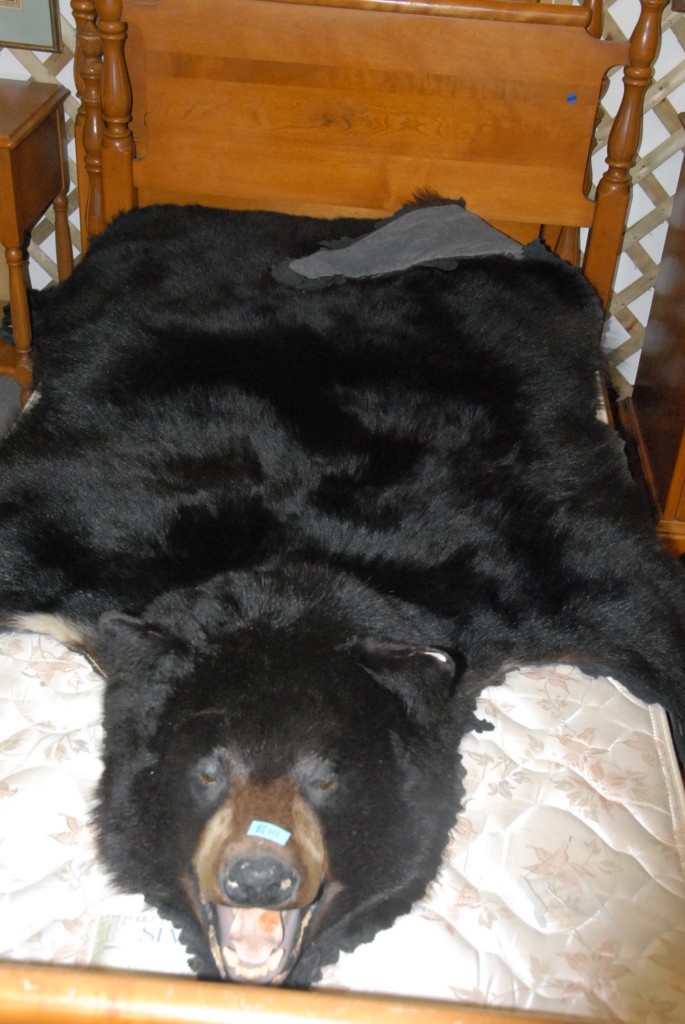 Black bear rug with head, Winnipeg Fur Limited, Winnipeg, Canada, 6′ x 6′.
