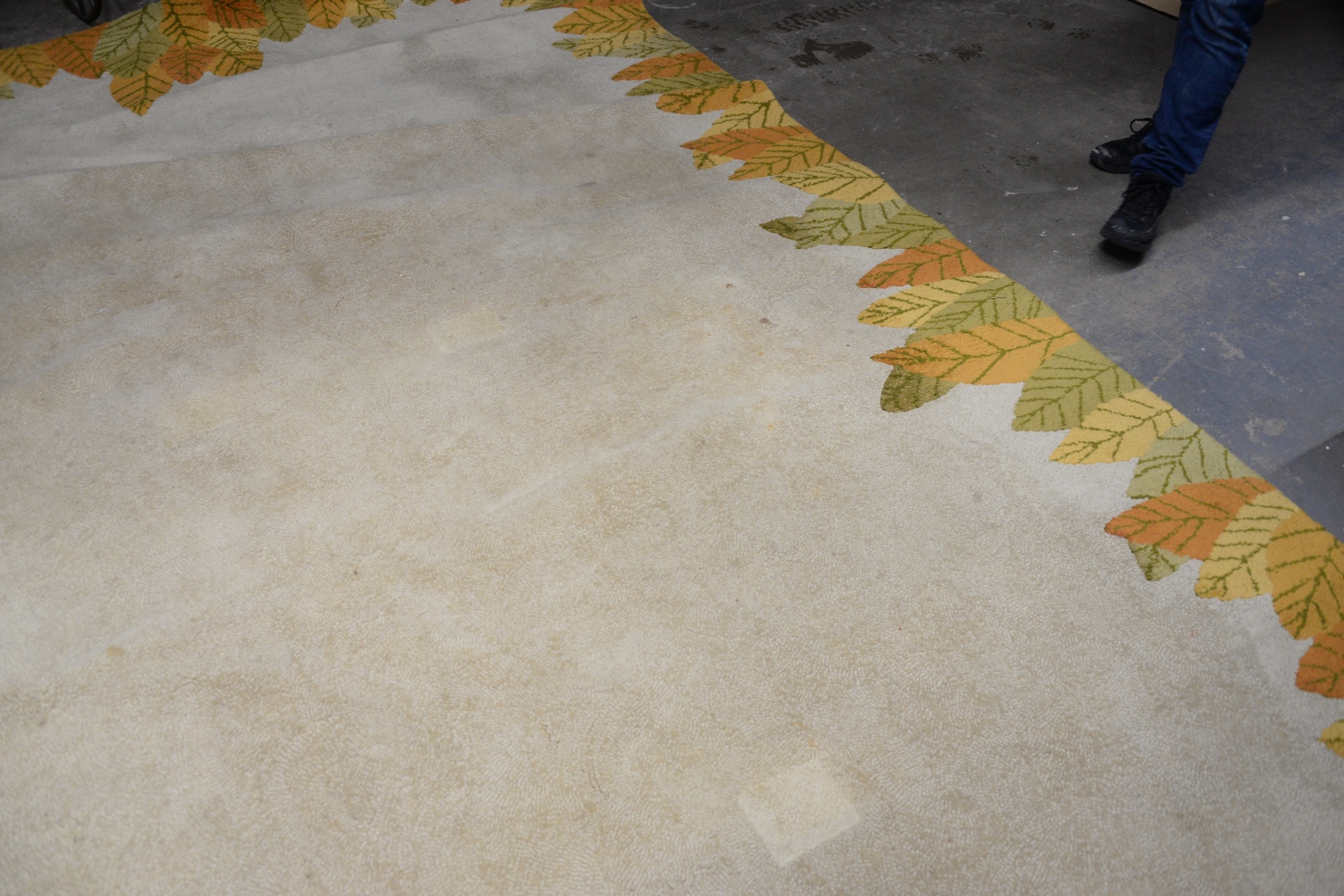 Custom Carpet by V’Soske, open field with leaf border, 9′ x 17′. Provenance: The Estate of Alina Roisen, Park Avenue, New York.