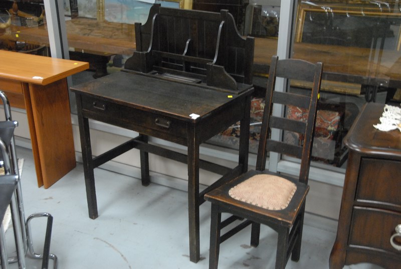 Mission oak writing table and chair Bench Made, lg. 30in. dp. 20in.