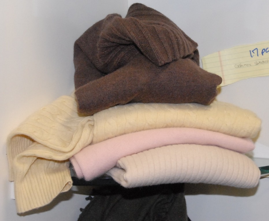 Seventeen pieces of cashmier sweaters medium and large sizes.