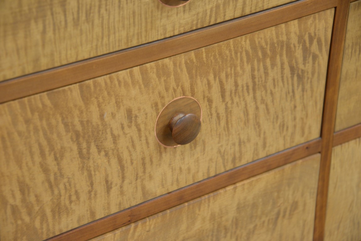 Stickley 21st Century cherry triple chest with figured maple drawer fronts in soft finish retail 5,600. ht. 32 in. wd. 66 in. dp. 20 in.