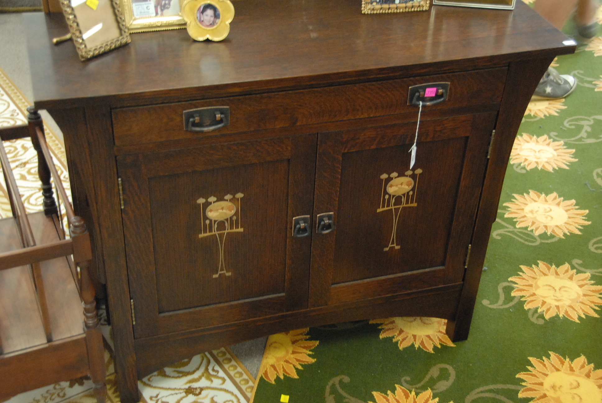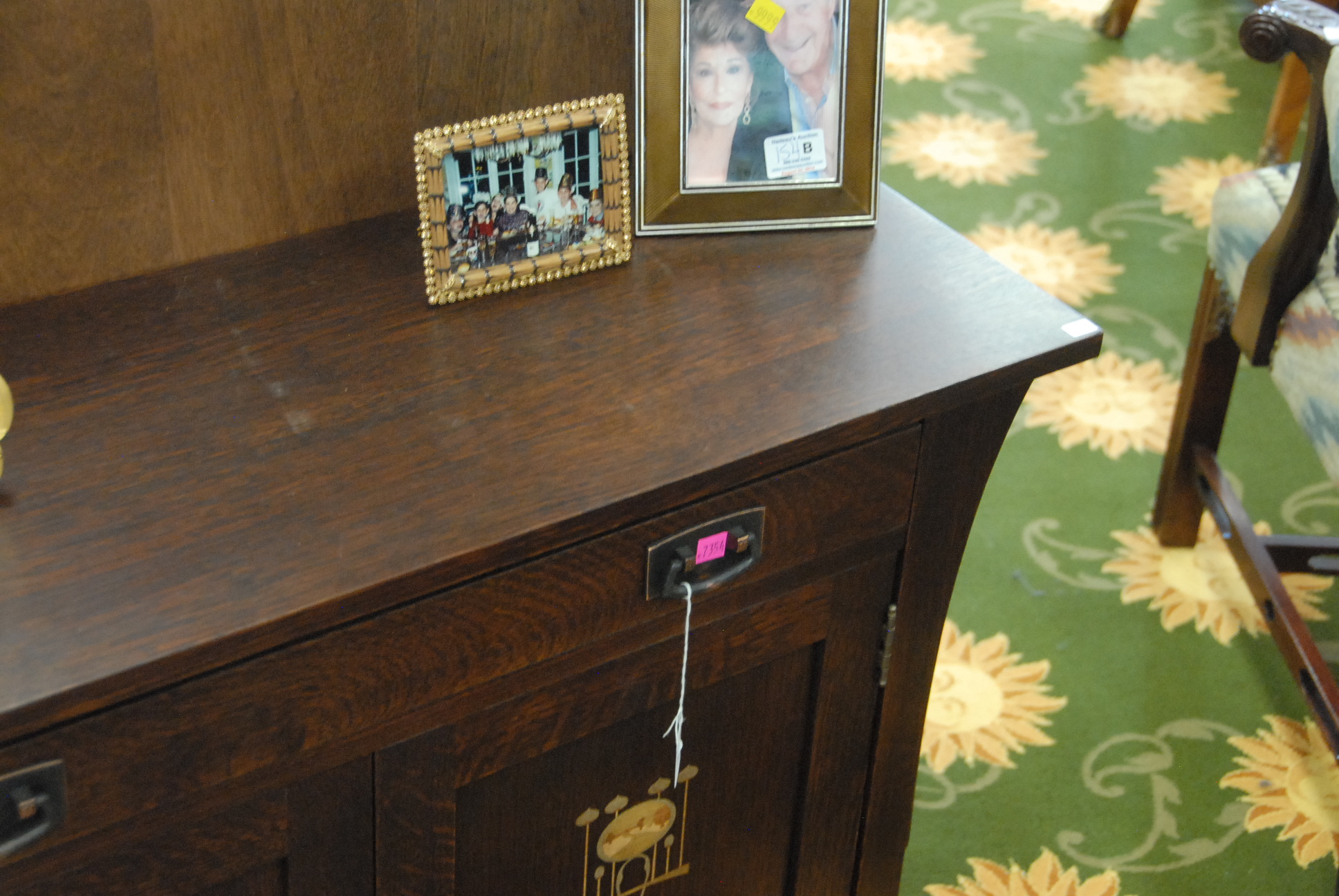 Lot 272: Stickley oak server, Harvey Ellis design, late 20th century, ht. 30 in. wd. 38 in. dp. 13 in.