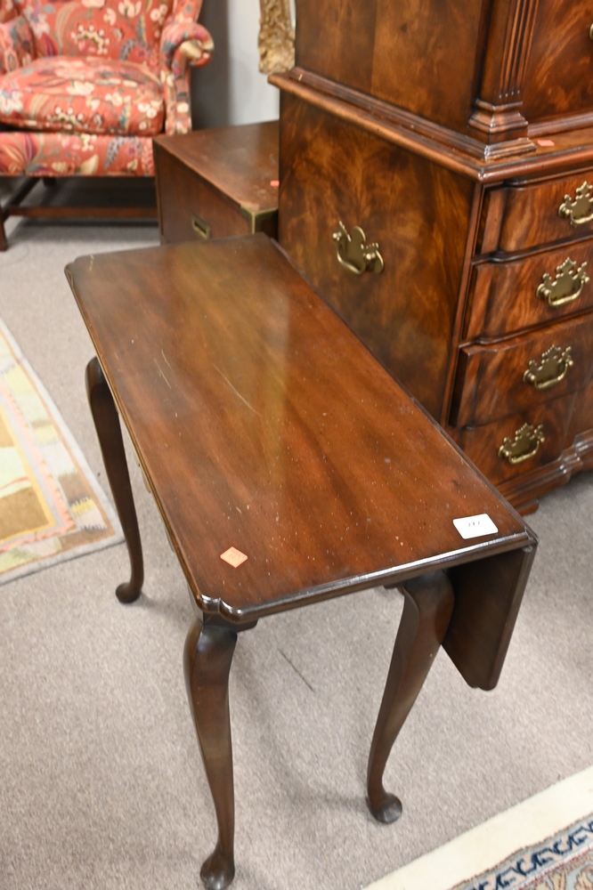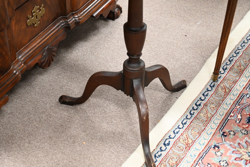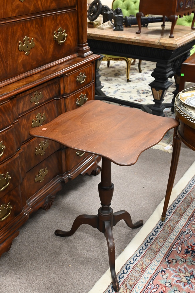 Lot 272: Two Kittinger Shaped Tables, to include a tip table, height 27 inches, top 19 1/2 x 19 1/2 inches; along with a single demilune Queen Anne style table. .