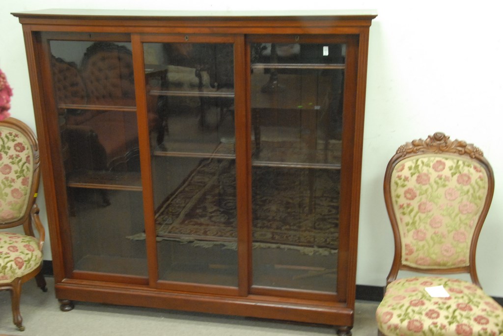 Victorian three door bookcase with three glass doors, ht. 57 in. wd. 60 in.