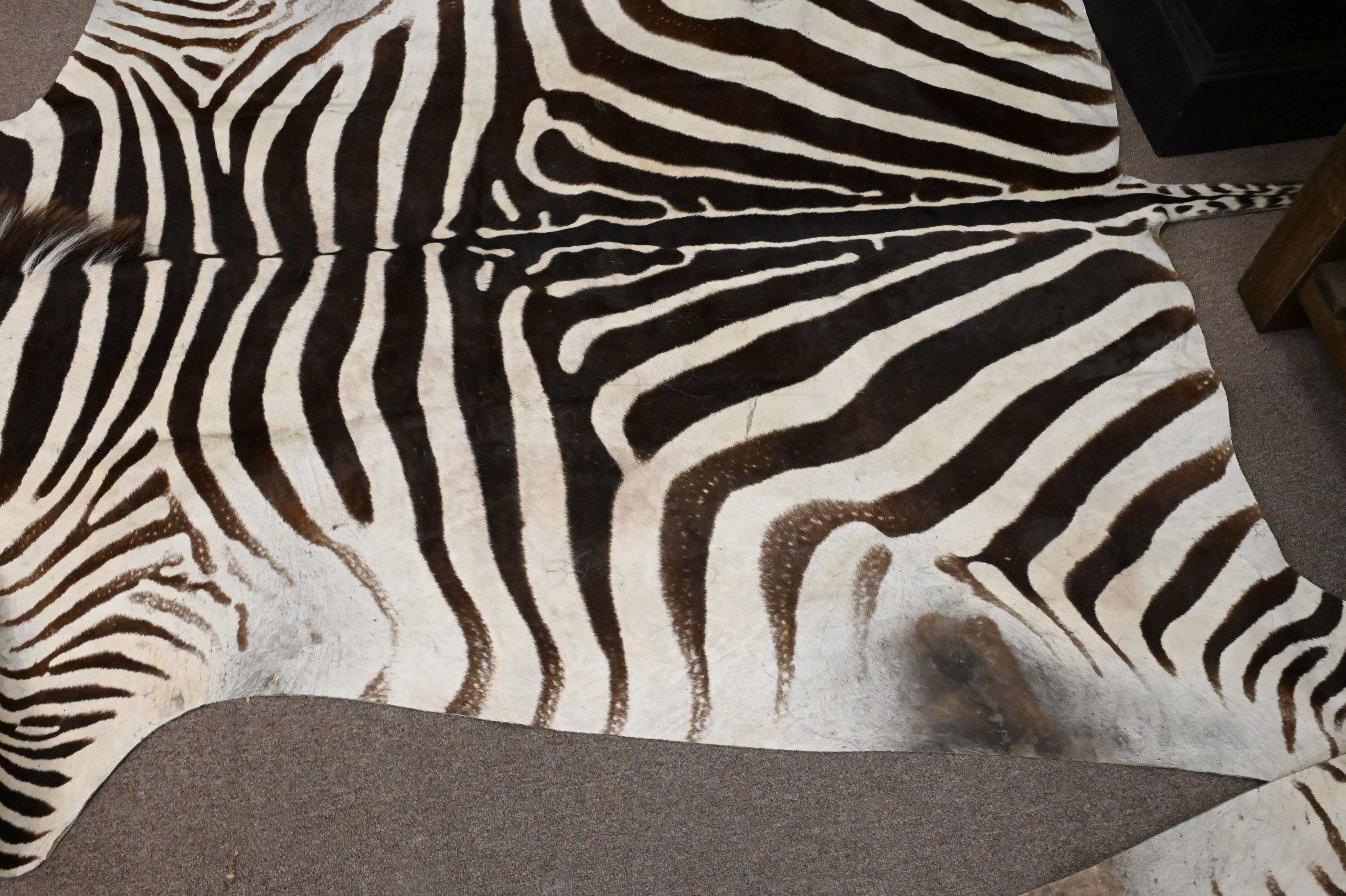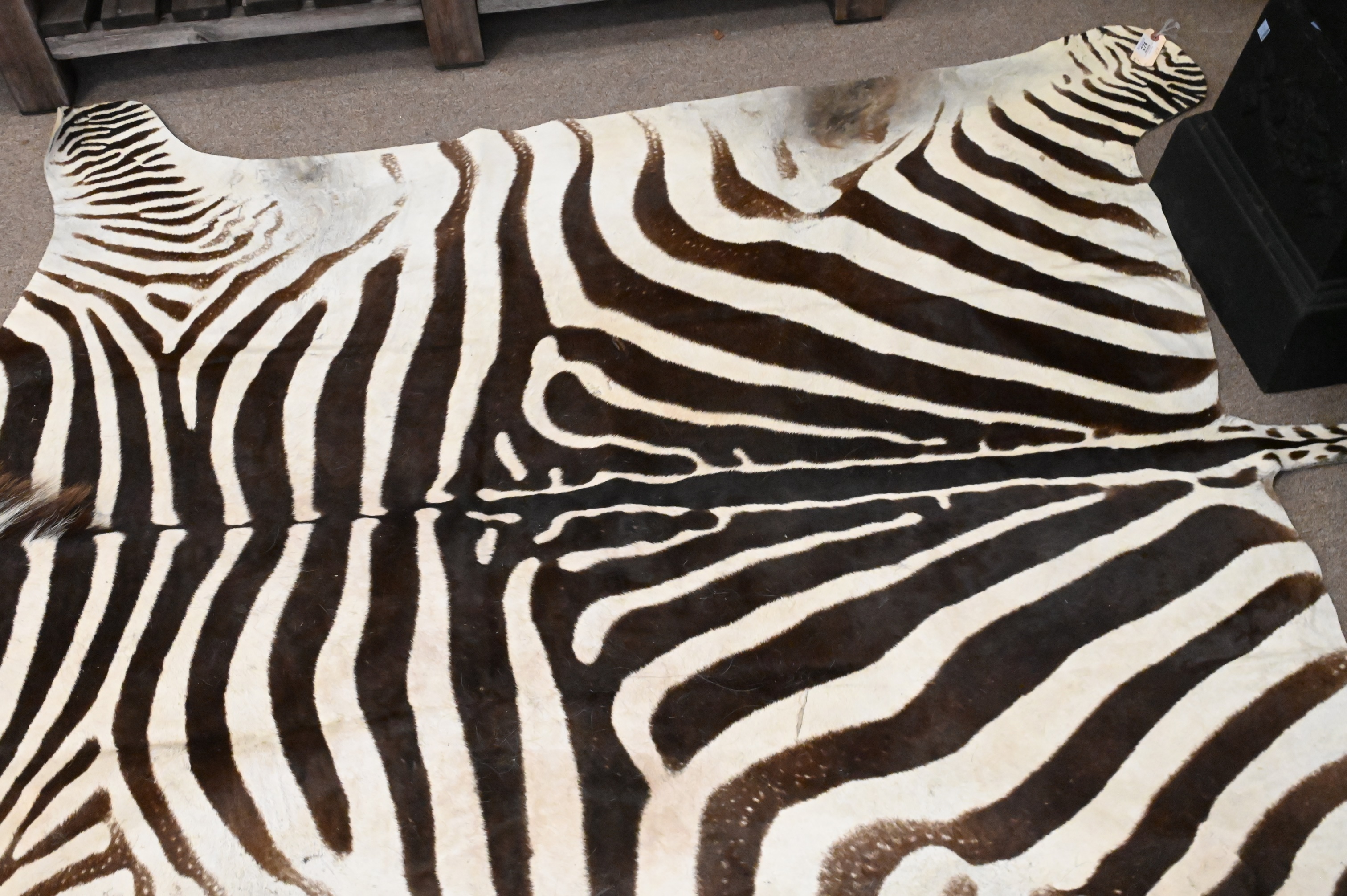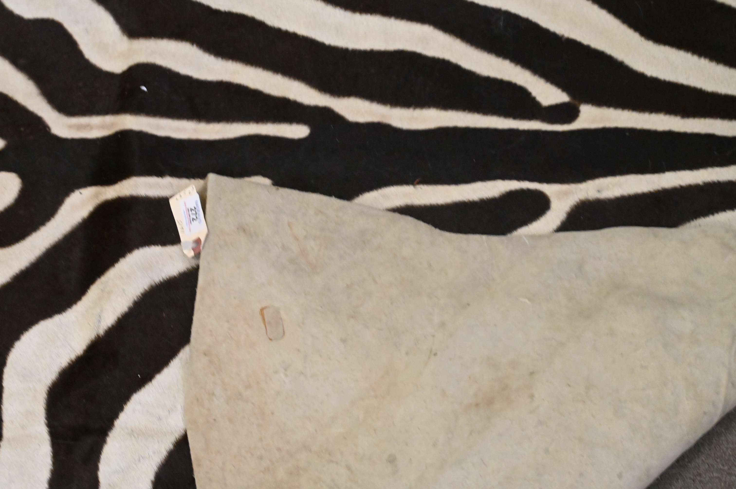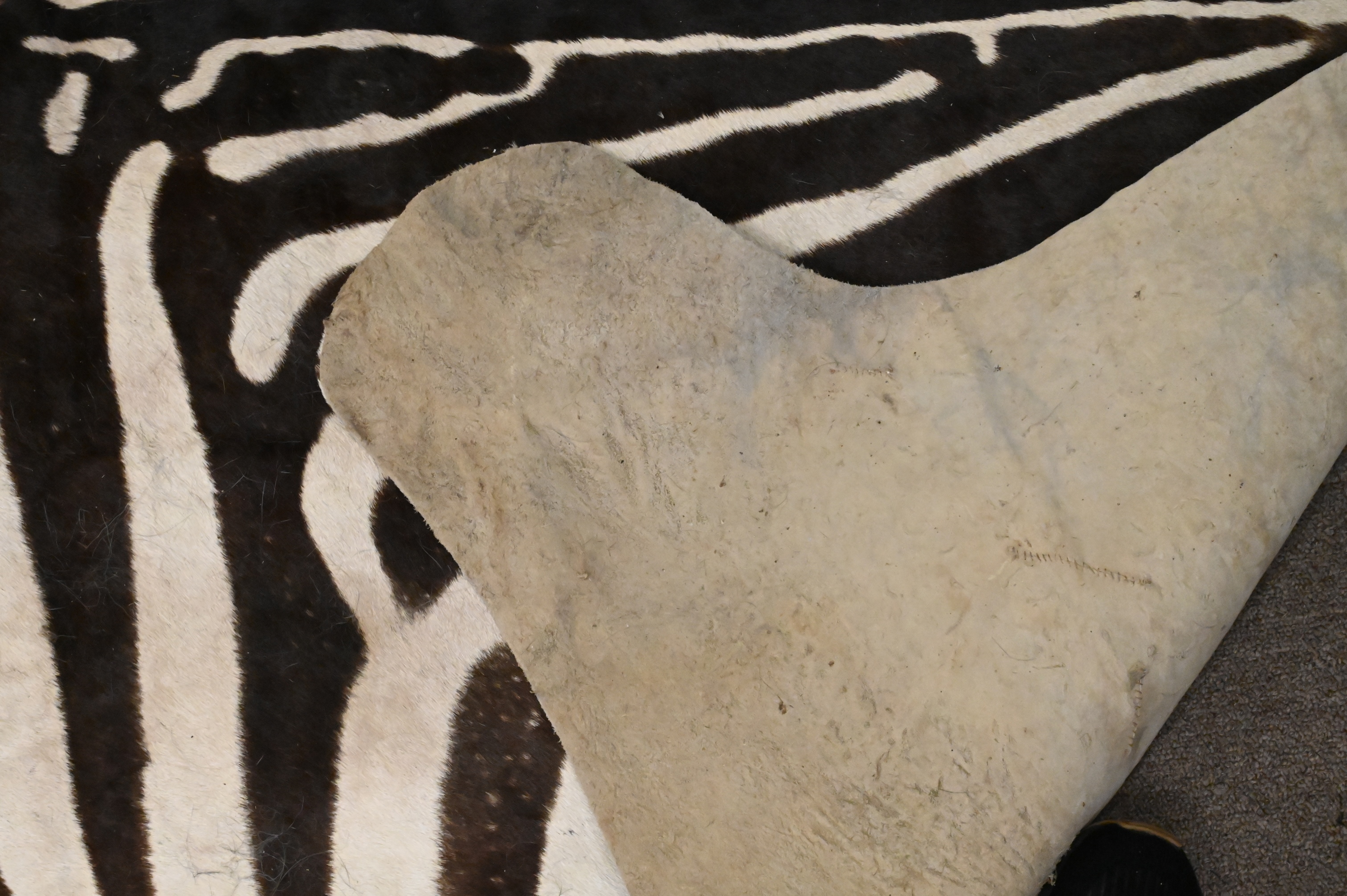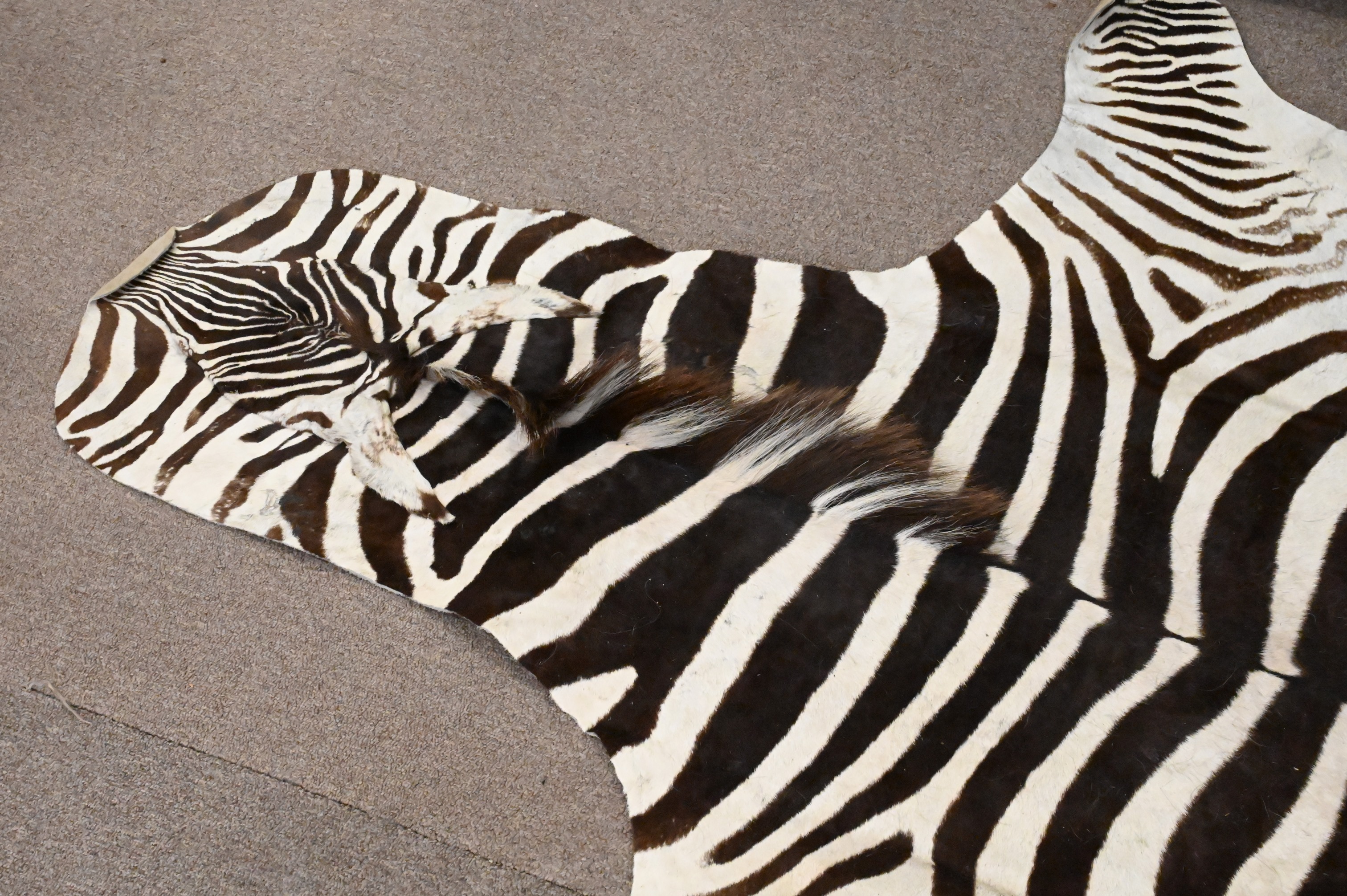 Vintage Zebra Skin Taxidermy Area Rug, 5′ 8″ x 9′ 9″, Provenance: A Private Connecticut Shoreline Collection